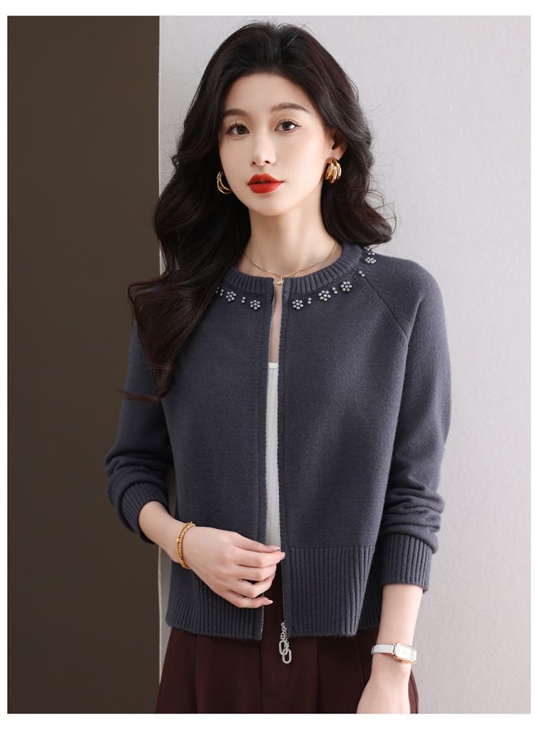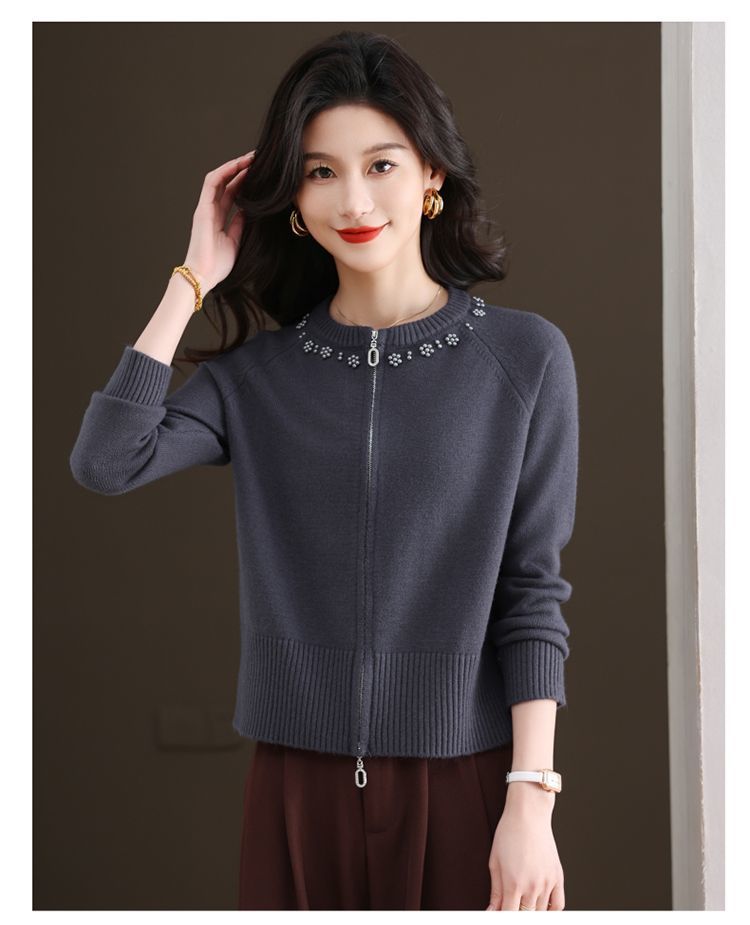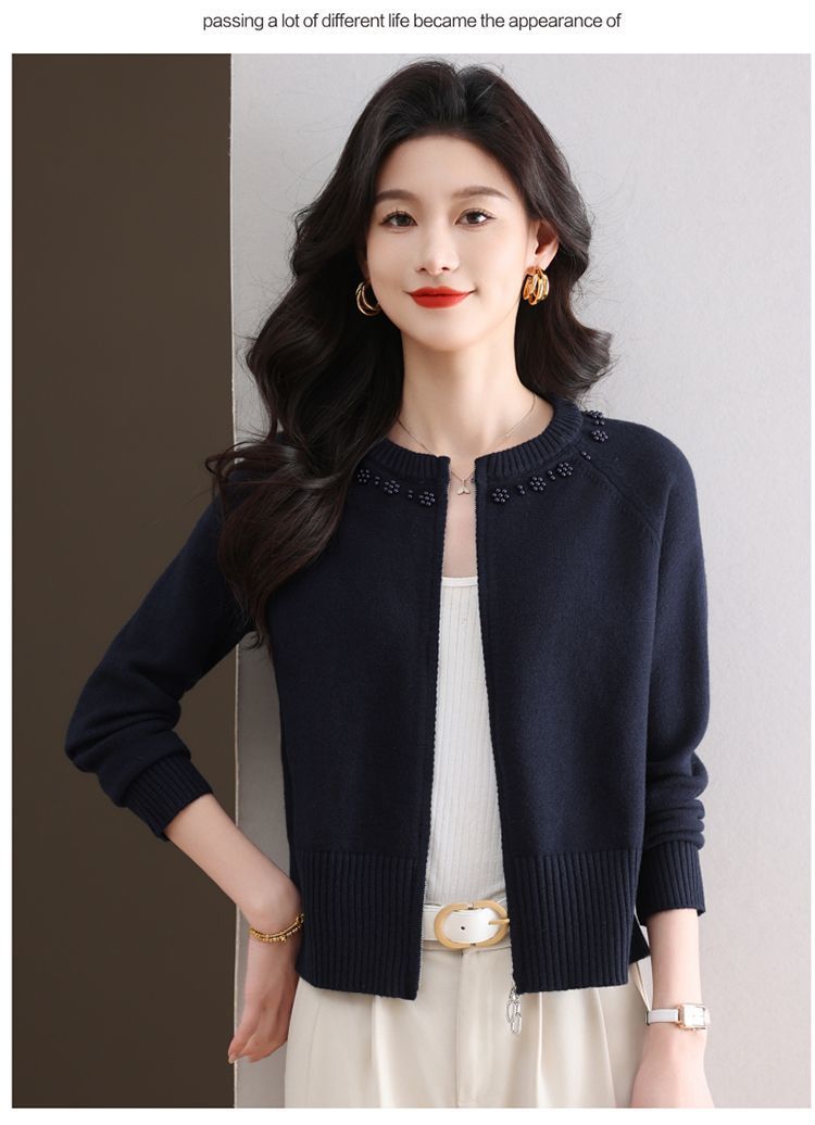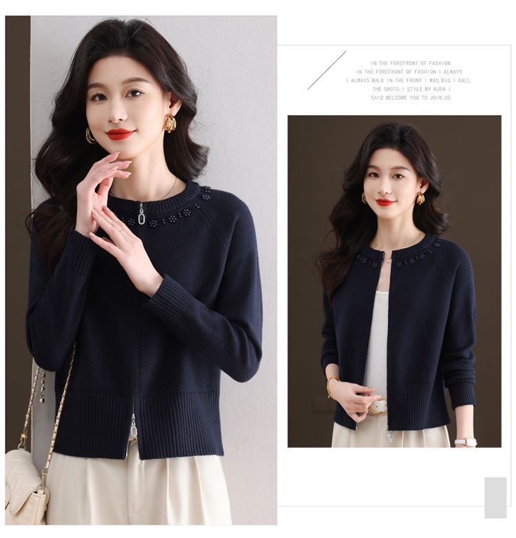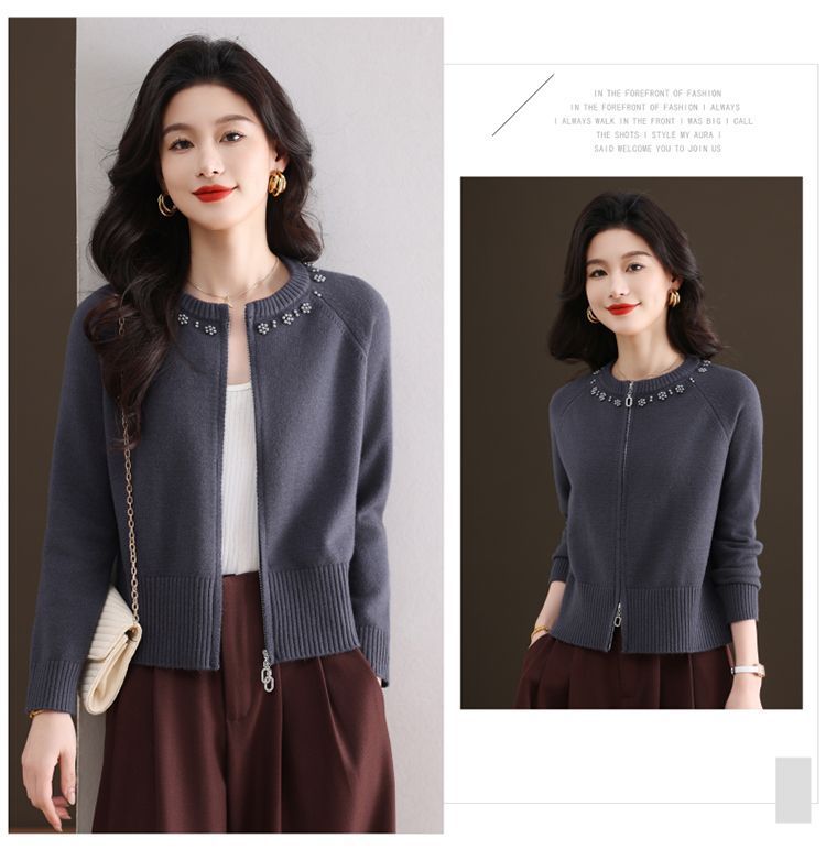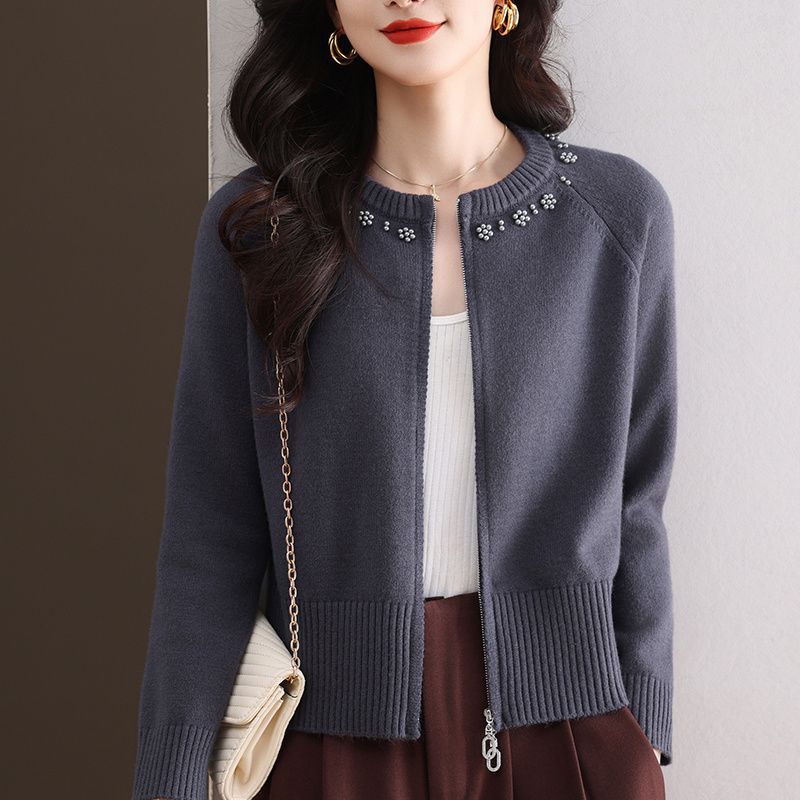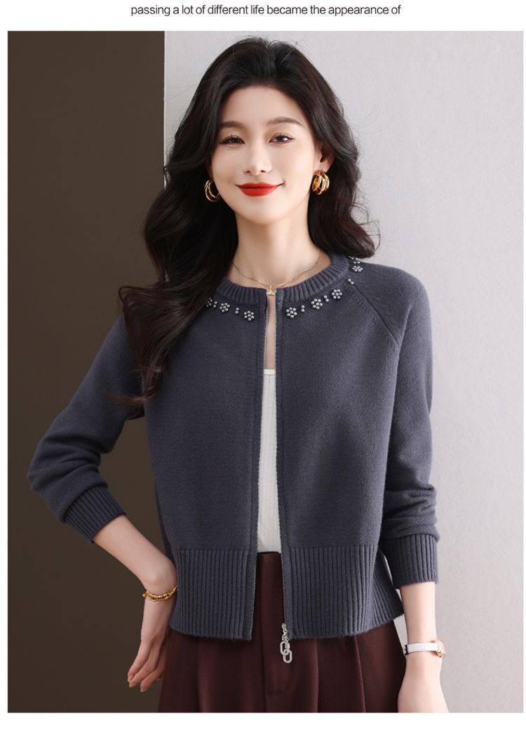 Hong 5933 새로운 최고 여성 지퍼 느슨한 게으른 스웨터 짧은 외부 착용 유행 연령 감소 재킷 니트 카디건