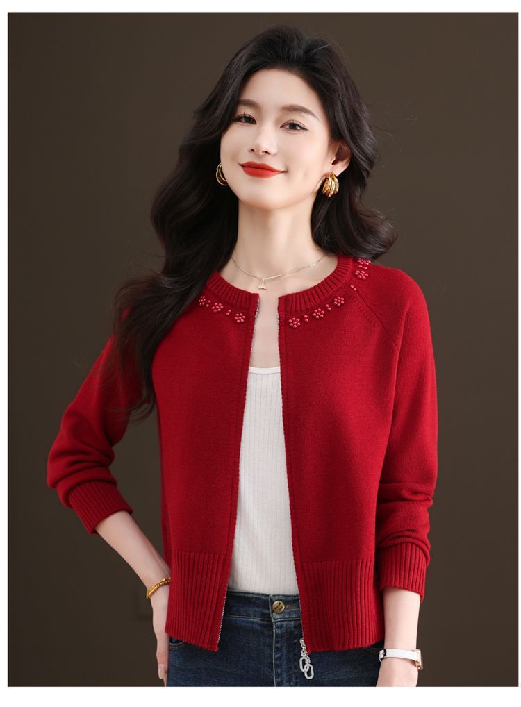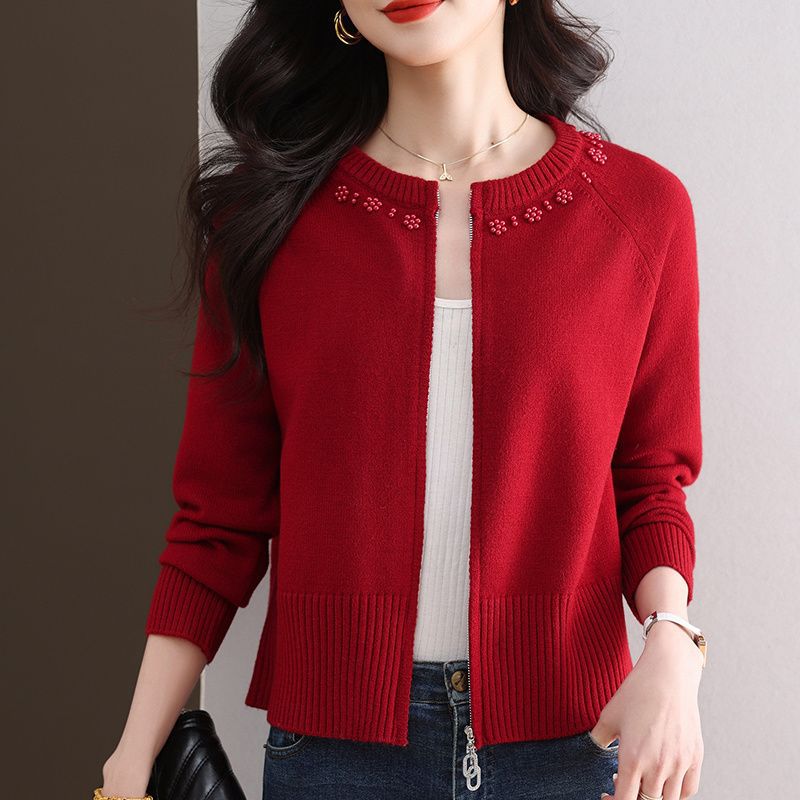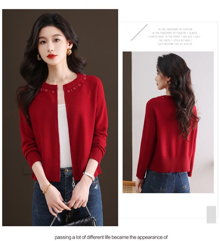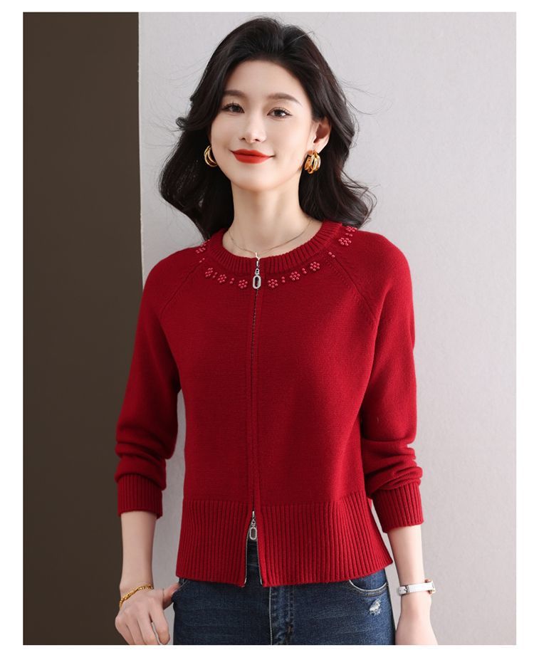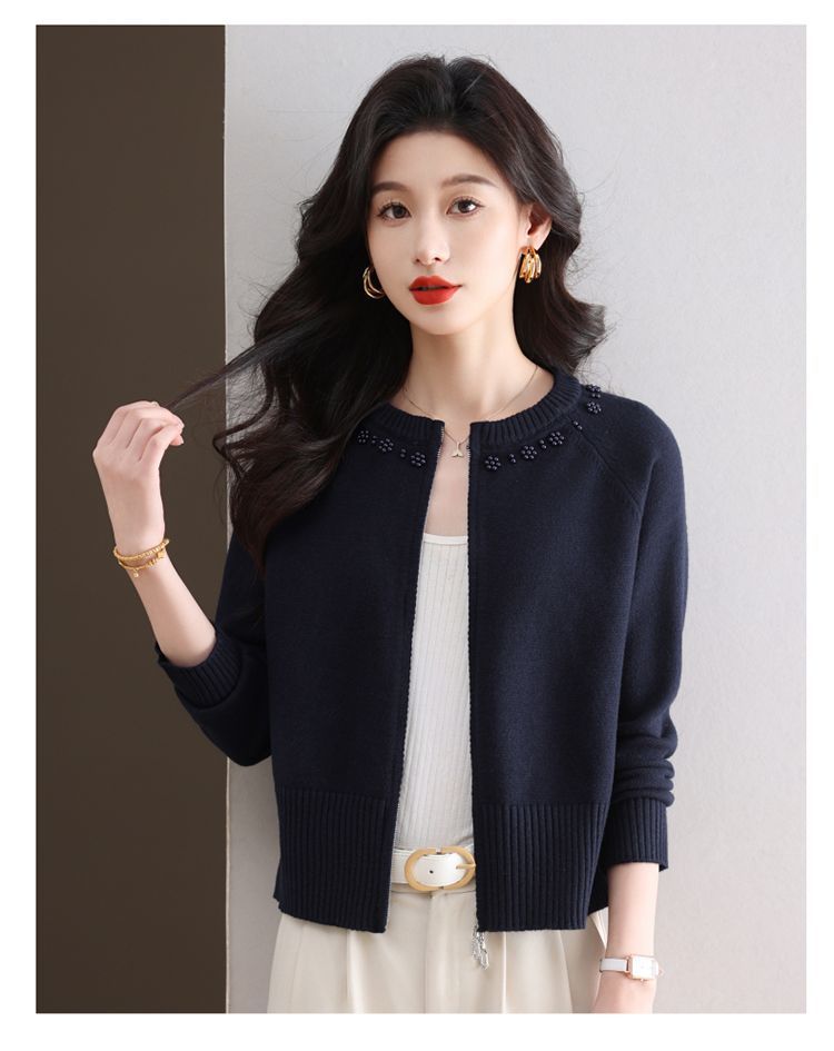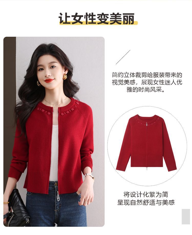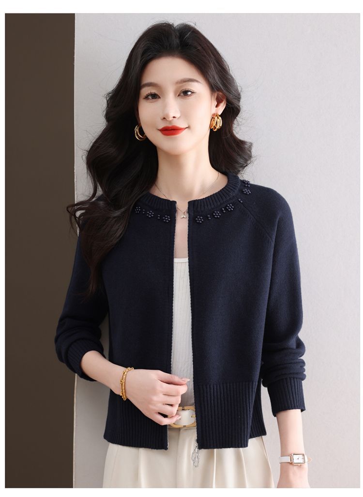 Hong 5933 새로운 최고 여성 지퍼 느슨한 게으른 스웨터 짧은 외부 착용 유행 연령 감소 재킷 니트 카디건