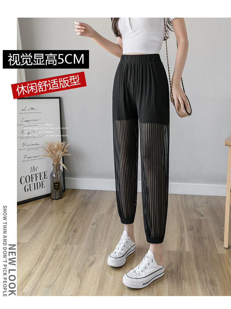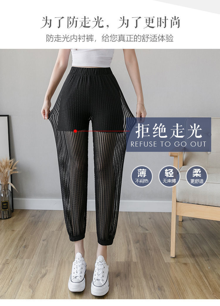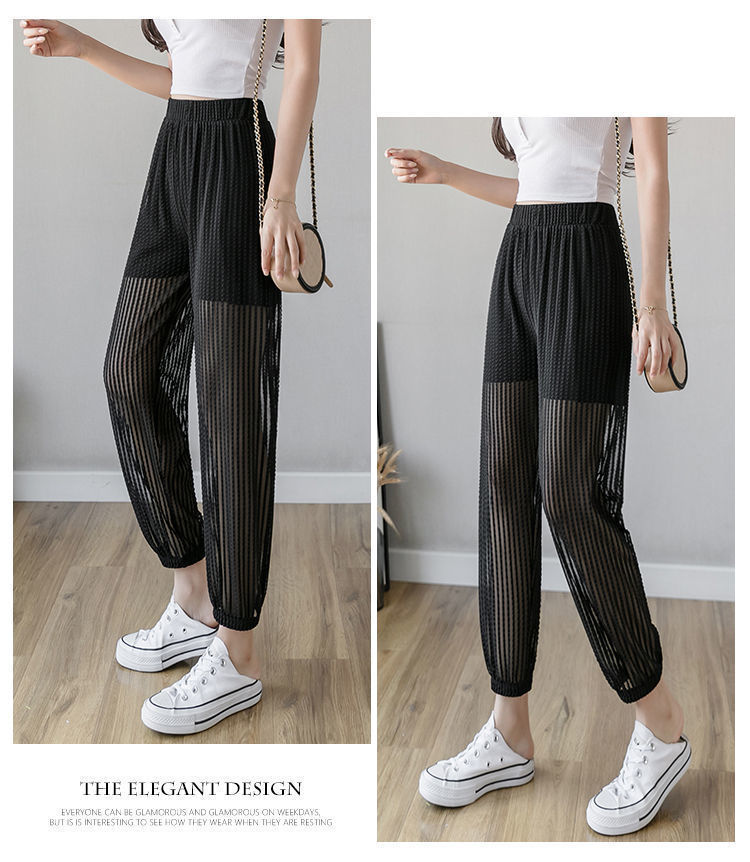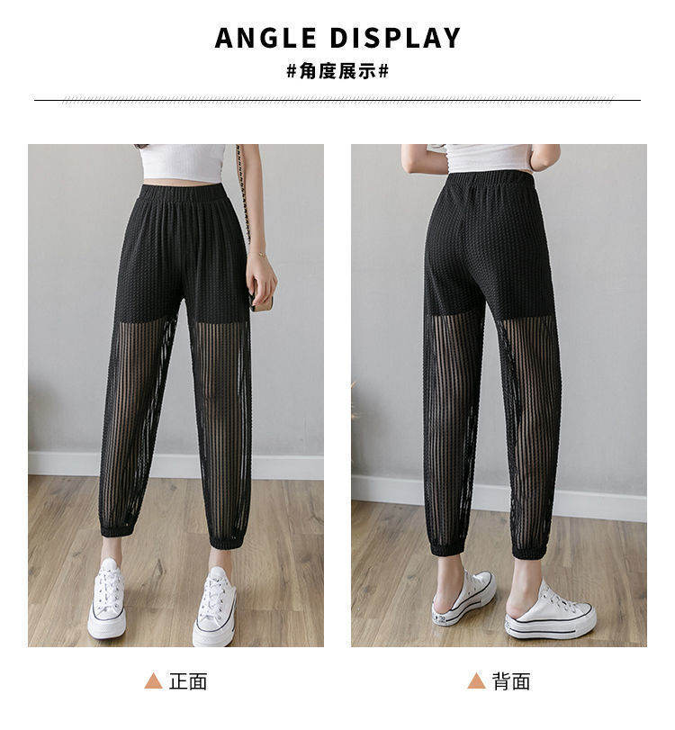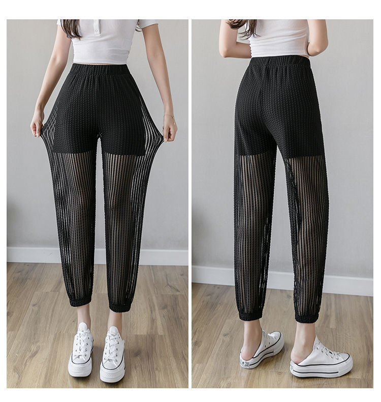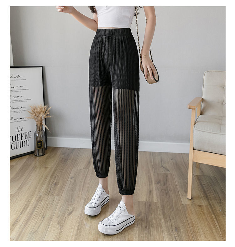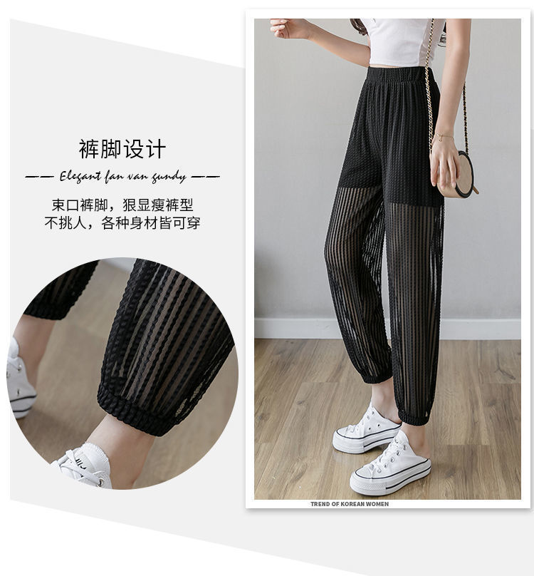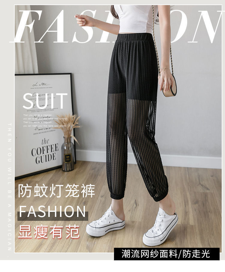 아이스 실크 랜턴 바지 여성용 루즈 쉬폰 2025 여름 안티 모기 바지 얇은 메쉬 자른 할렌 바지스토어 가기