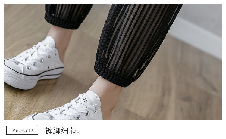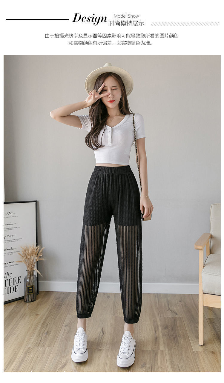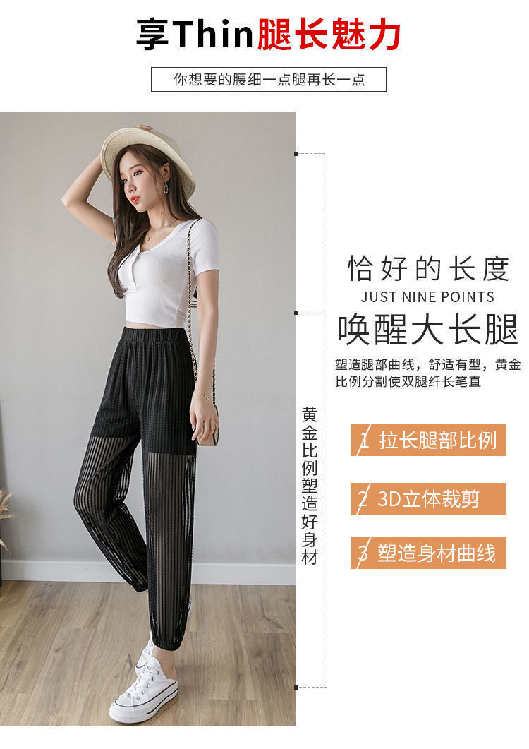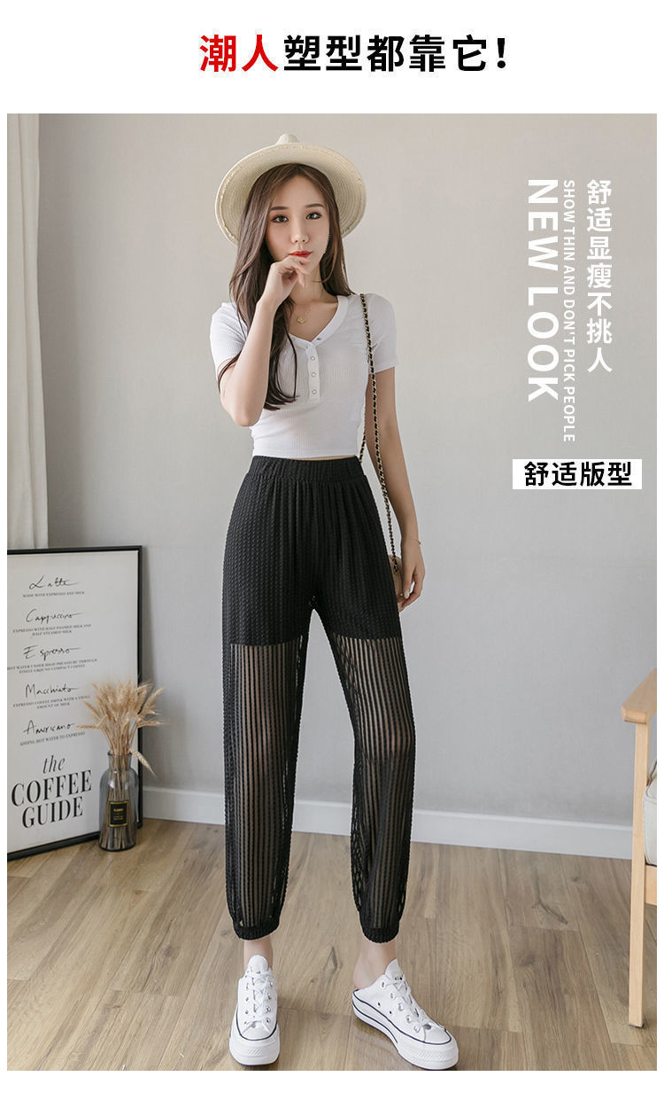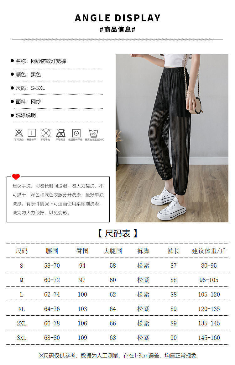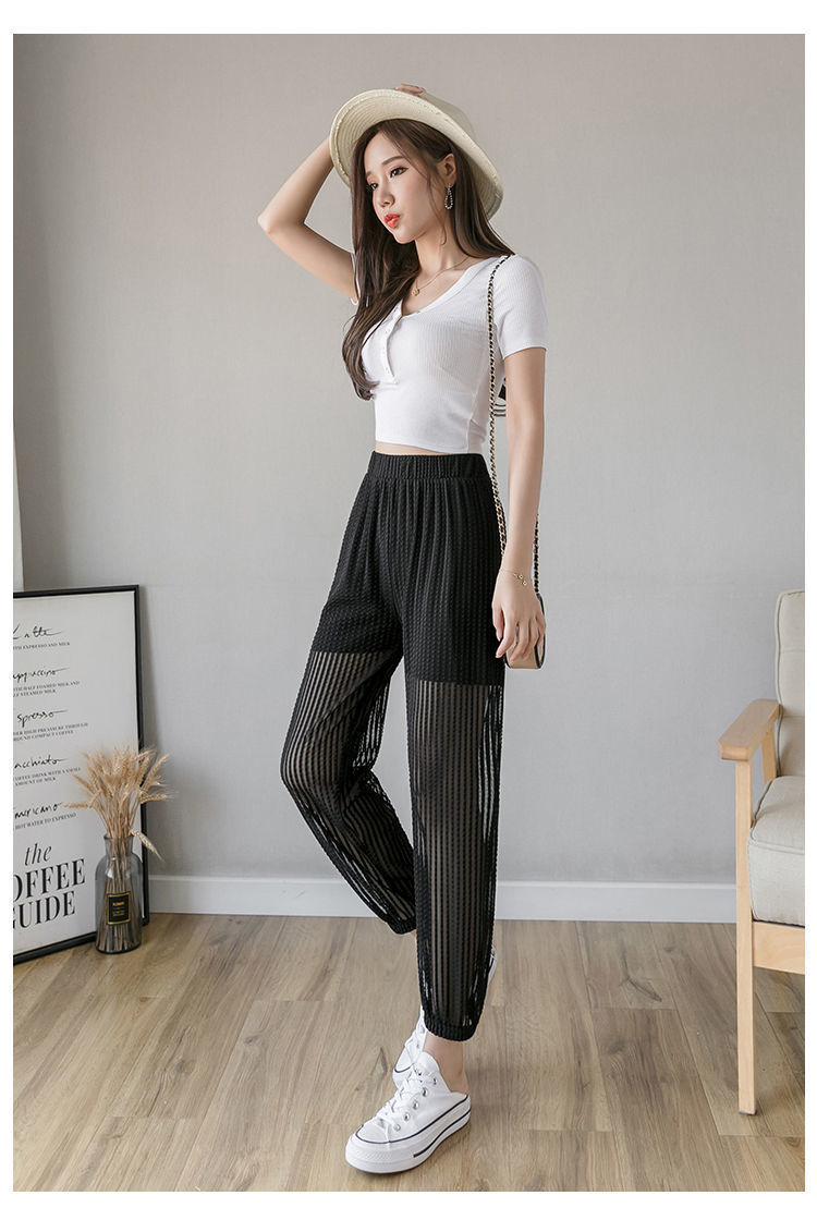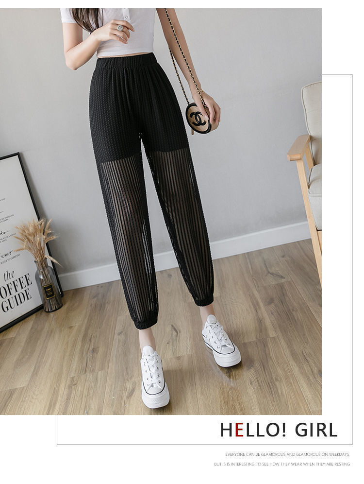 아이스 실크 랜턴 바지 여성용 루즈 쉬폰 2025 여름 안티 모기 바지 얇은 메쉬 자른 할렌 바지스토어 가기