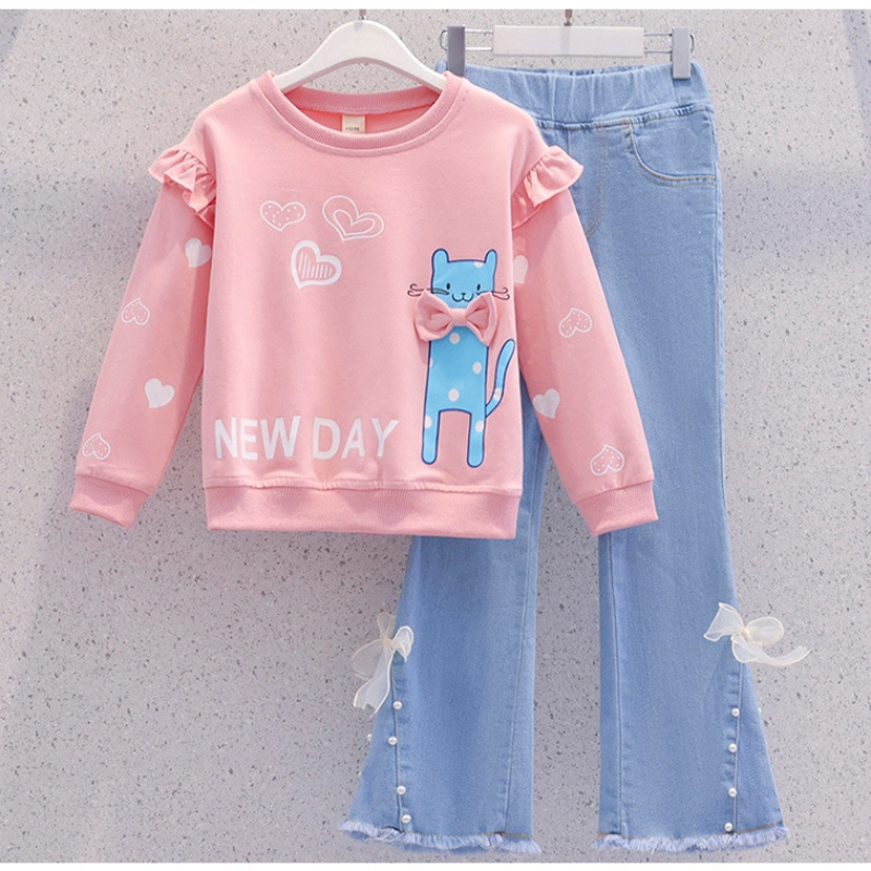 [땀] 소녀들의 봄 · 가을 땀 청바지 투피스 세트 2025 뉴
