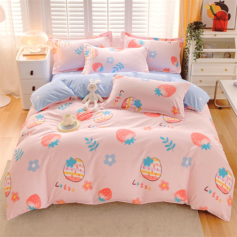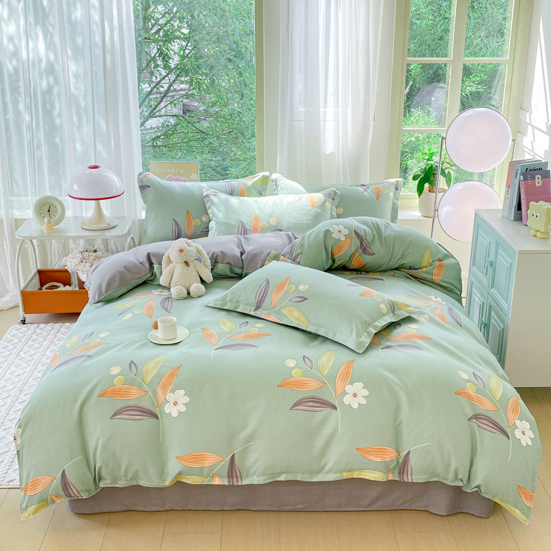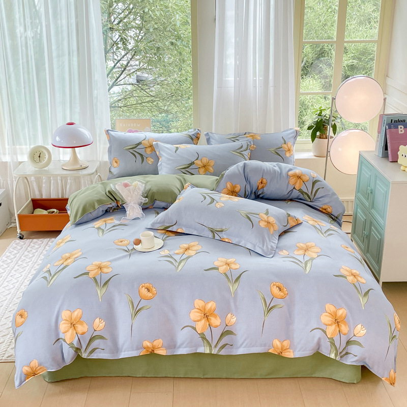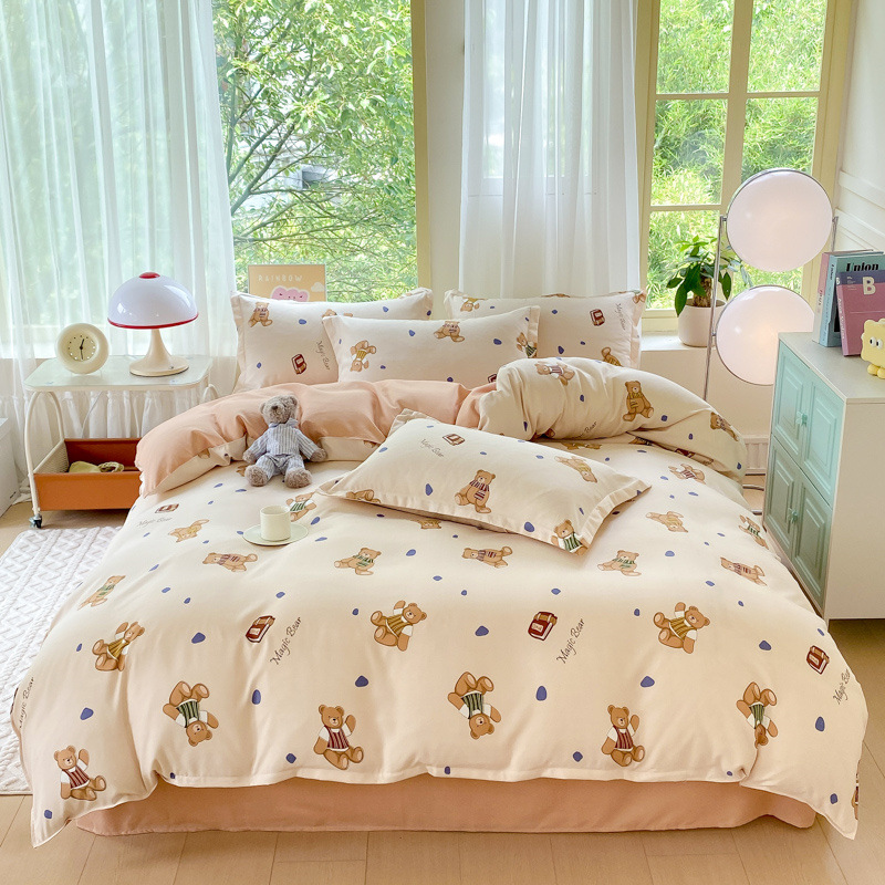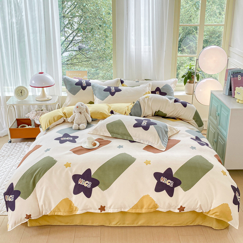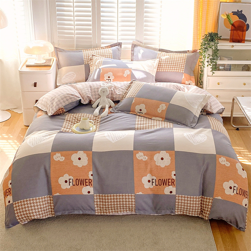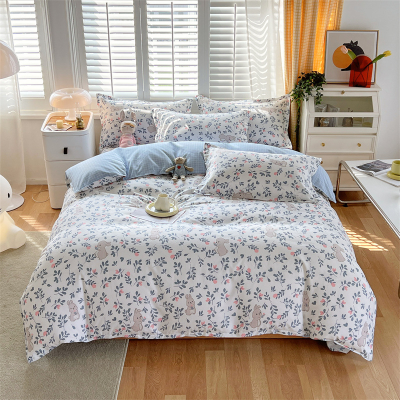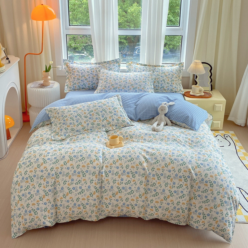 정품 작은 신선한 면 4 종 세트 간단한 스타일 학생 기숙사 3 종 세트 가정용 두꺼운 스크럽 침대 시트 퀼트 커버스토어 가기