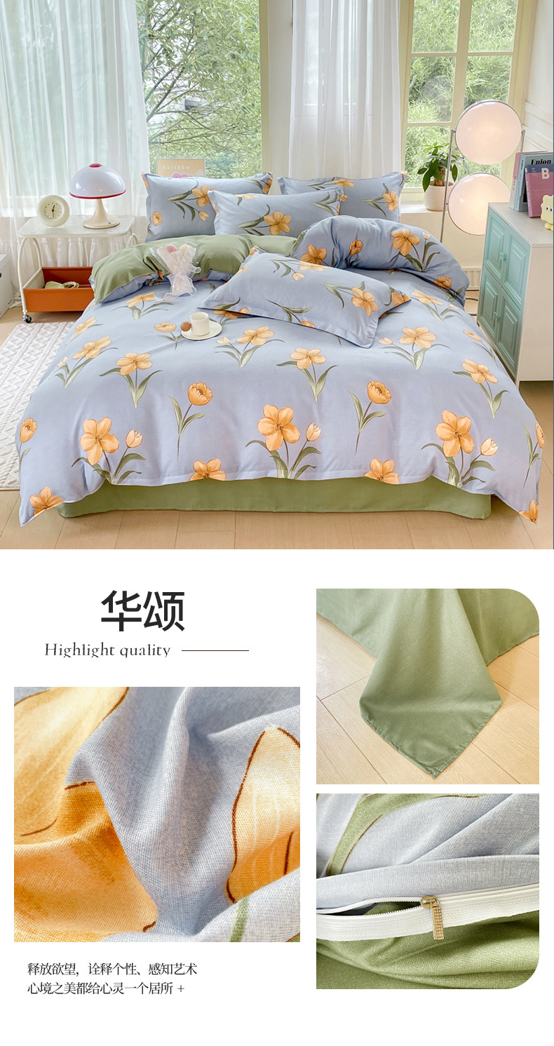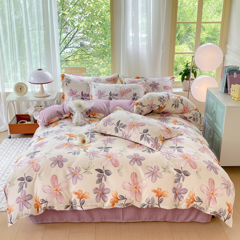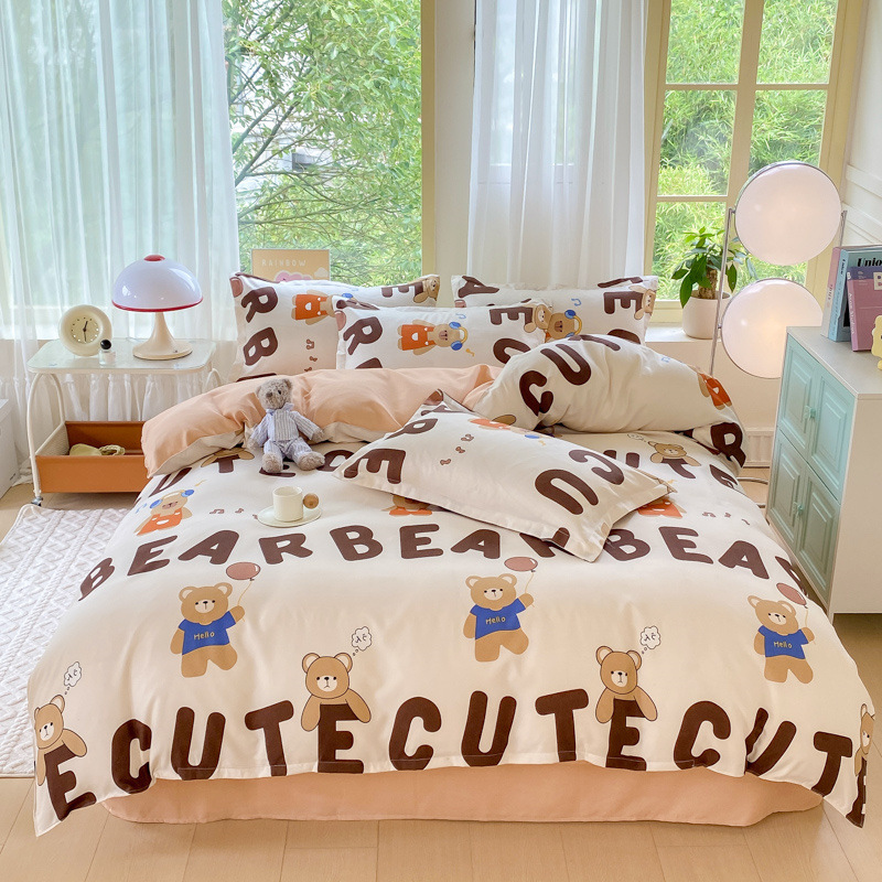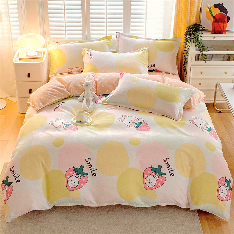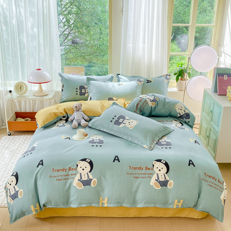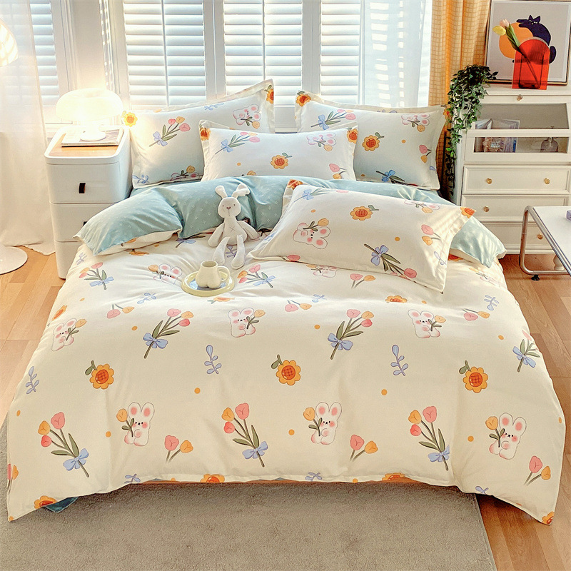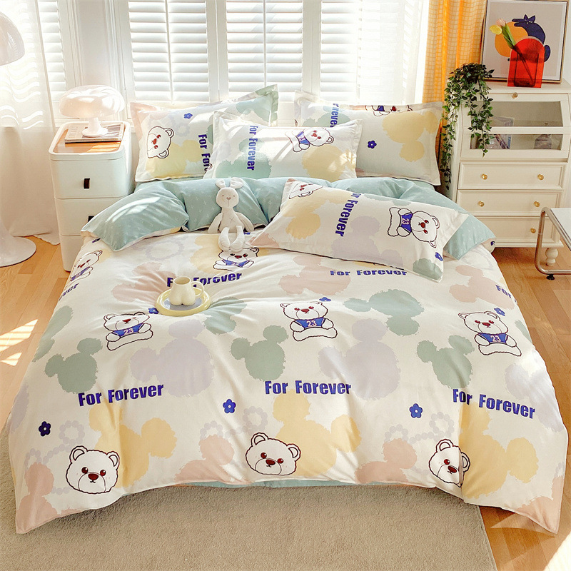 정품 작은 신선한 면 4 종 세트 간단한 스타일 학생 기숙사 3 종 세트 가정용 두꺼운 스크럽 침대 시트 퀼트 커버스토어 가기