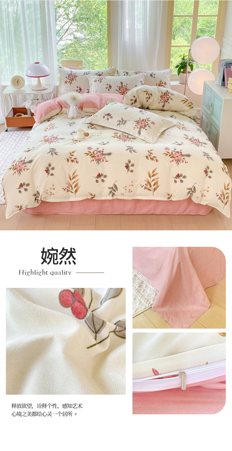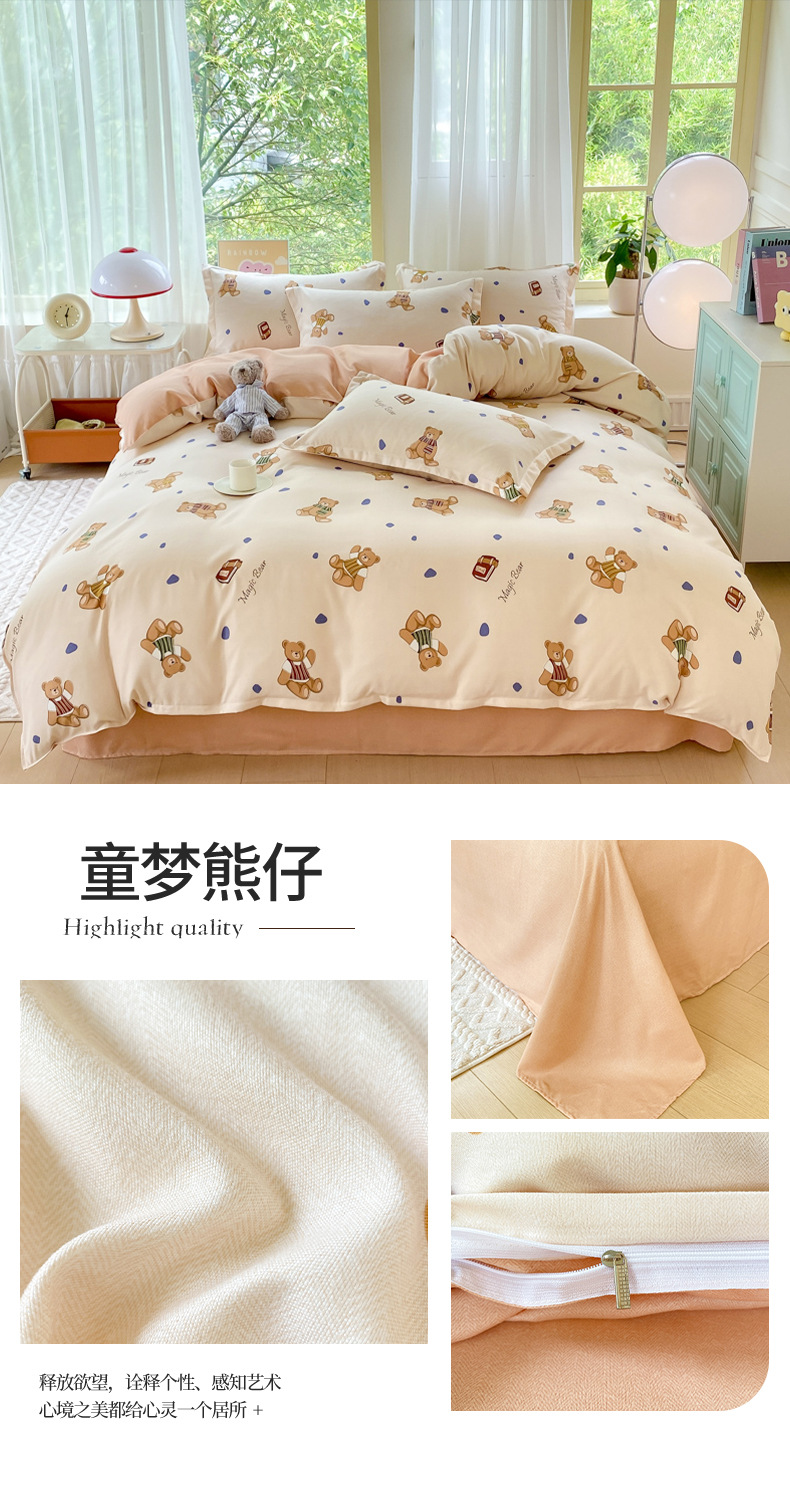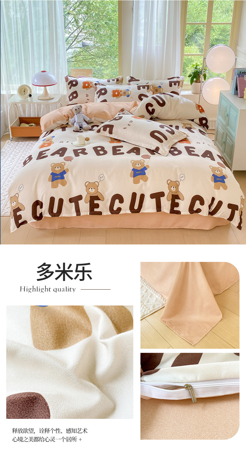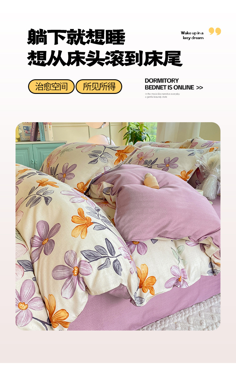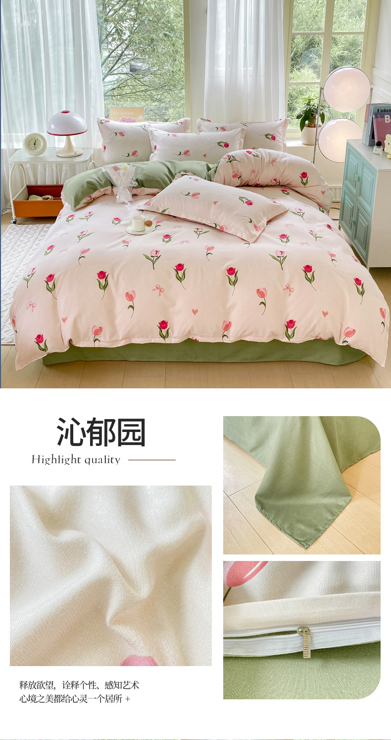 정품 작은 신선한 면 4 종 세트 간단한 스타일 학생 기숙사 3 종 세트 가정용 두꺼운 스크럽 침대 시트 퀼트 커버스토어 가기