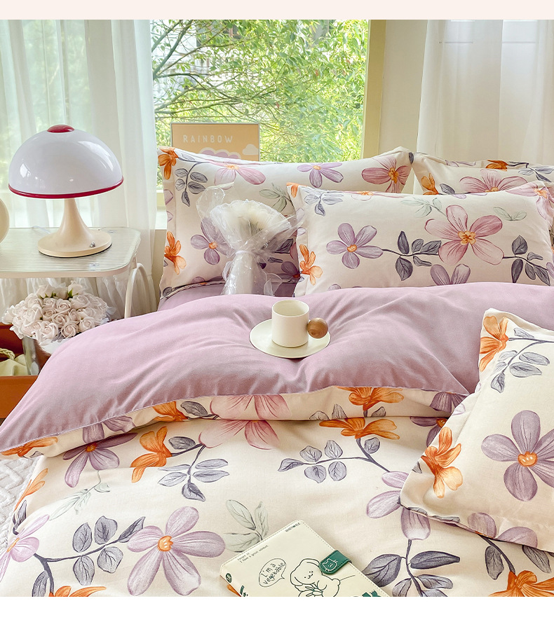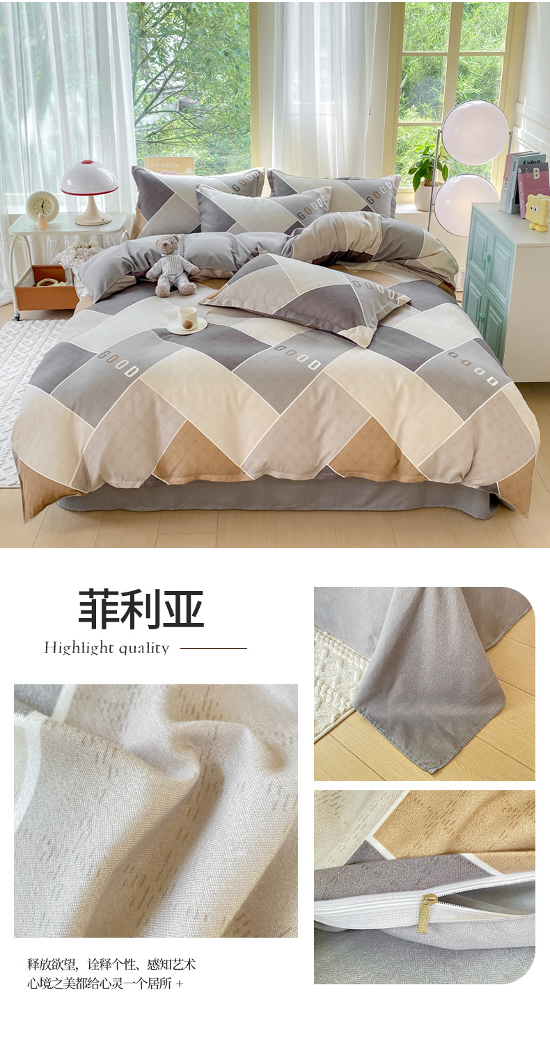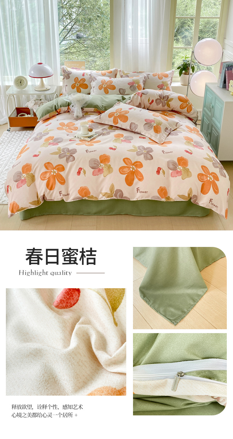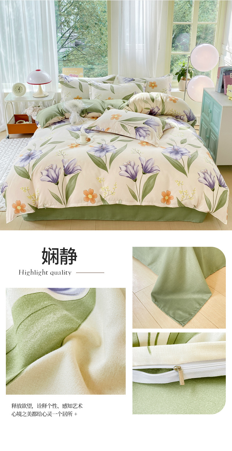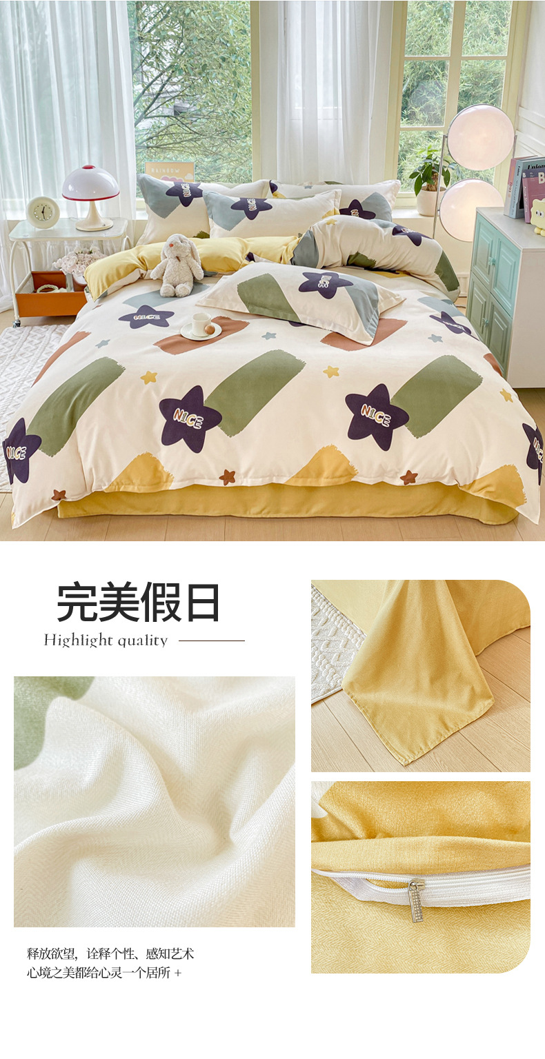 정품 작은 신선한 면 4 종 세트 간단한 스타일 학생 기숙사 3 종 세트 가정용 두꺼운 스크럽 침대 시트 퀼트 커버스토어 가기