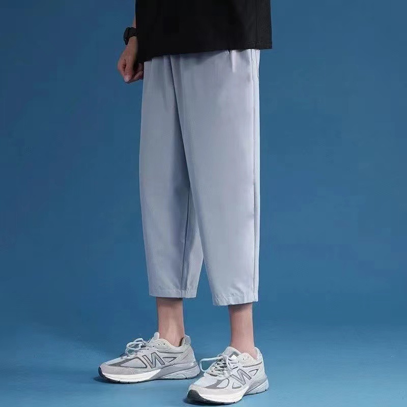 느슨한 남자 Ins 청소년 패션 아이스 실크 캐주얼 바지 트렌드 새로운 7 점 바지 유행 캐주얼 바지 올 매치 여름스토어 가기