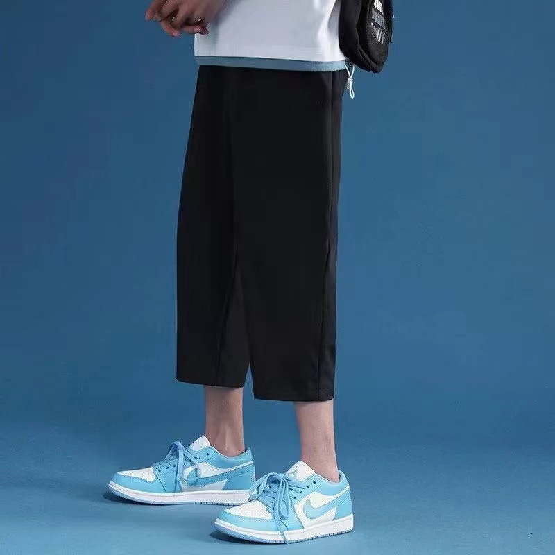 느슨한 남자 Ins 청소년 패션 아이스 실크 캐주얼 바지 트렌드 새로운 7 점 바지 유행 캐주얼 바지 올 매치 여름