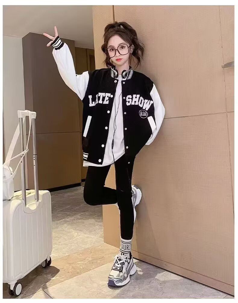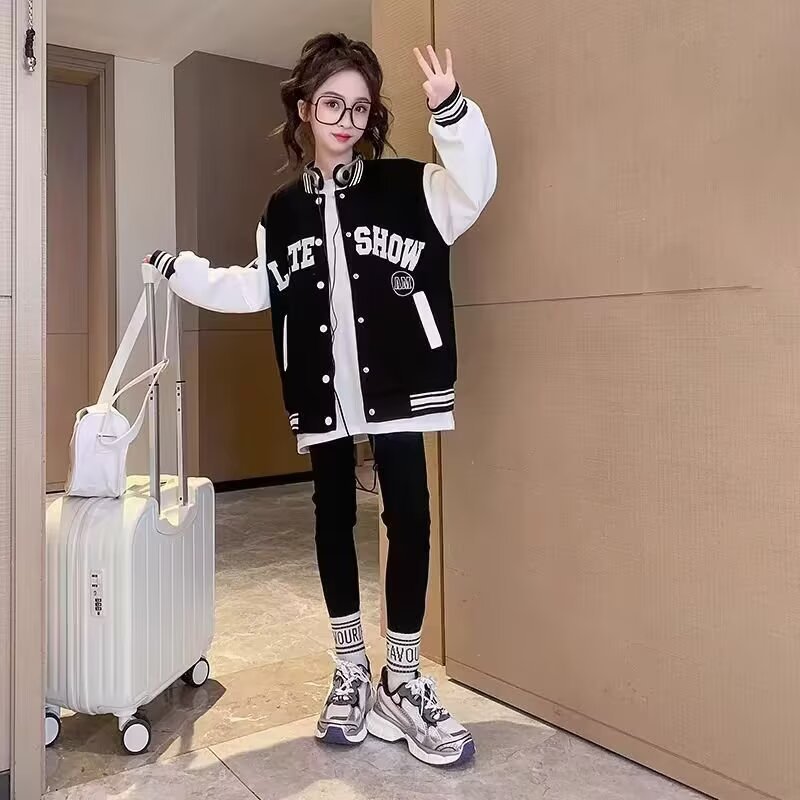 여자 야구 세트 2025 세트 가을 신식 어린이 세트 봄과 가을 소녀 큰 어린이 자켓 루즈 재킷스토어 가기