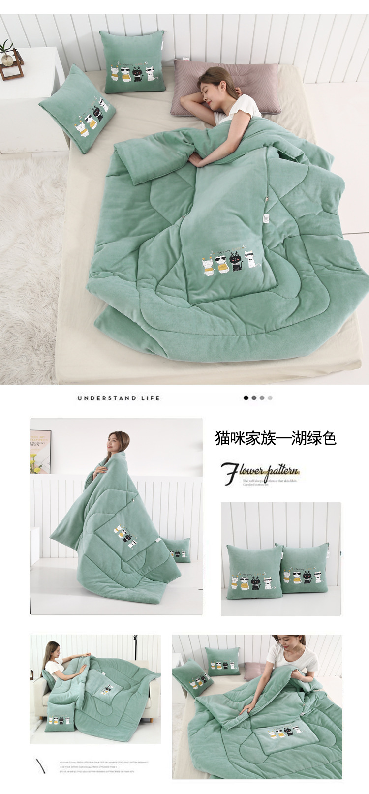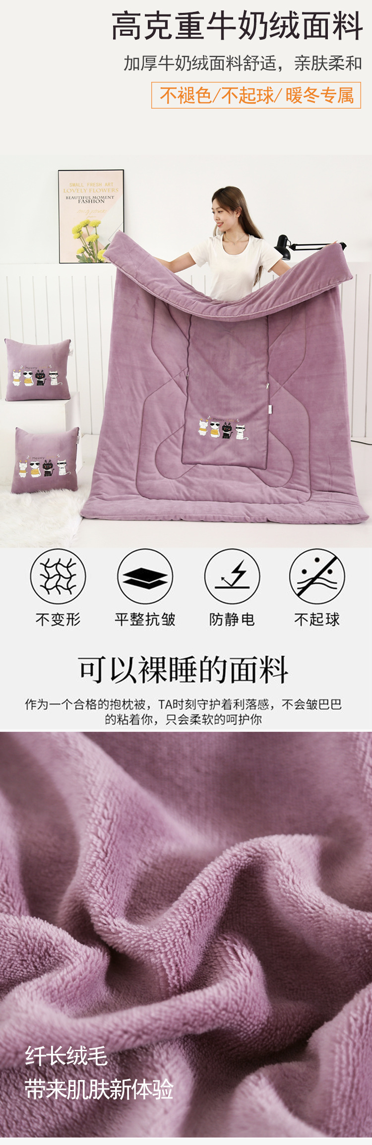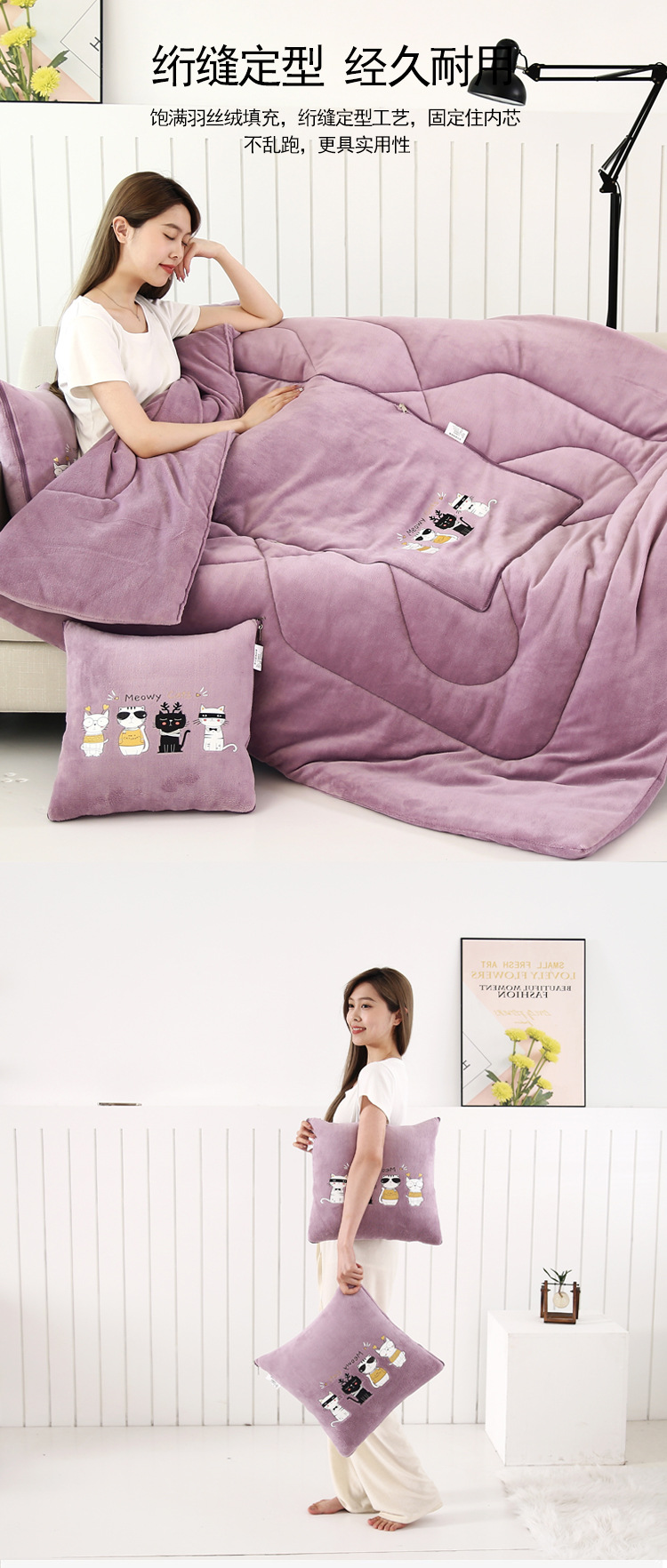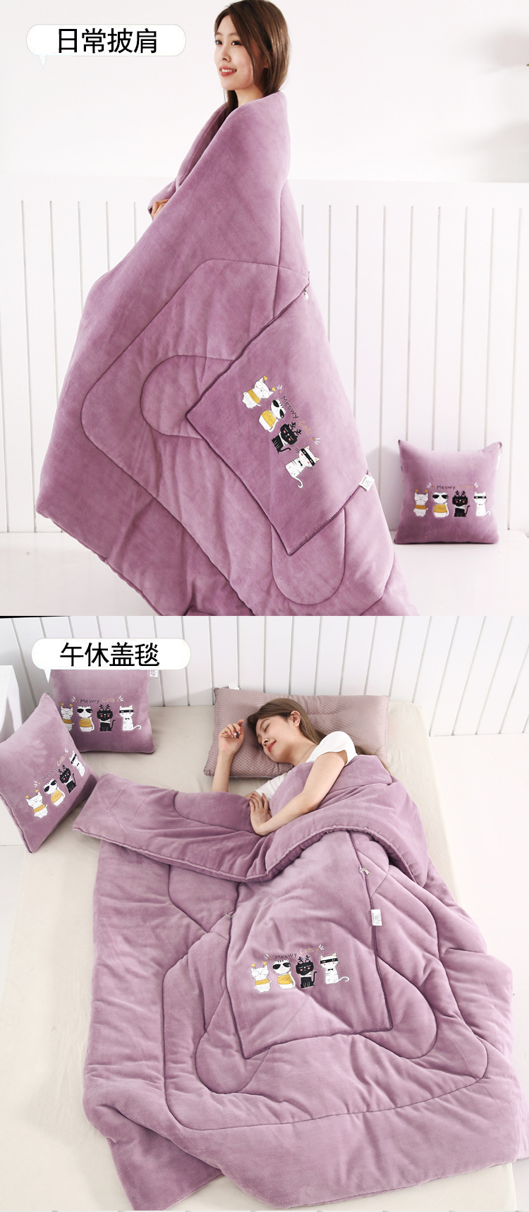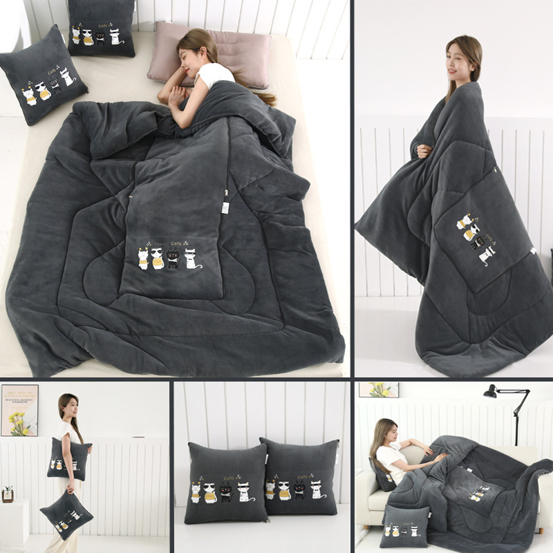 두꺼운 베개 이불 이중 목적 우유 벨벳 자동차 소파 쿠션 베개 퀼트 사무실 접는 에어컨 퀼트 낮잠스토어 가기
