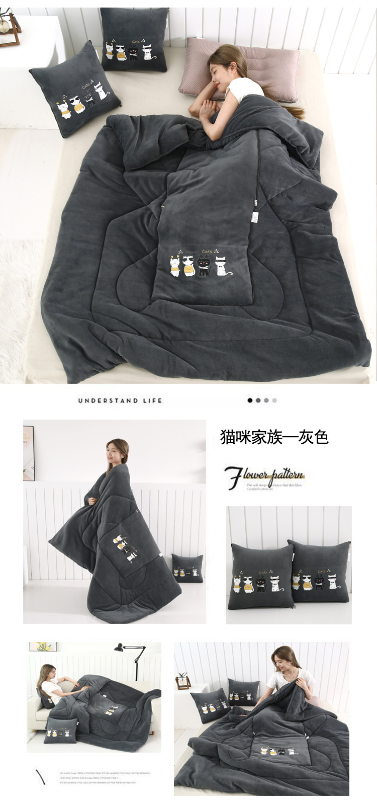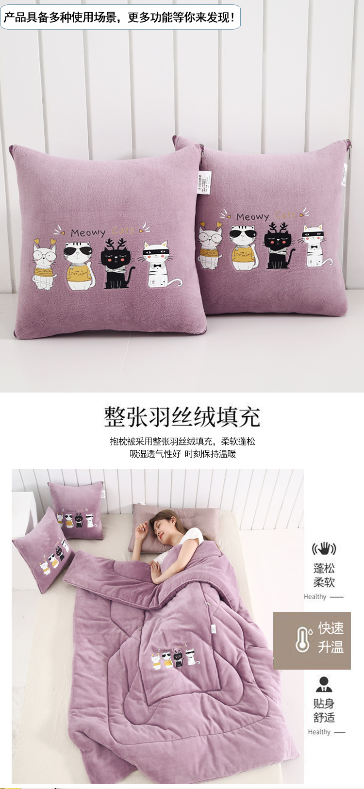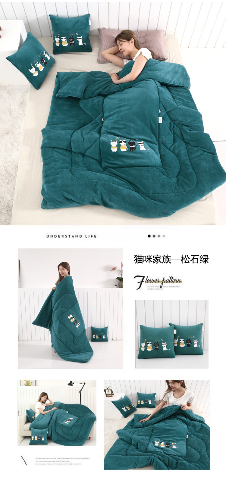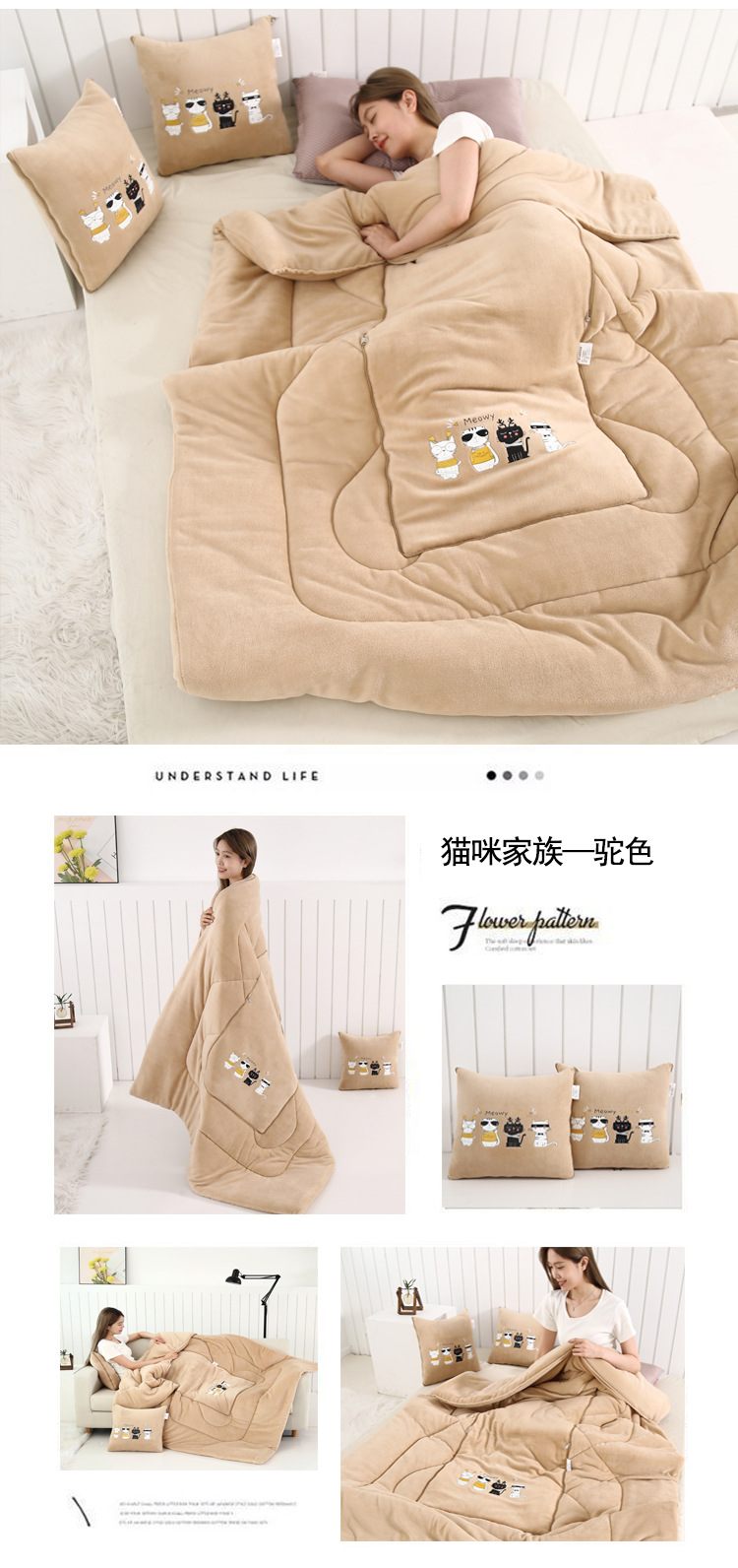 두꺼운 베개 이불 이중 목적 우유 벨벳 자동차 소파 쿠션 베개 퀼트 사무실 접는 에어컨 퀼트 낮잠스토어 가기