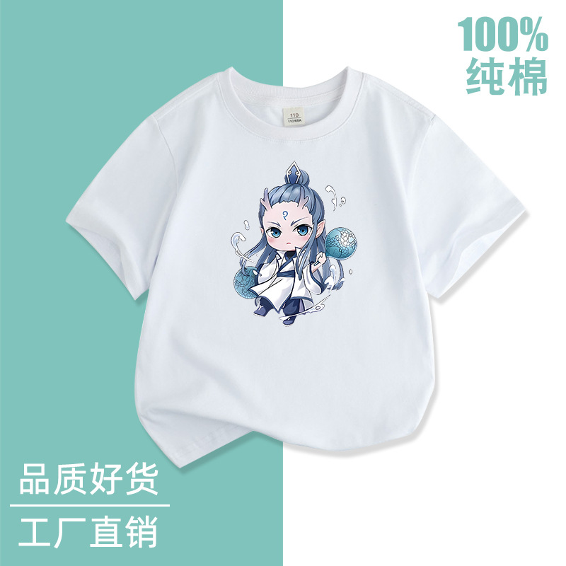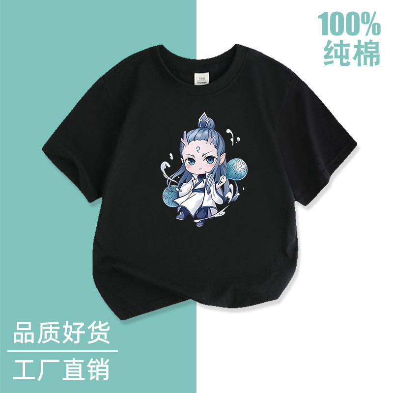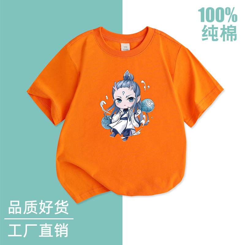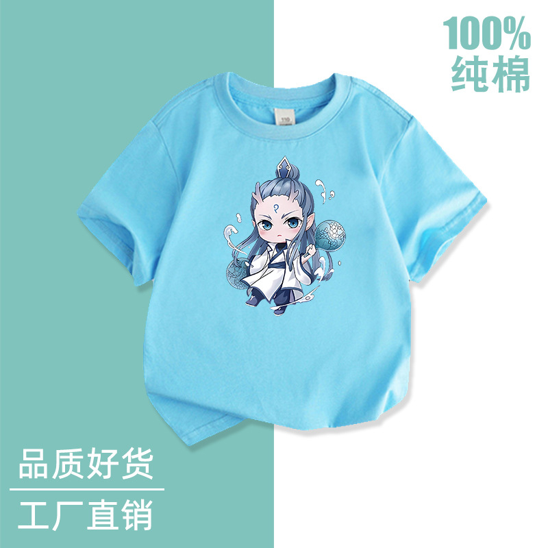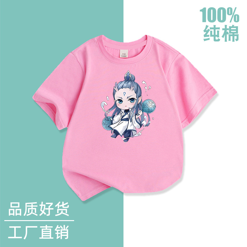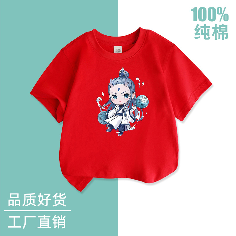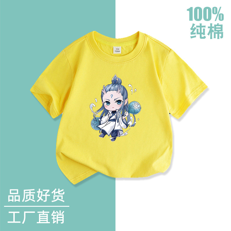 재고 여름 면화 어린이 둥근 목 티셔츠 어린이 단색베이스 코트 소년 소녀 짧은 소매 머리카락 세대