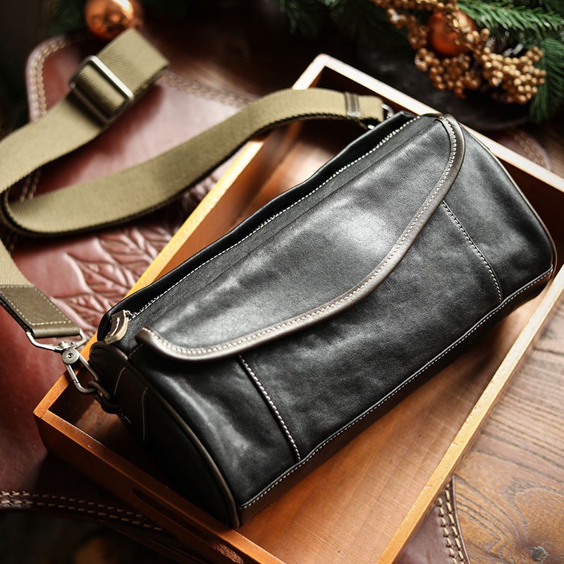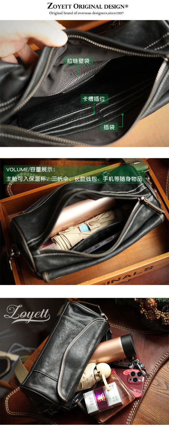 오리지널 정품 가죽 남성용 어깨 크로스 바디 백 남성 디자인 센스 니쉬 야채 태닝 코우 가죽 통근 레저 배낭 베개스토어 가기