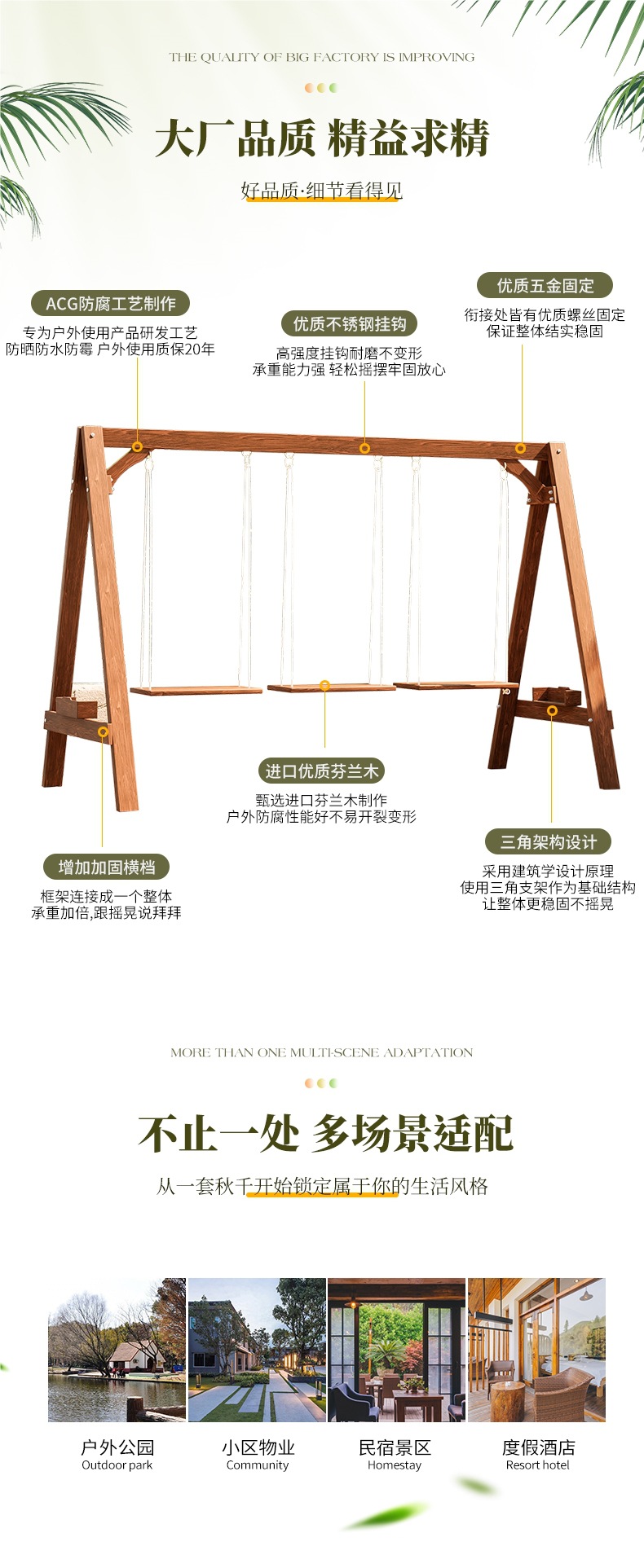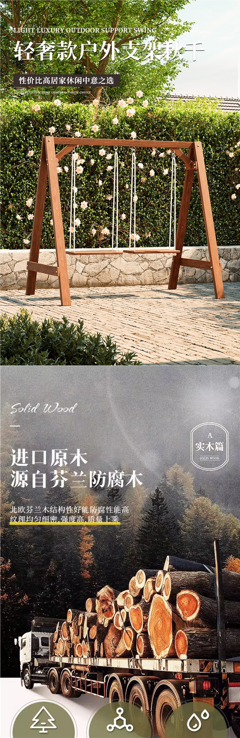 야외 안뜰 어린이 실내 가정 그네 야외 미끄럼 방지 나무 발코니 테라스 성인 흔들 의자 단단한 나무 교수형 의자스토어 가기