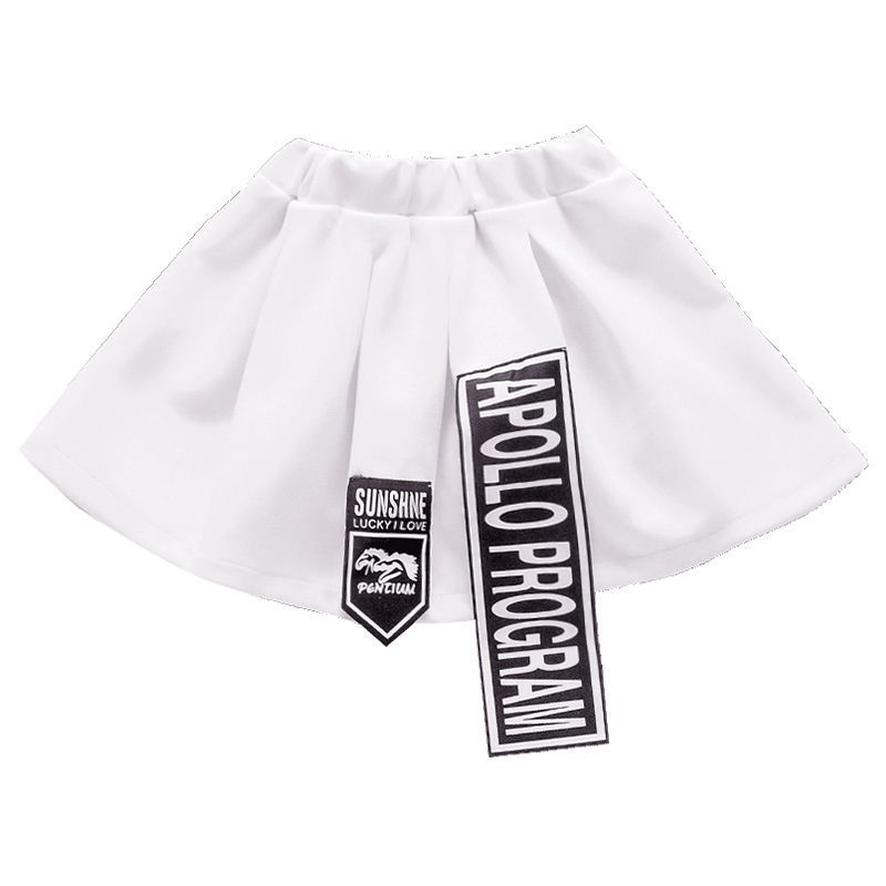 • 여아 로즈 레드 반바지 스웨트셔츠 + 화이트 더블 라벨 스커트