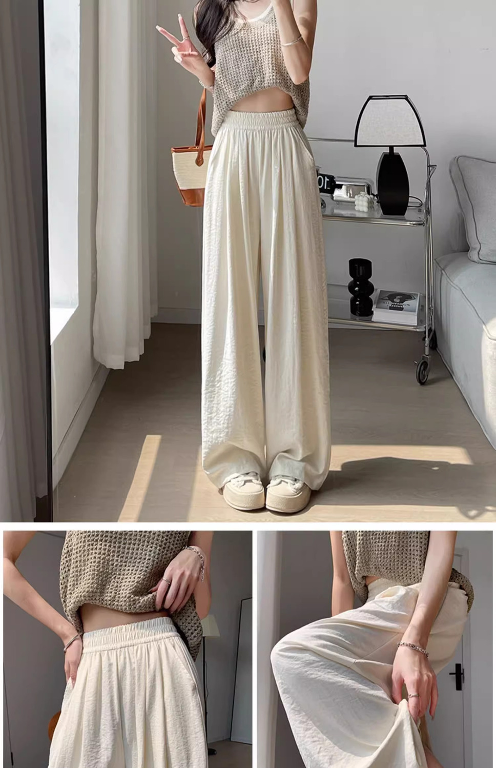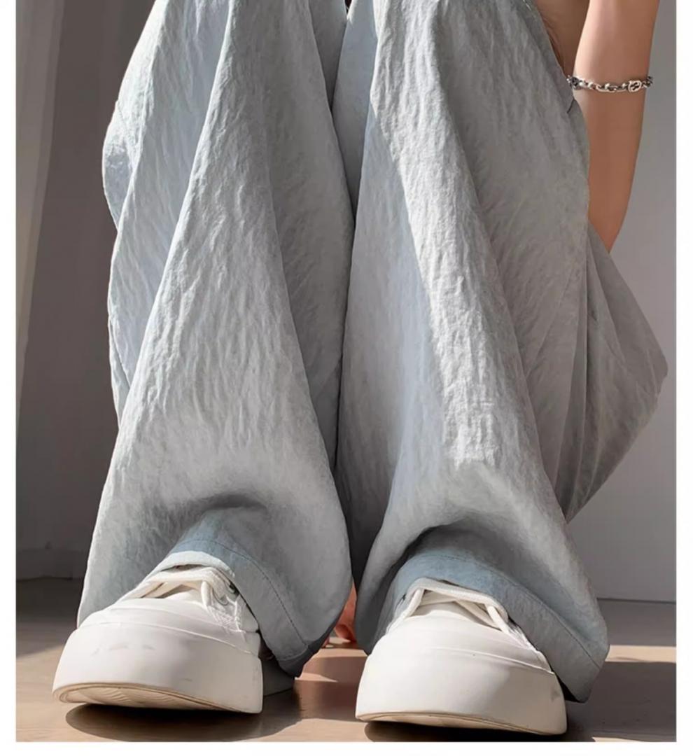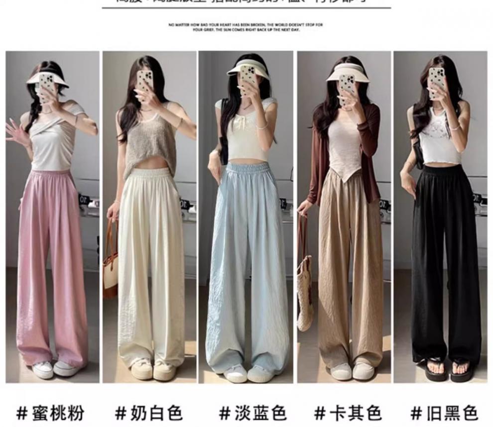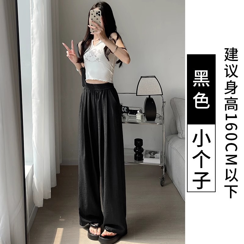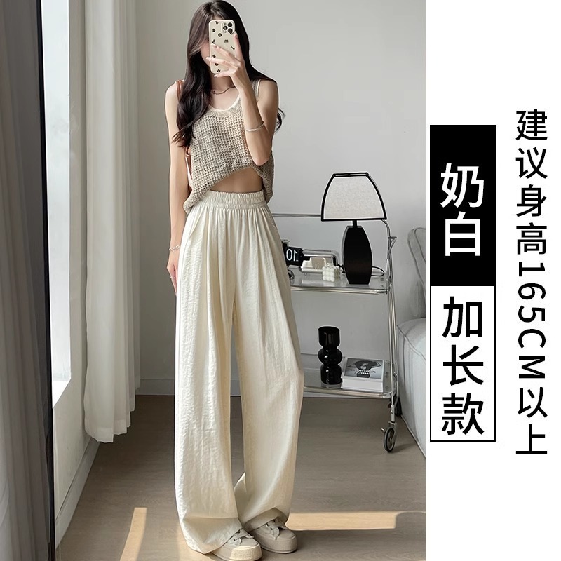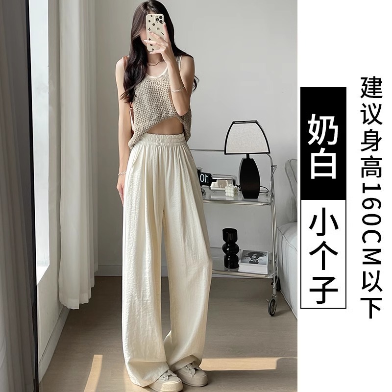 화이트 밀크 푸 야마모토 바지 여성 여름 2025 새로운 높은 허리 아이스 실크 넓은 다리 바지 게으른 Acetic 질감스토어 가기