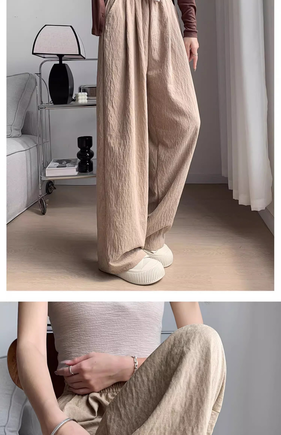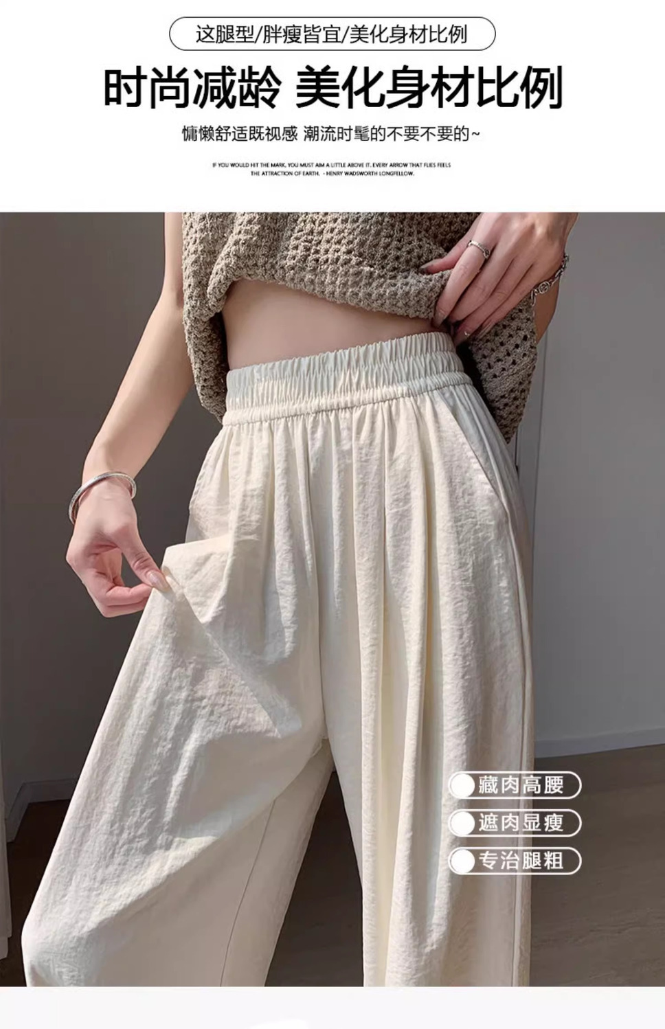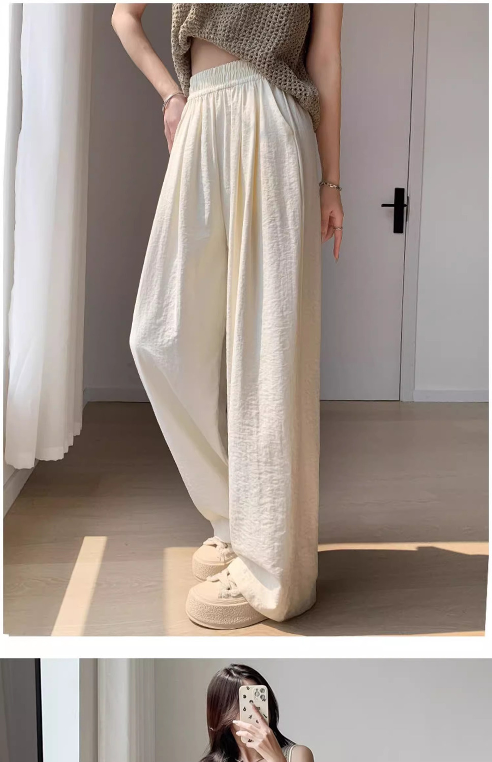화이트 밀크 푸 야마모토 바지 여성 여름 2025 새로운 높은 허리 아이스 실크 넓은 다리 바지 게으른 Acetic 질감스토어 가기