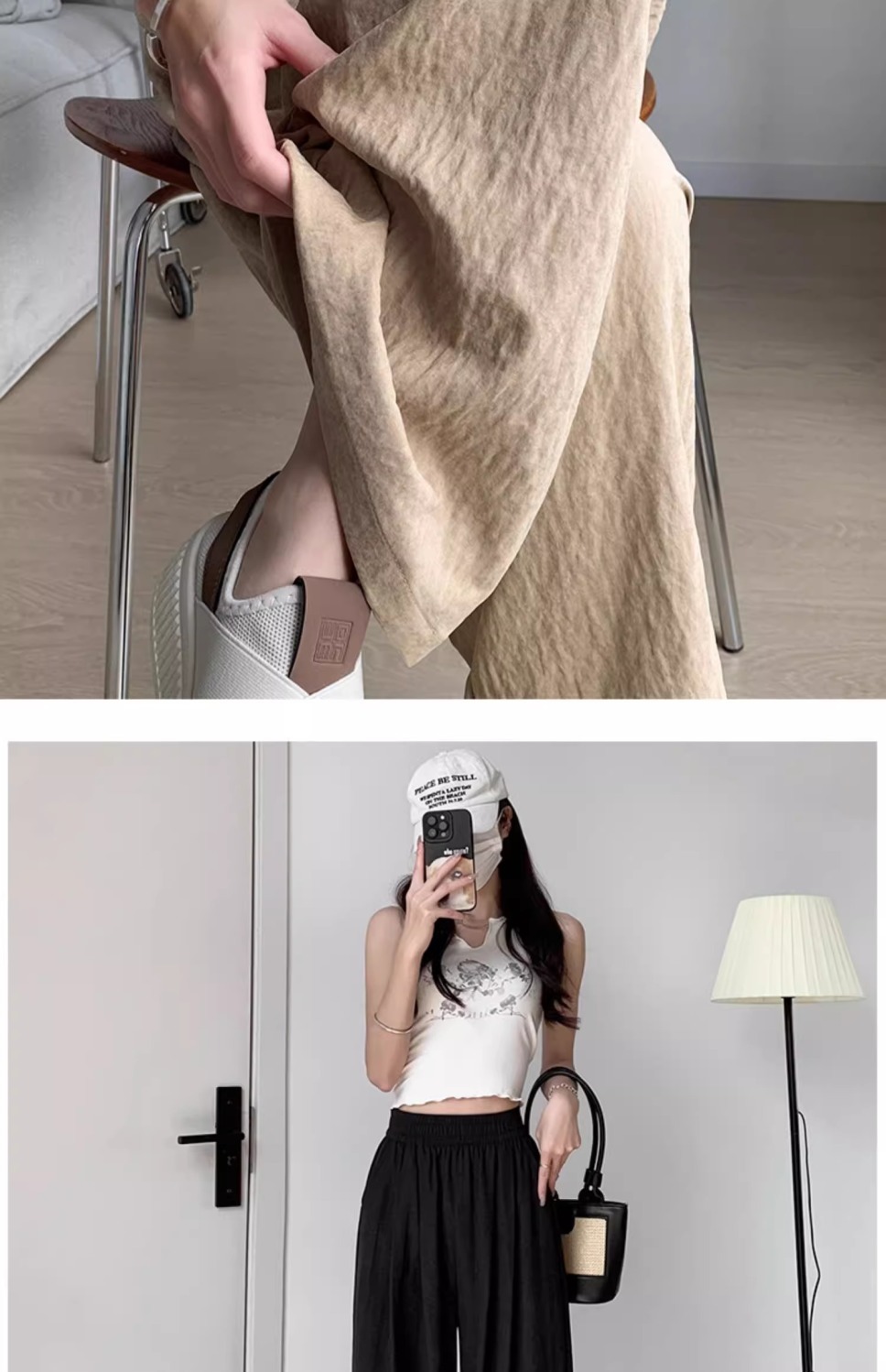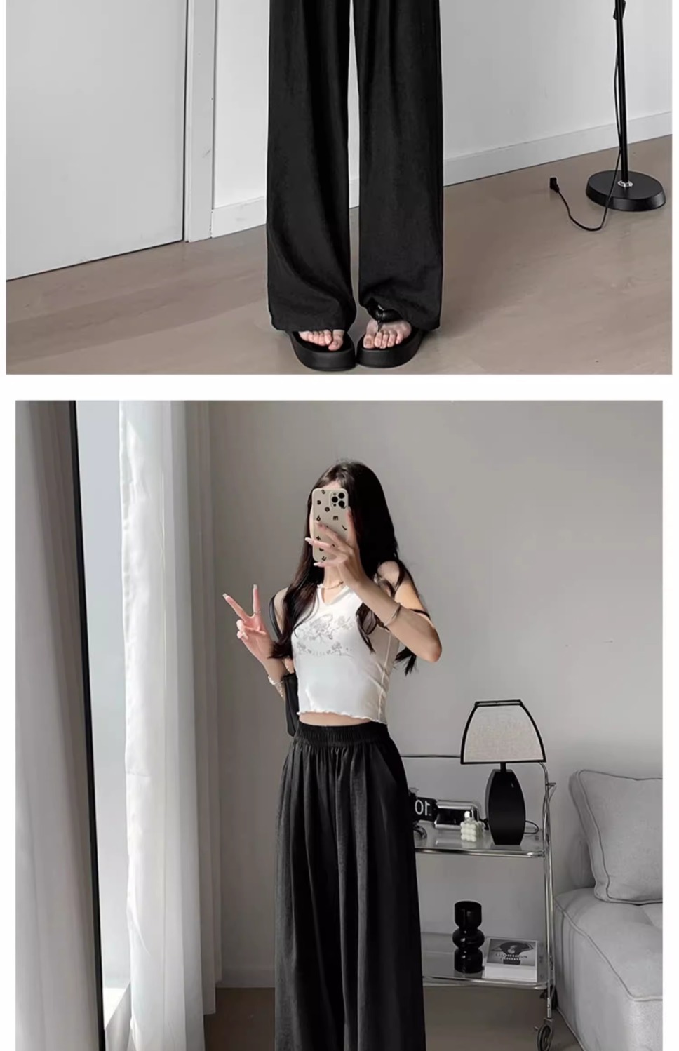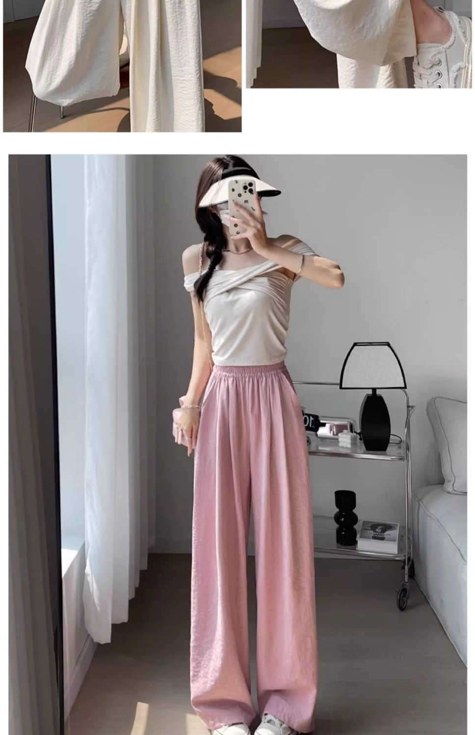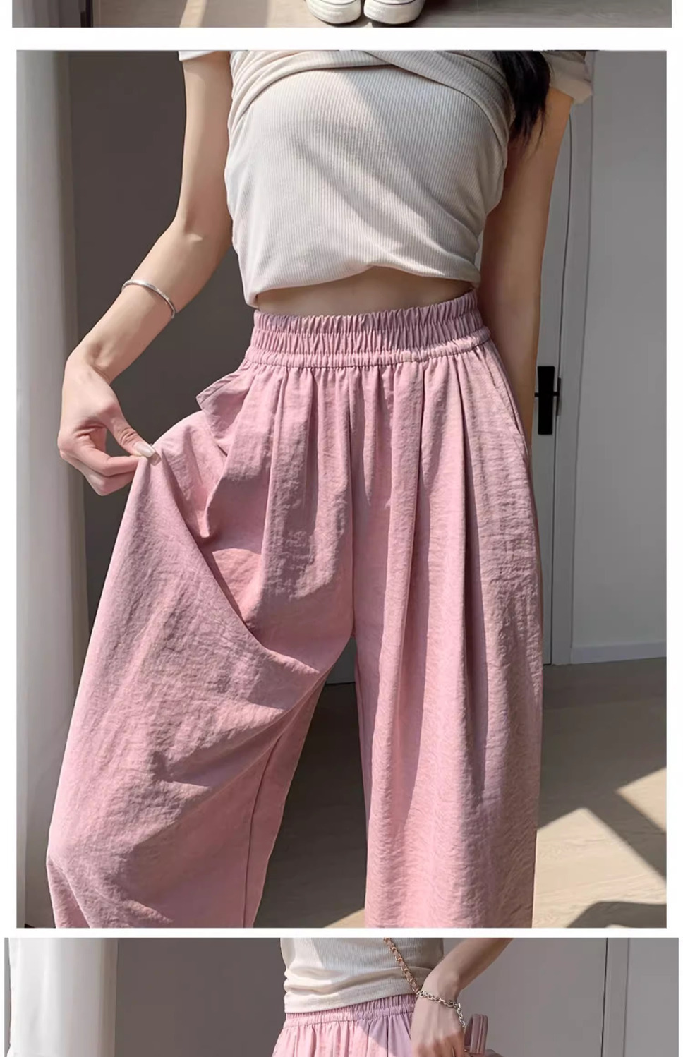 화이트 밀크 푸 야마모토 바지 여성 여름 2025 새로운 높은 허리 아이스 실크 넓은 다리 바지 게으른 Acetic 질감스토어 가기