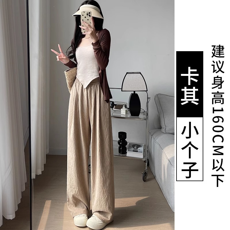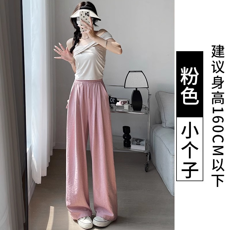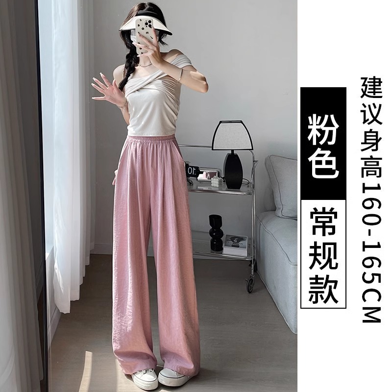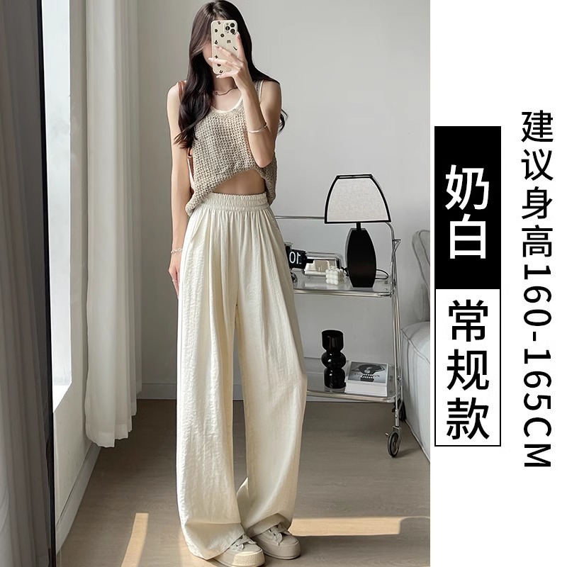 화이트 밀크 푸 야마모토 바지 여성 여름 2025 새로운 높은 허리 아이스 실크 넓은 다리 바지 게으른 Acetic 질감