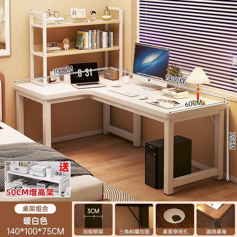 • +크로스보더+따뜻한 화이트 오른쪽 스타일▲140*100+단풍나무 체리색 수납선반 80CM⭐️높은 랙 보내기