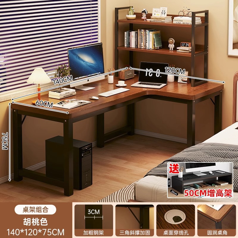 • +크로스보더+월넛 컬러 오른쪽 스타일▲140*120+오크색 수납선반 80CM⭐️높은 랙 보내기