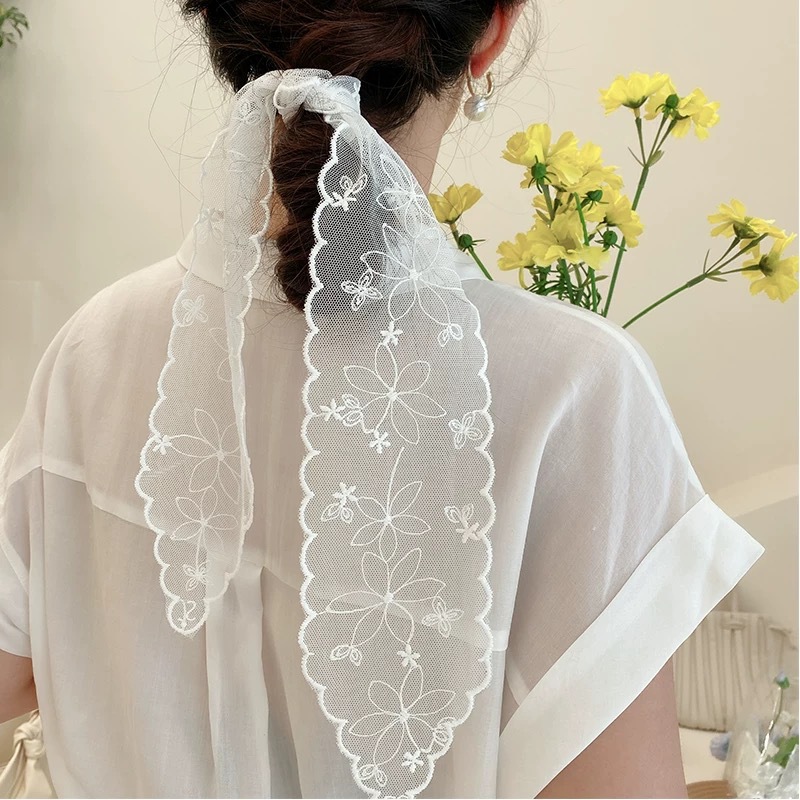 슈퍼 페어리 레이스 헤어 스카프 올 매치 우아한 긴 달콤한 넥타이 헤어 리본 벨트 헤어 액세서리 스카프