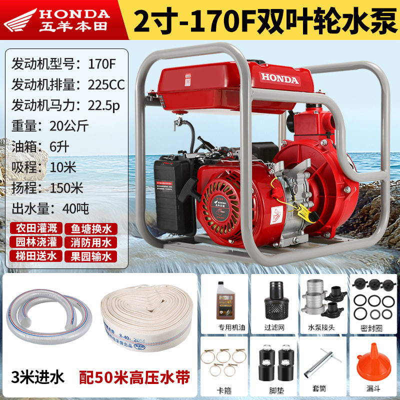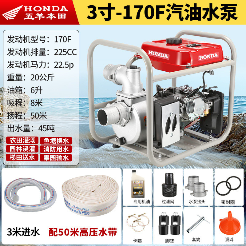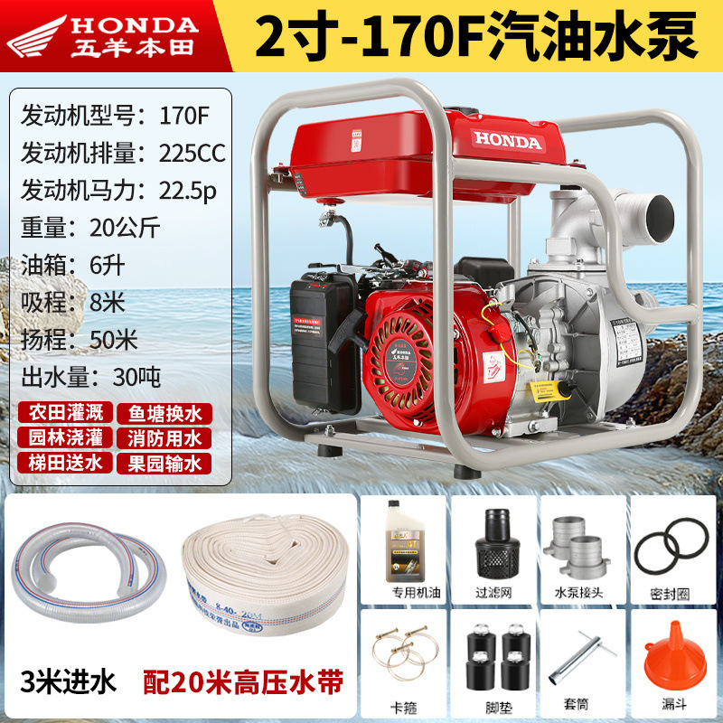 우양 혼다 6 리터 대형 연료 탱크 4 행정 고출력 가솔린 워터 펌프 농업 관개 워터 펌프 하이 리프트 펌프
