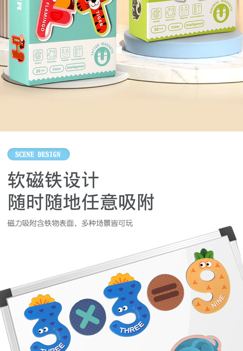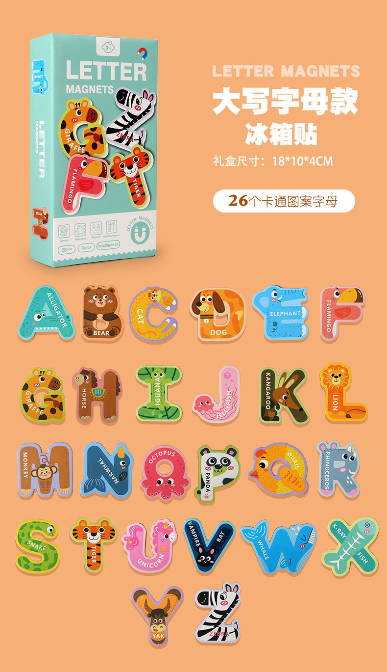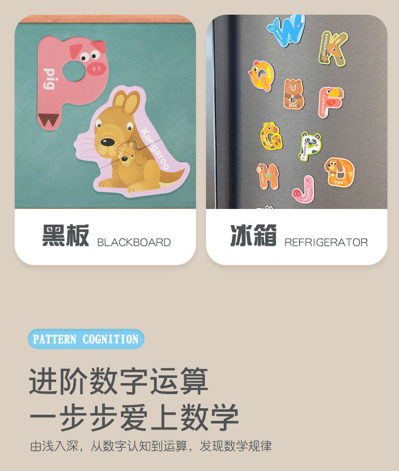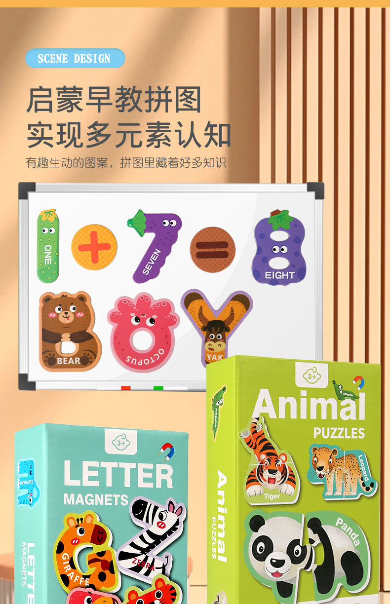 어린이 조기 교육 자석 퍼즐 26 글자 동물 숫자 스티커 3 ~ 6 세 유치원인지 교육 장난감스토어 가기
