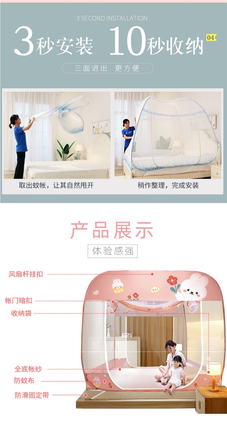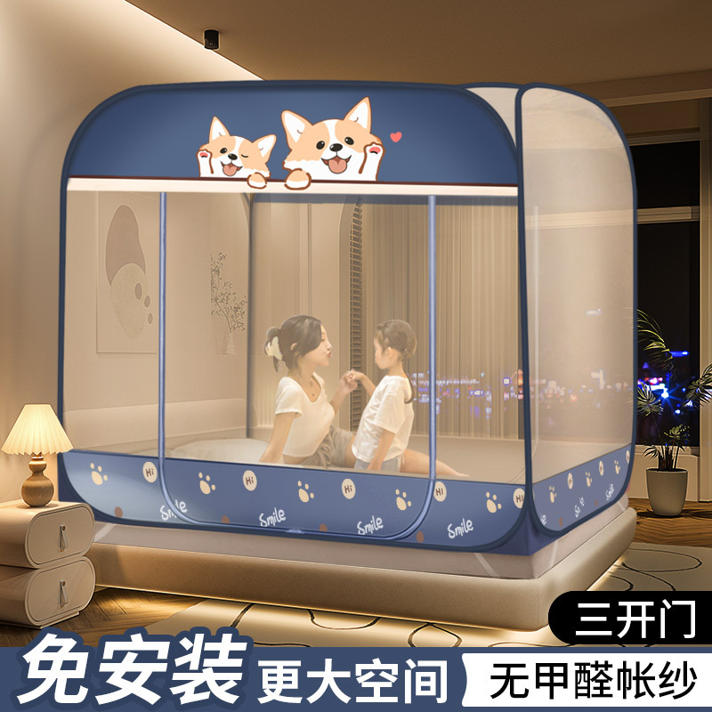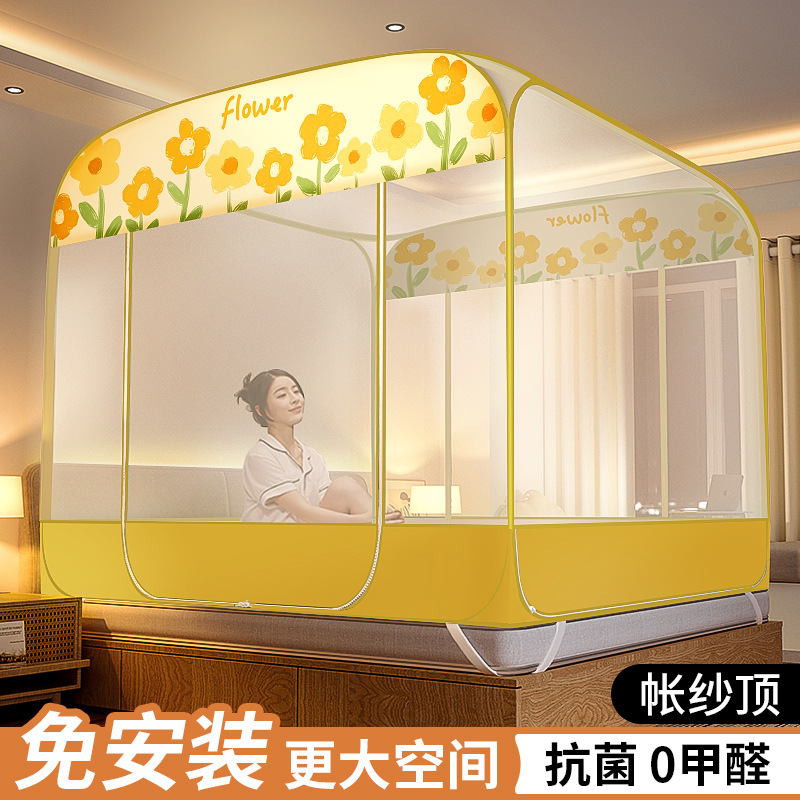 몽골 유르트 모기장 설치없는 가정용 침실 어린이 침대 낙하 방지 모기 커버 두꺼운 패턴 계정 2023 새로운 스타일스토어 가기