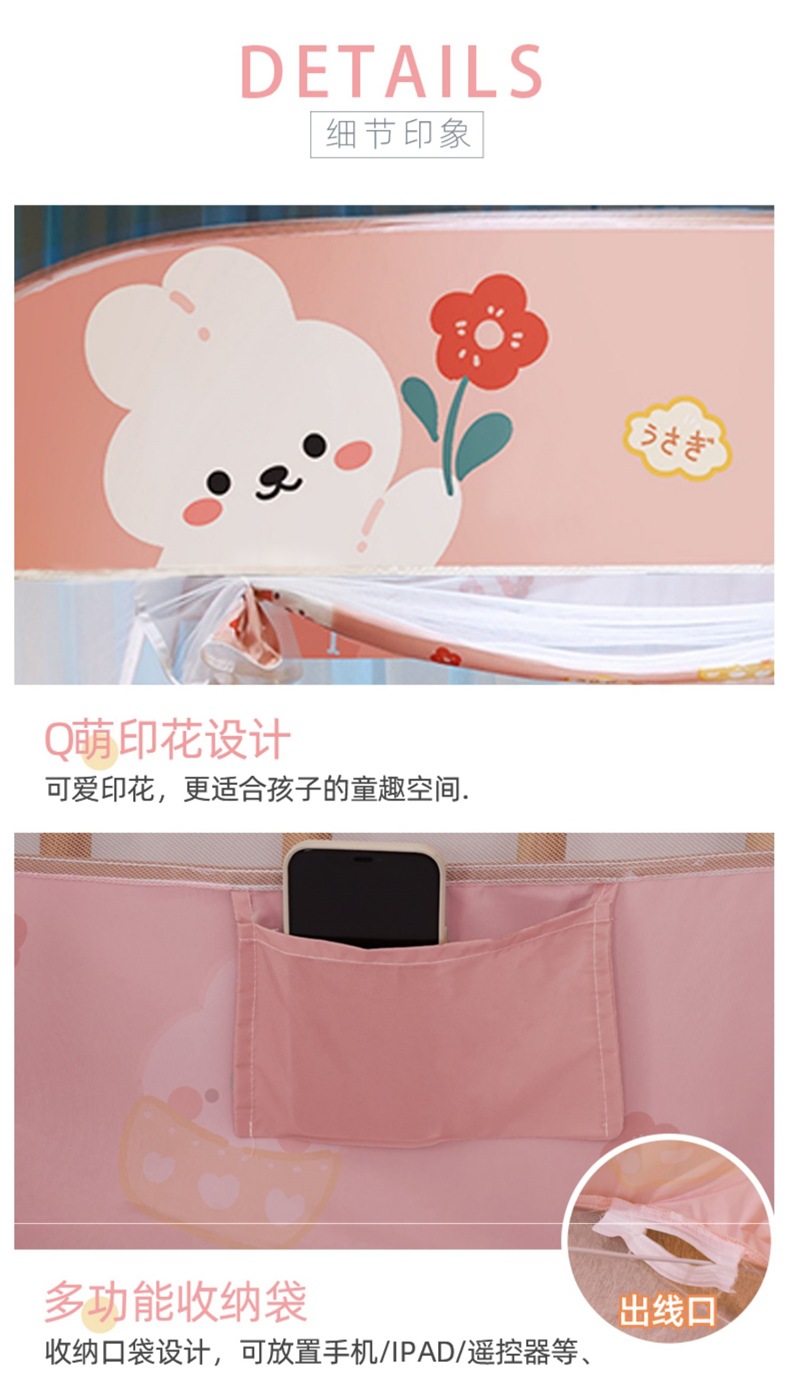 몽골 유르트 모기장 설치없는 가정용 침실 어린이 침대 낙하 방지 모기 커버 두꺼운 패턴 계정 2023 새로운 스타일