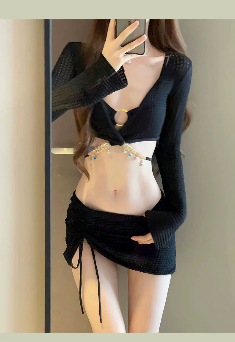 여성 수영복 2025 신상 비키니 여성 4피스 세트 분리형 패션 스커트 스타일 레이스 디테일 보수적 해변 온천용스토어 가기
