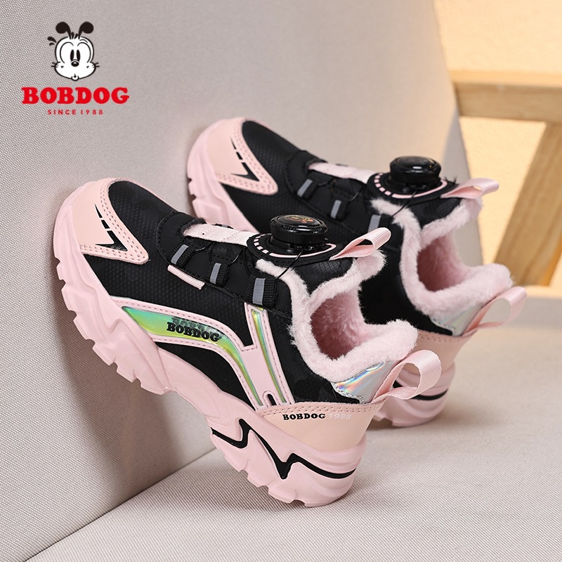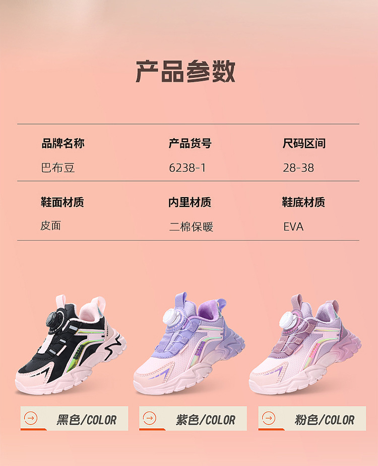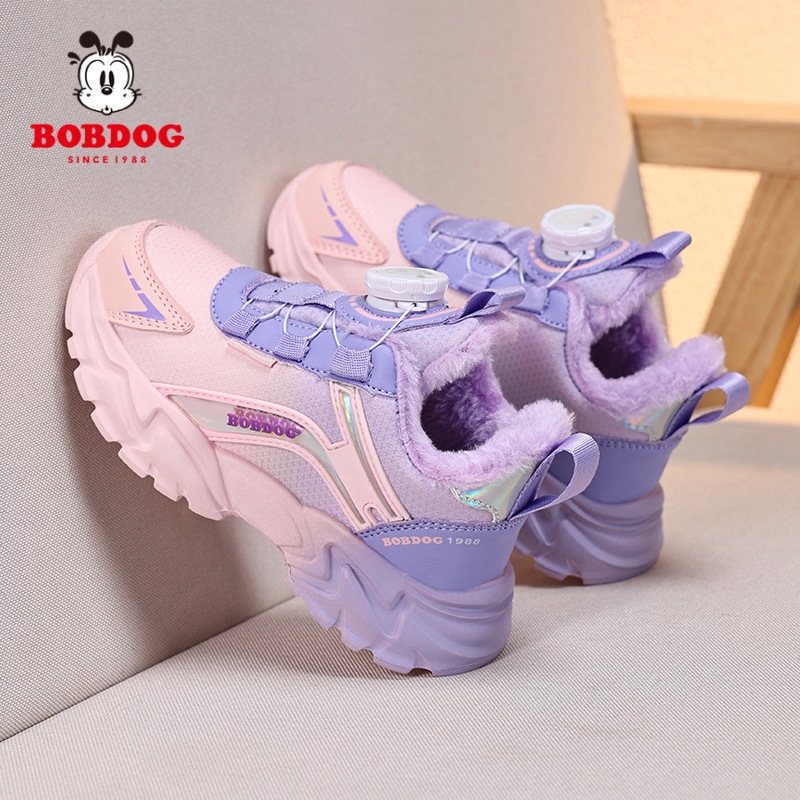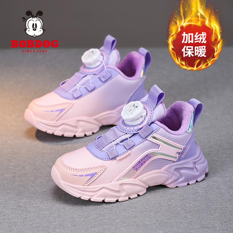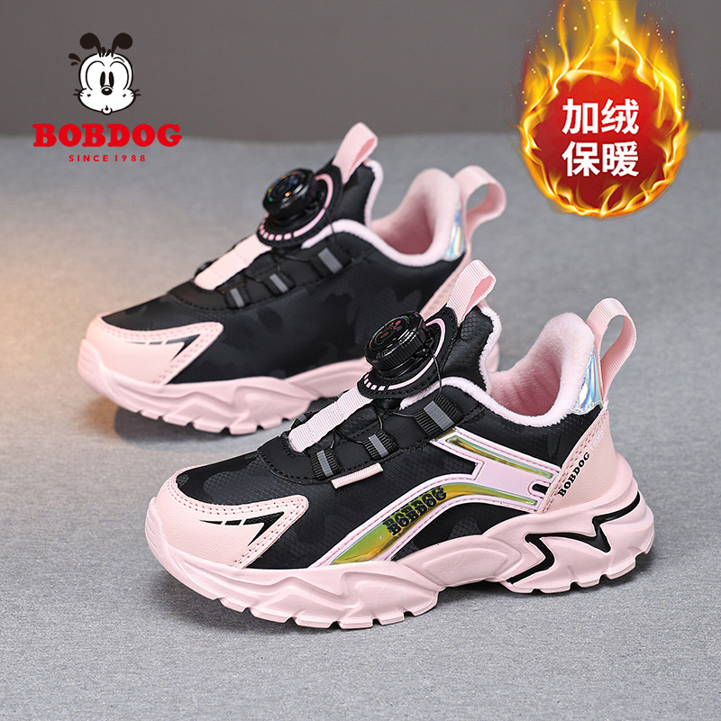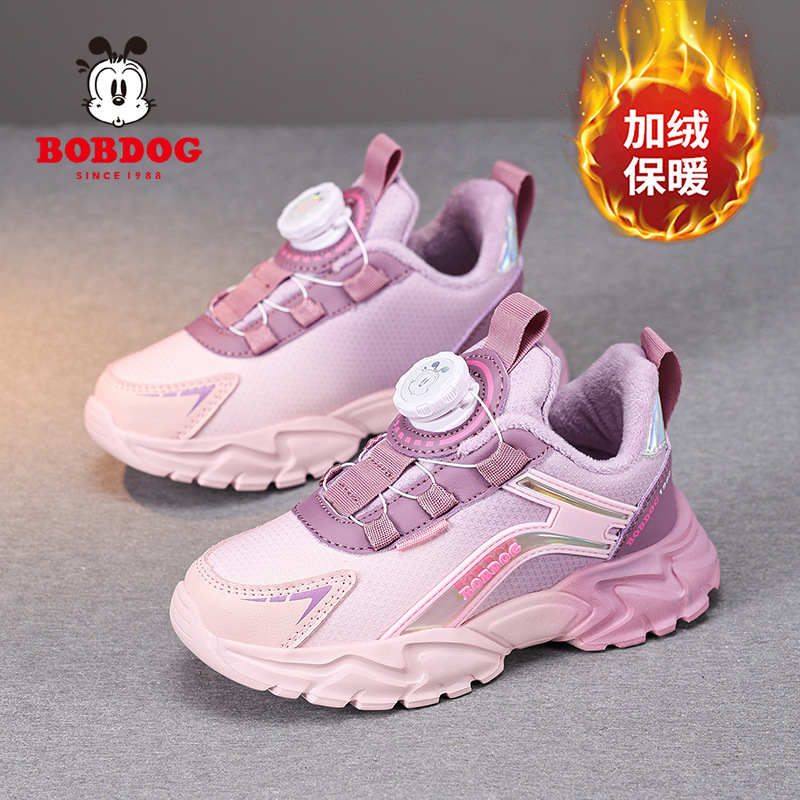 바부두 아동화 여아 운동화 2025 가죽 표면 플러스 벨벳 이중 면 아동화 가볍고 미끄럼 방지 여아 러닝화