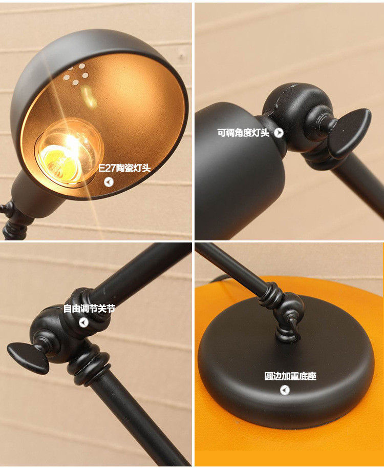 북유럽 로커 긴 팔 테이블 램프 산업 스타일 레트로 창조적 인 로프트 침실 침대 바 학생 눈 보호 테이블 leb스토어 가기