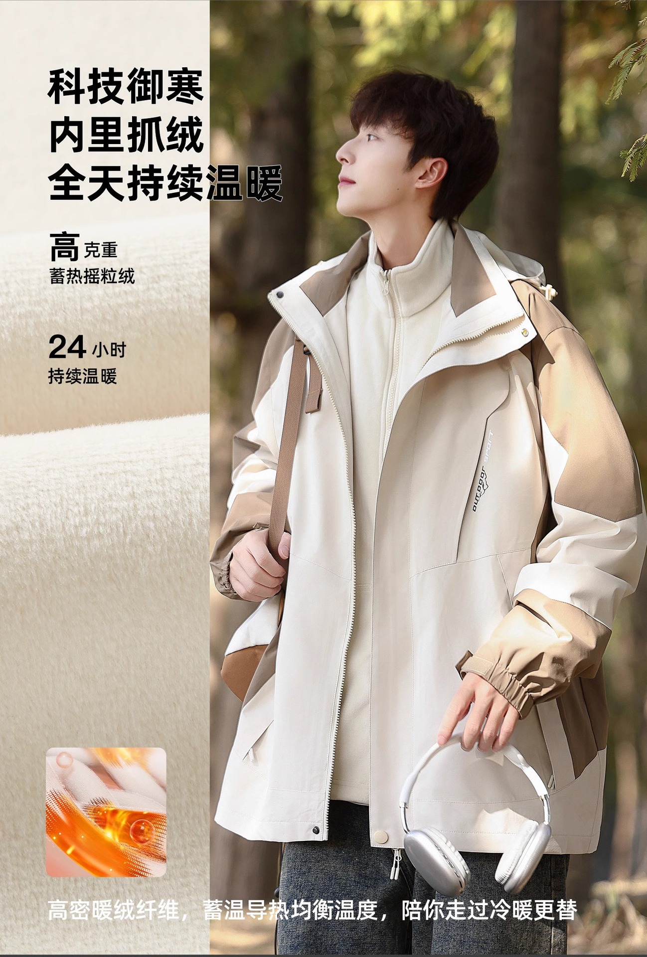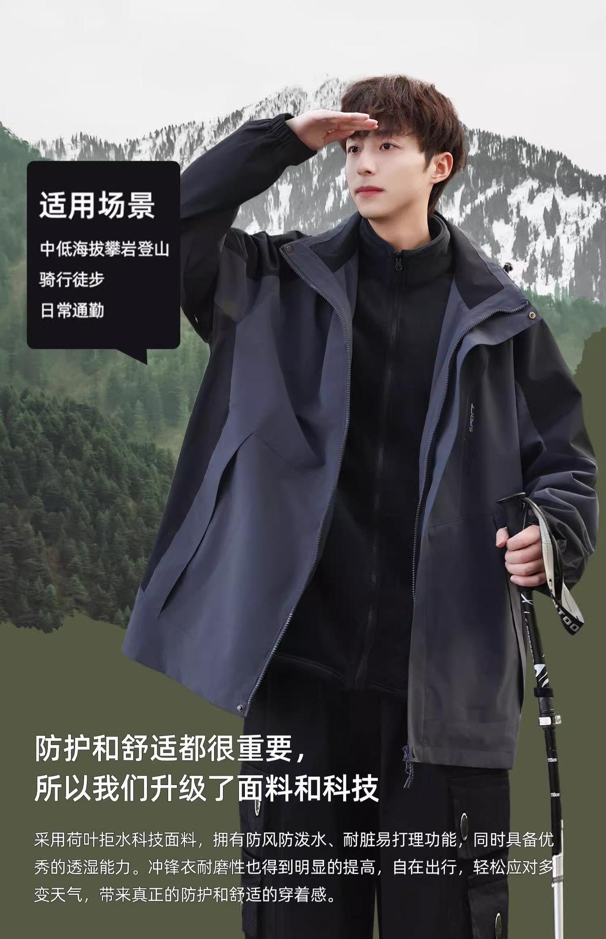 Woodpecker Three-in-one Charge Jacket 남자 봄 가을과 겨울 2025 뉴 크록 재킷 남자 등산 옷
