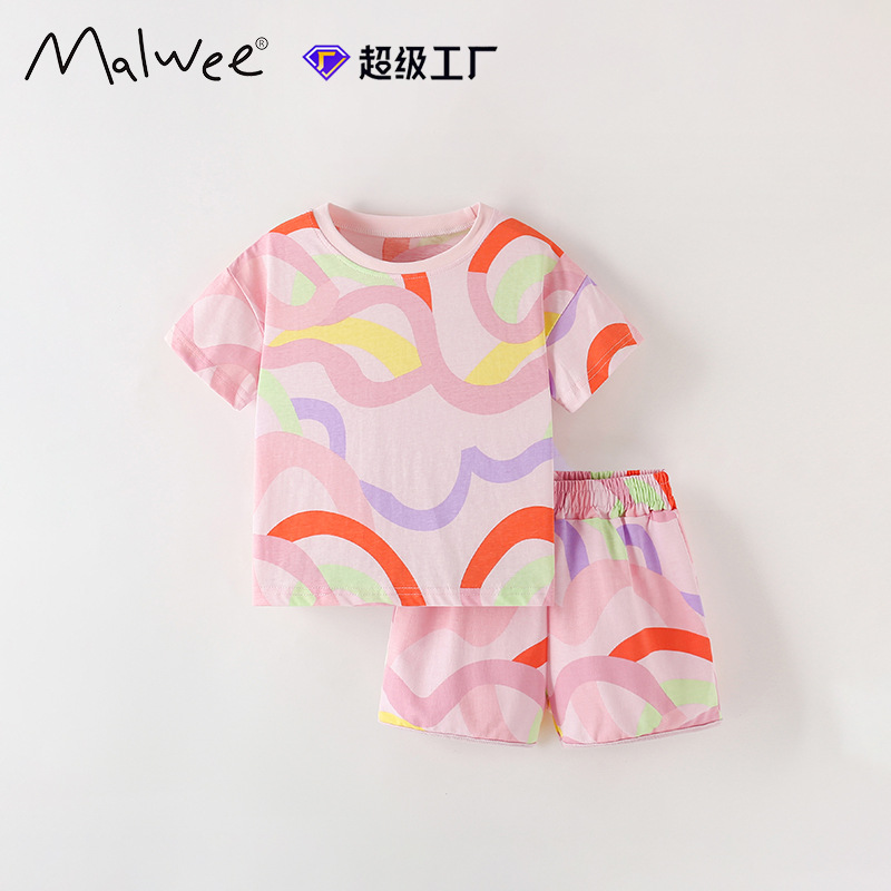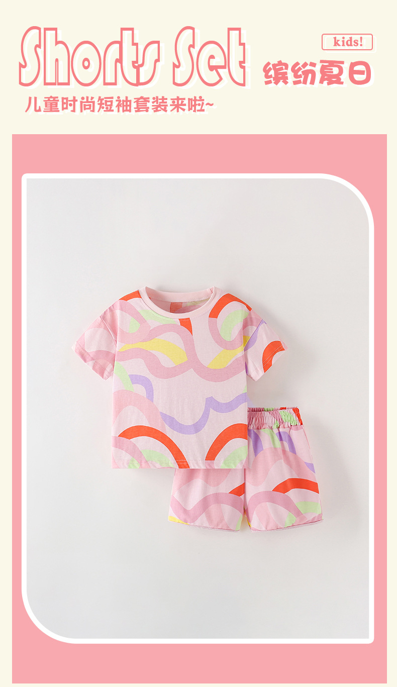 국경 간 말위 소녀 세트 여름 새로운 유럽과 미국 어린이 크루 넥 반팔 티셔츠 스웨터 투피스 세트스토어 가기