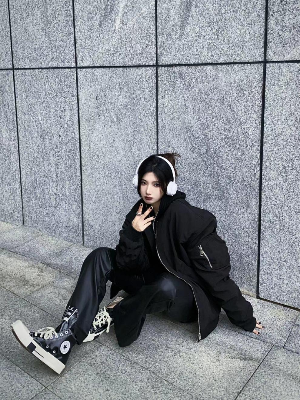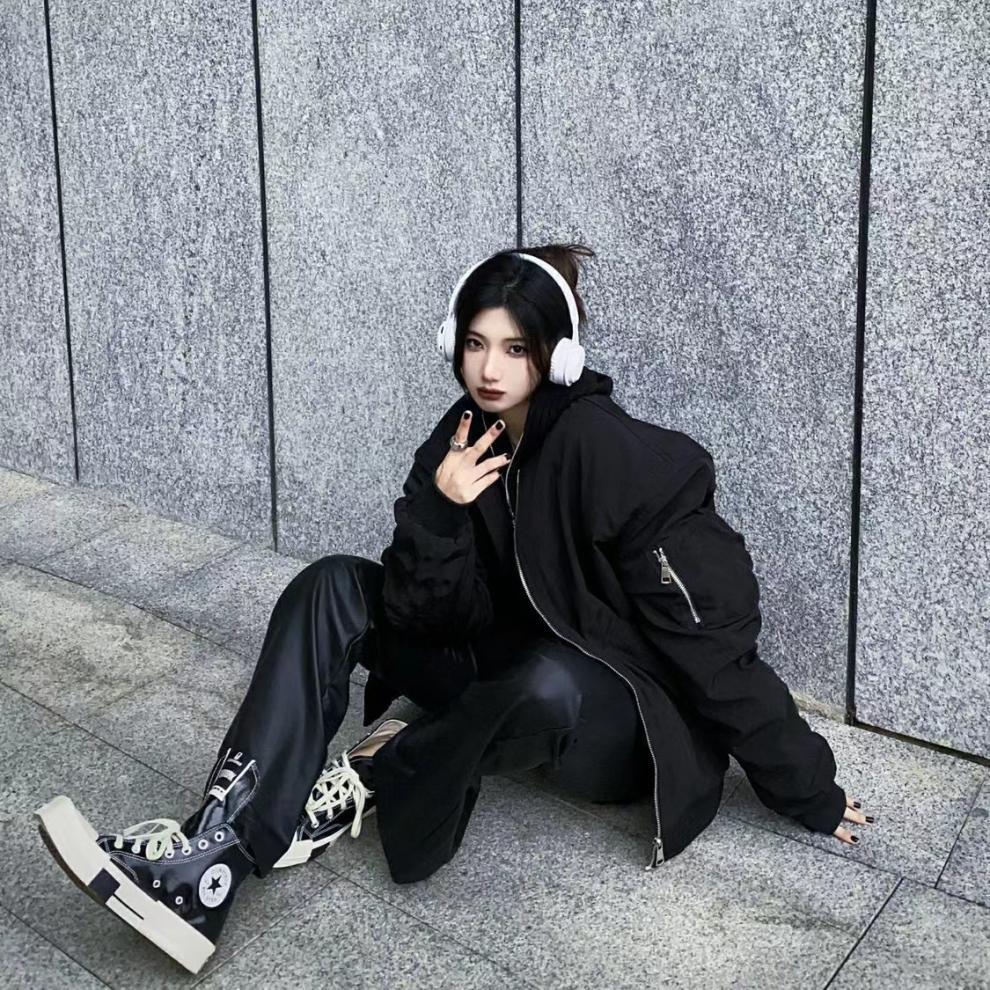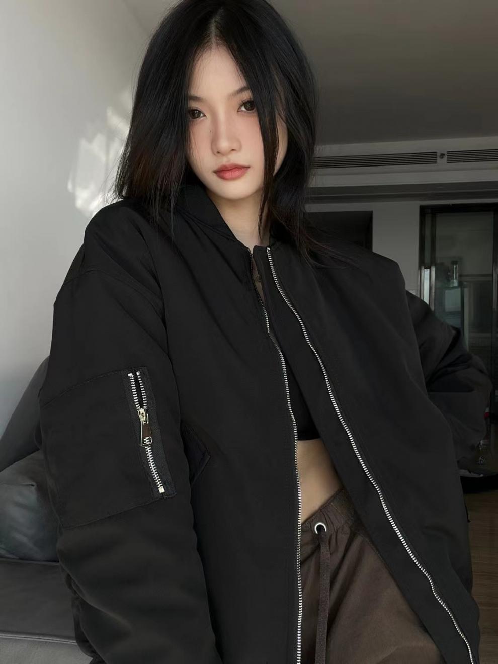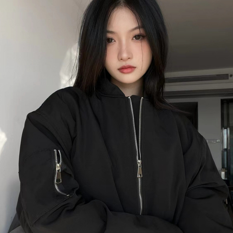 블랙 플라잉 세트 재킷 느슨한 캐주얼 봄 및 가을 아메리칸 스타일 레트로 야구 세트 재킷 여자 내부 한국 스타일 트렌디 탑스토어 가기