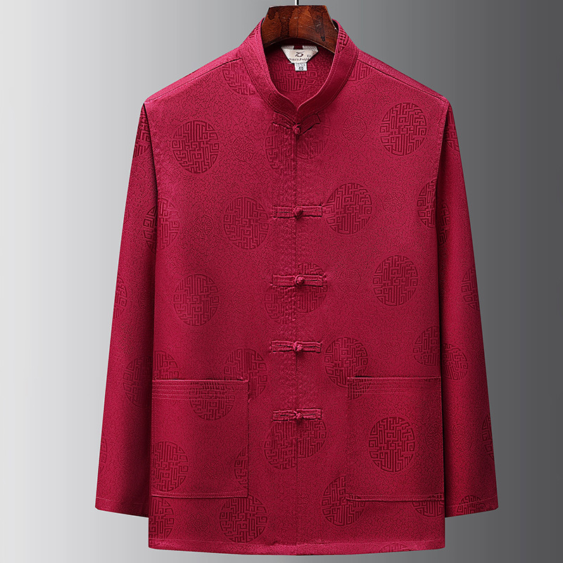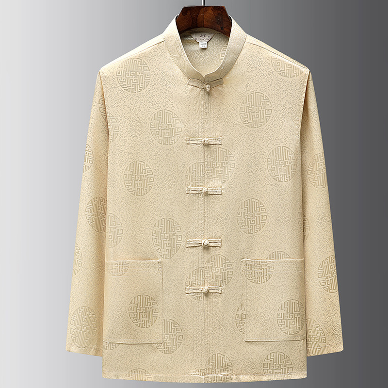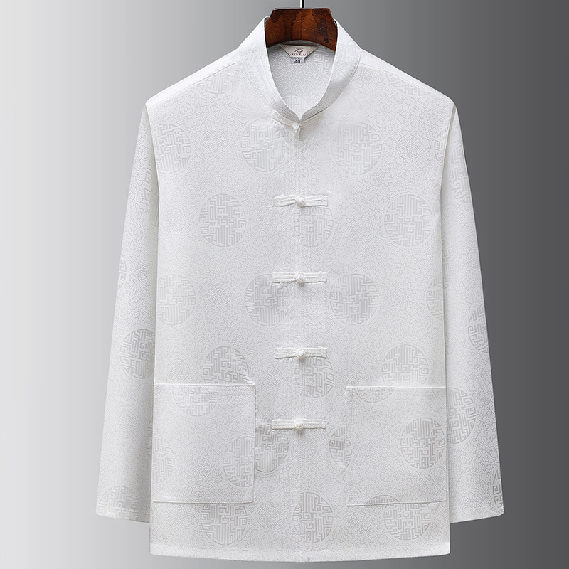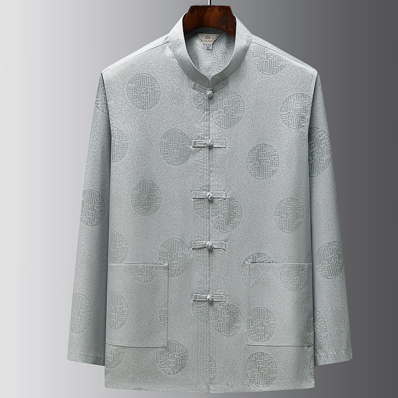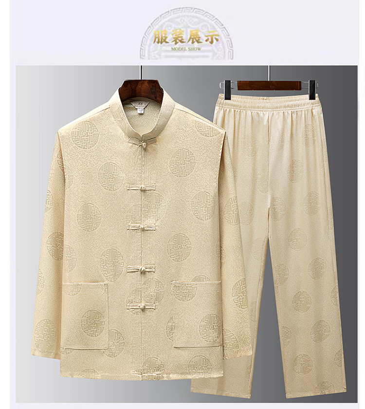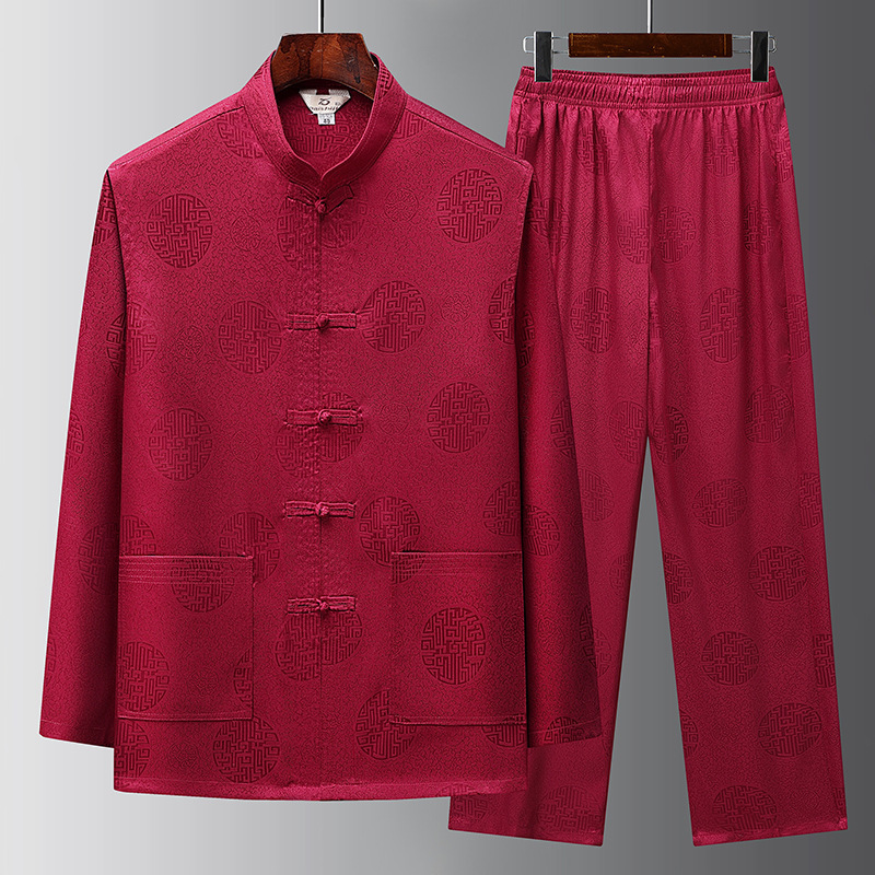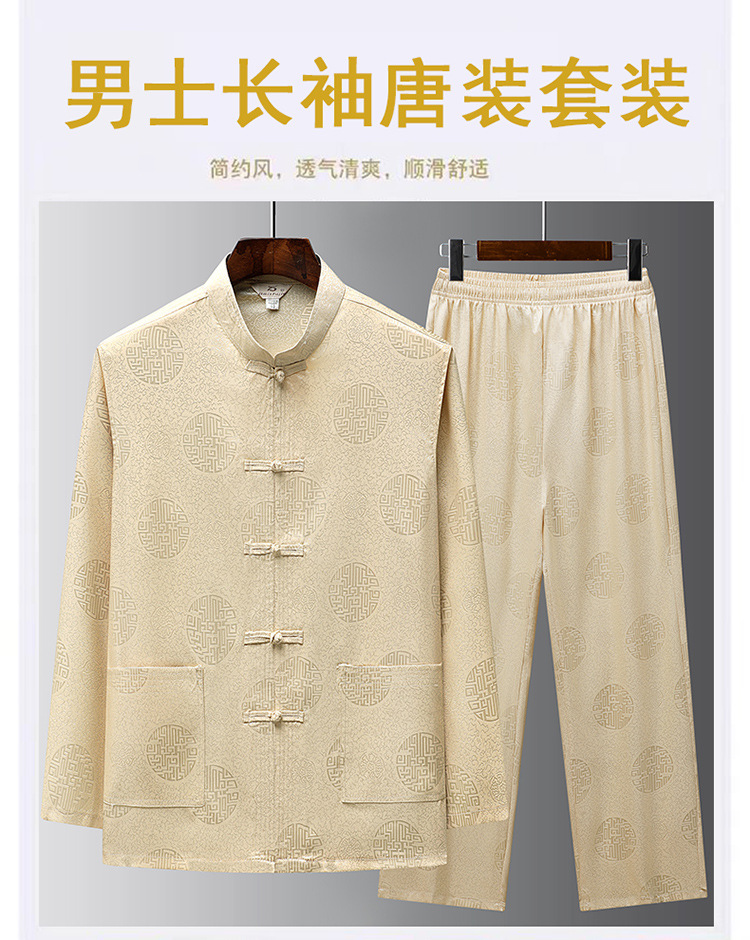 Tang 세트 남성 아이스 실크 자카드 qianxi 긴팔 탑 얇은 세트 세트 의류 노인 중국식 할아버지 여름 옷