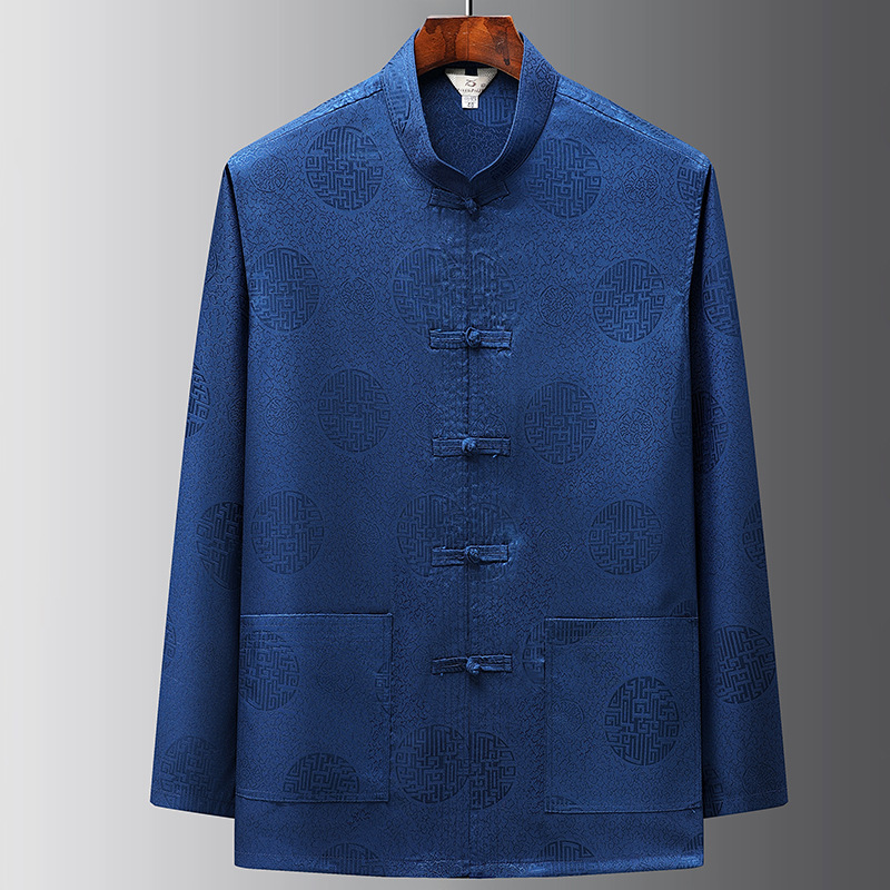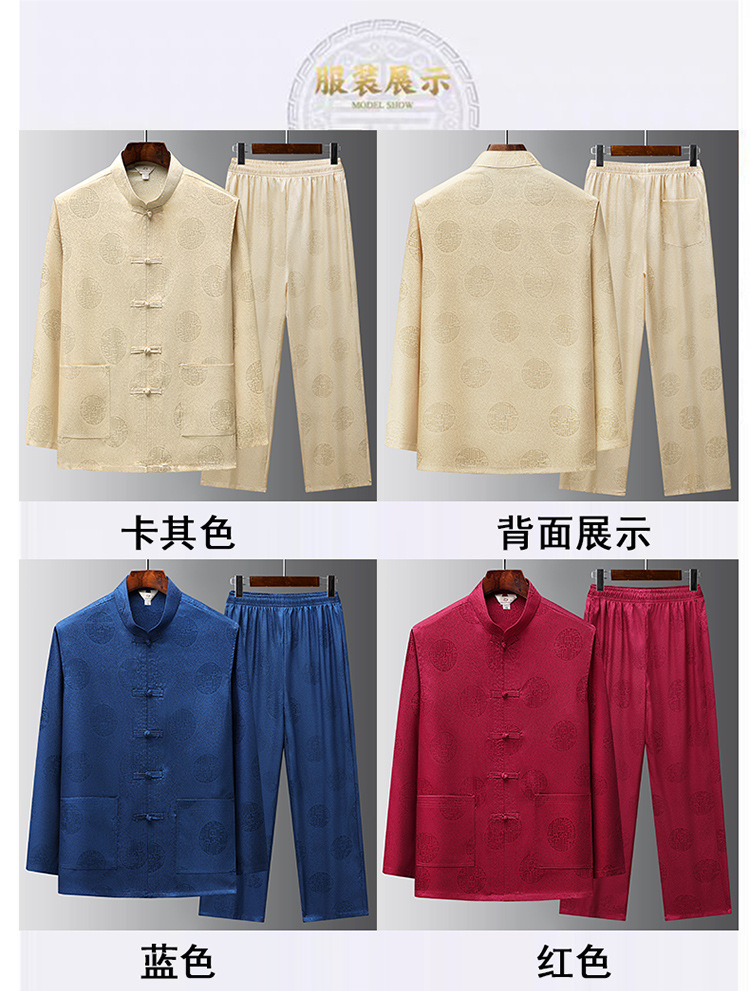 Tang 세트 남성 아이스 실크 자카드 qianxi 긴팔 탑 얇은 세트 세트 의류 노인 중국식 할아버지 여름 옷스토어 가기