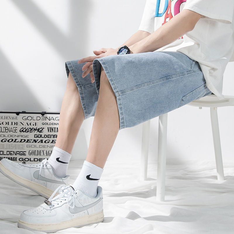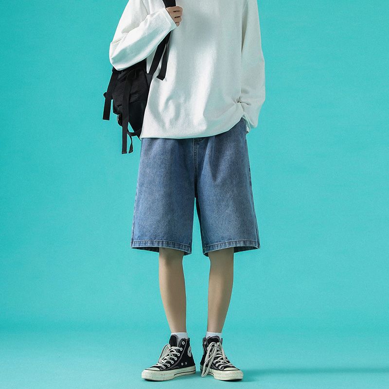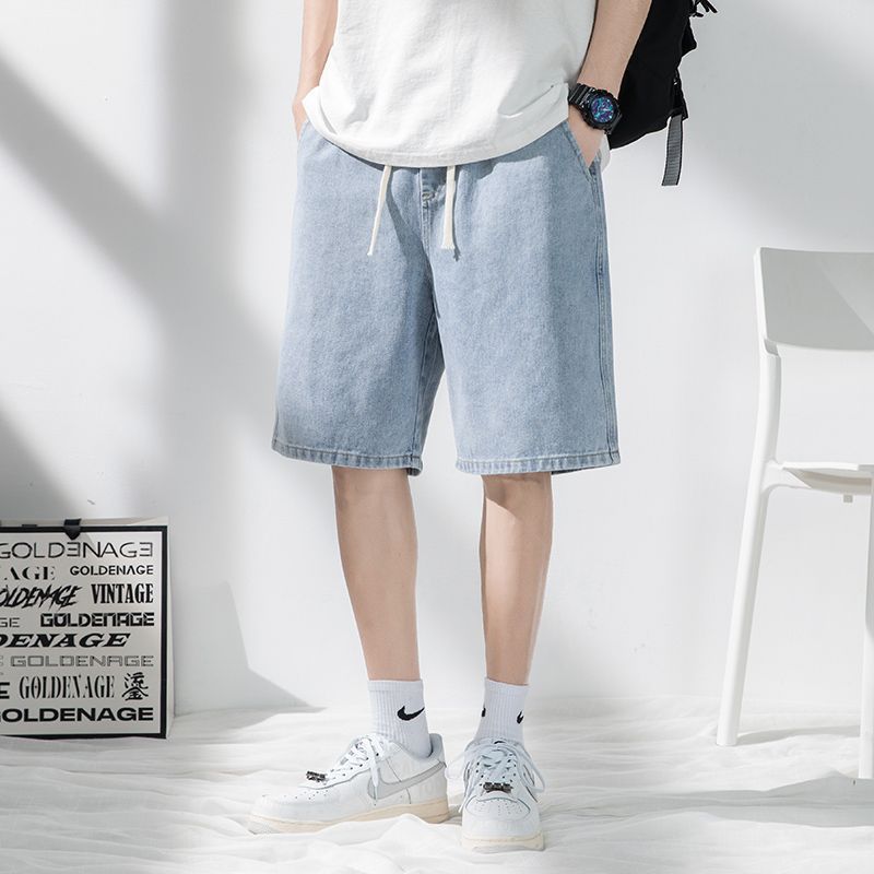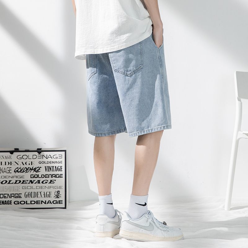 남자 봄 허리 데님 반바지 여름 유행 브랜드 레트로 느슨한 홍콩 스타일 바지 남자 올 매치 아우터 바지스토어 가기