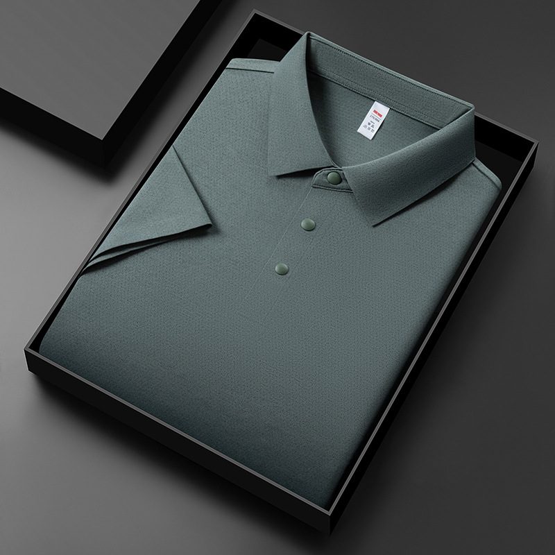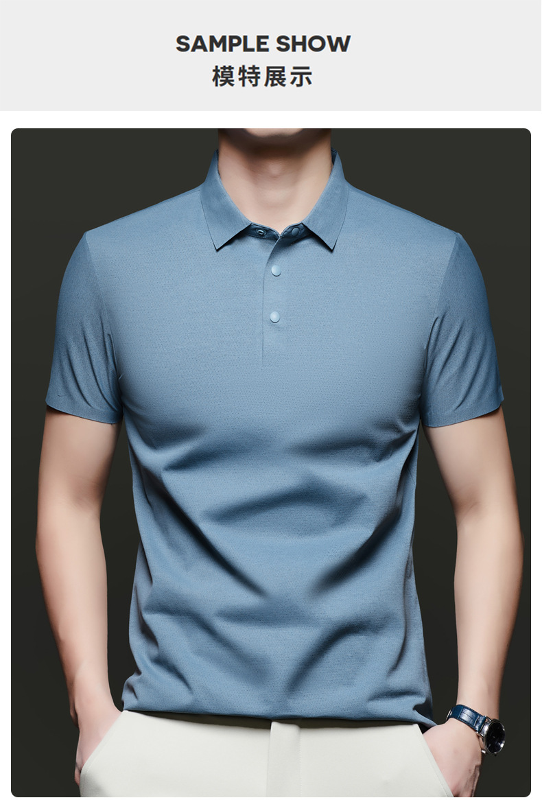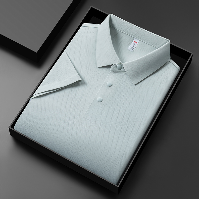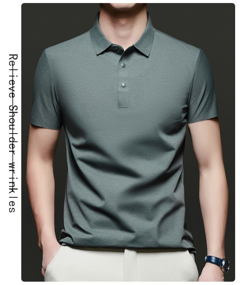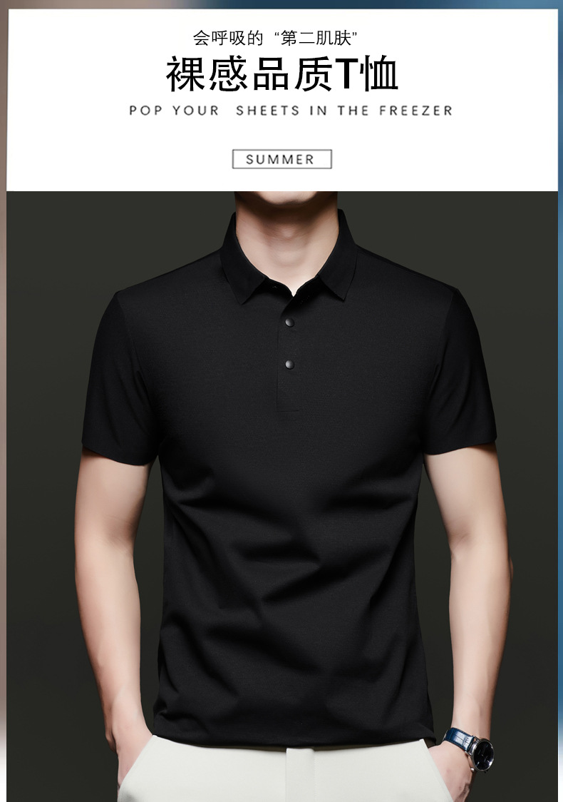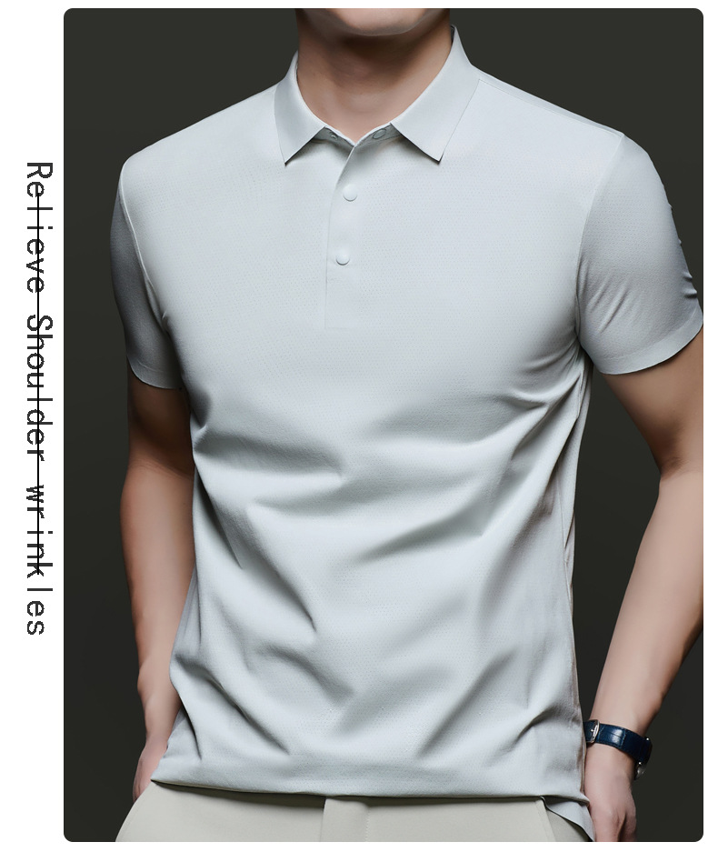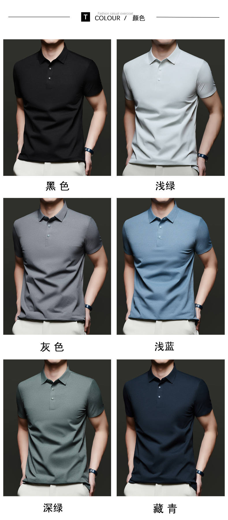 여름 아이스 실크 쿨 반팔 폴로 셔츠 남자 2025 새로운 솔리드 컬러 롭 캐주얼 티셔츠 심플 남성복스토어 가기