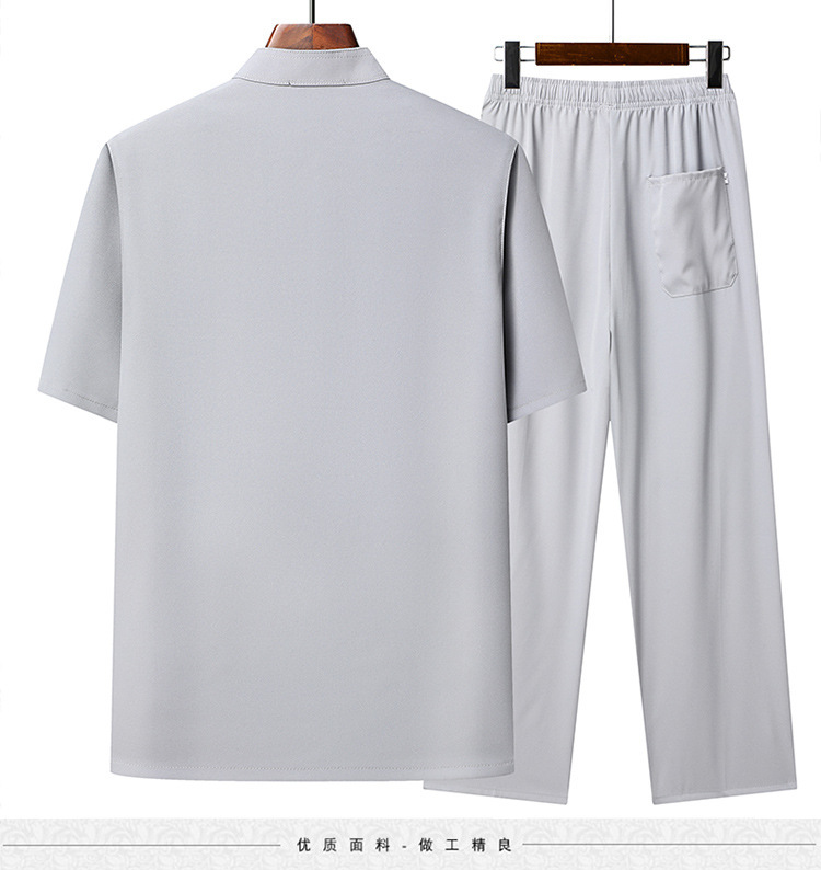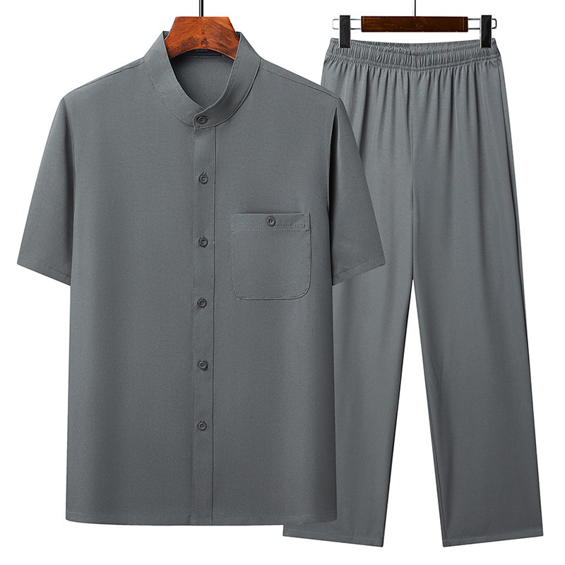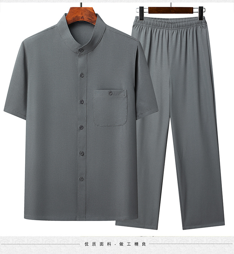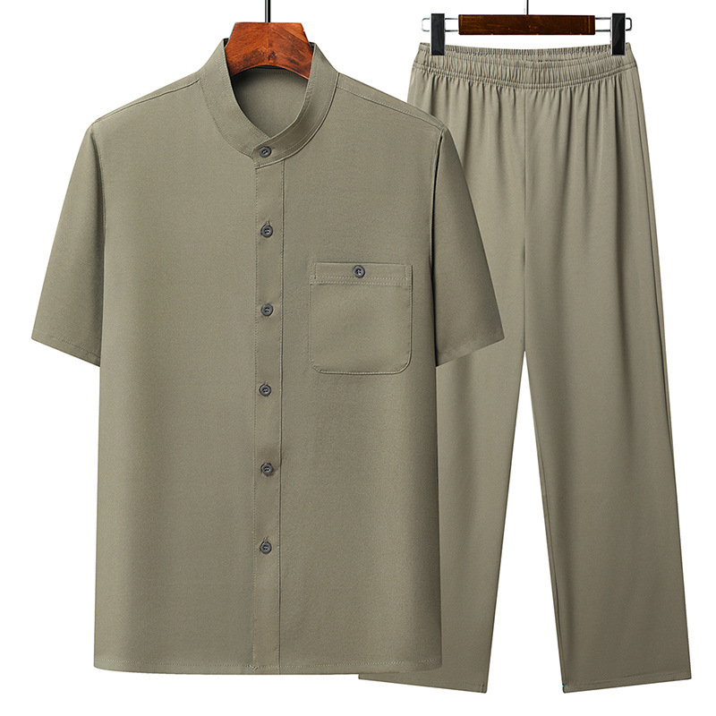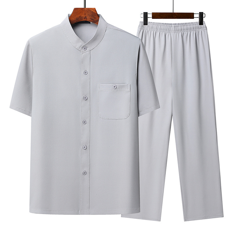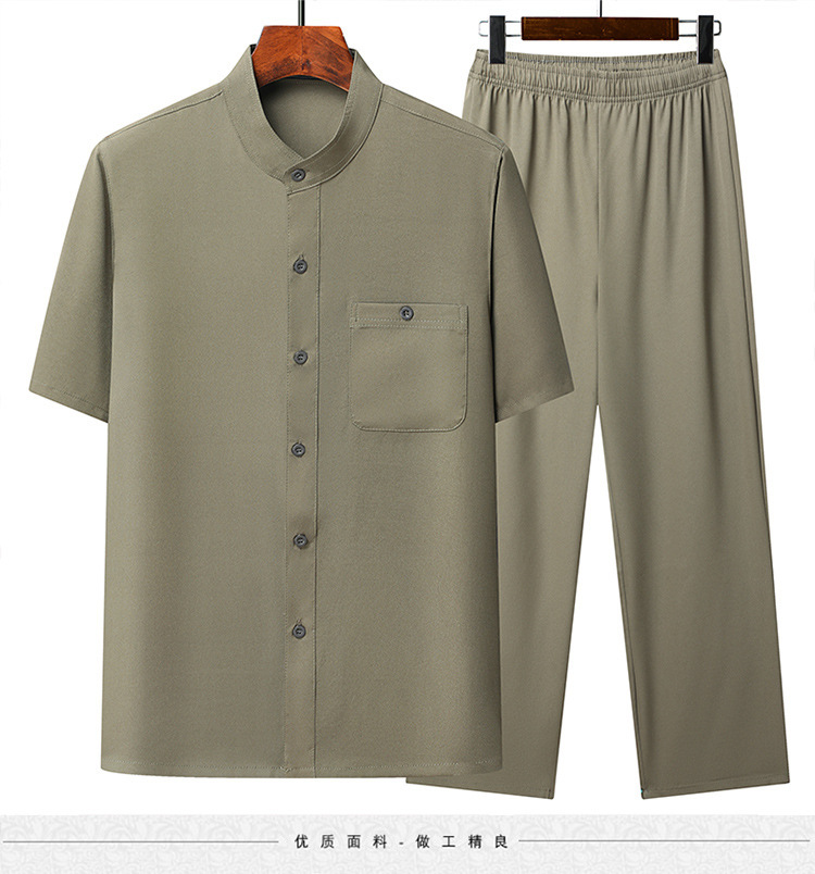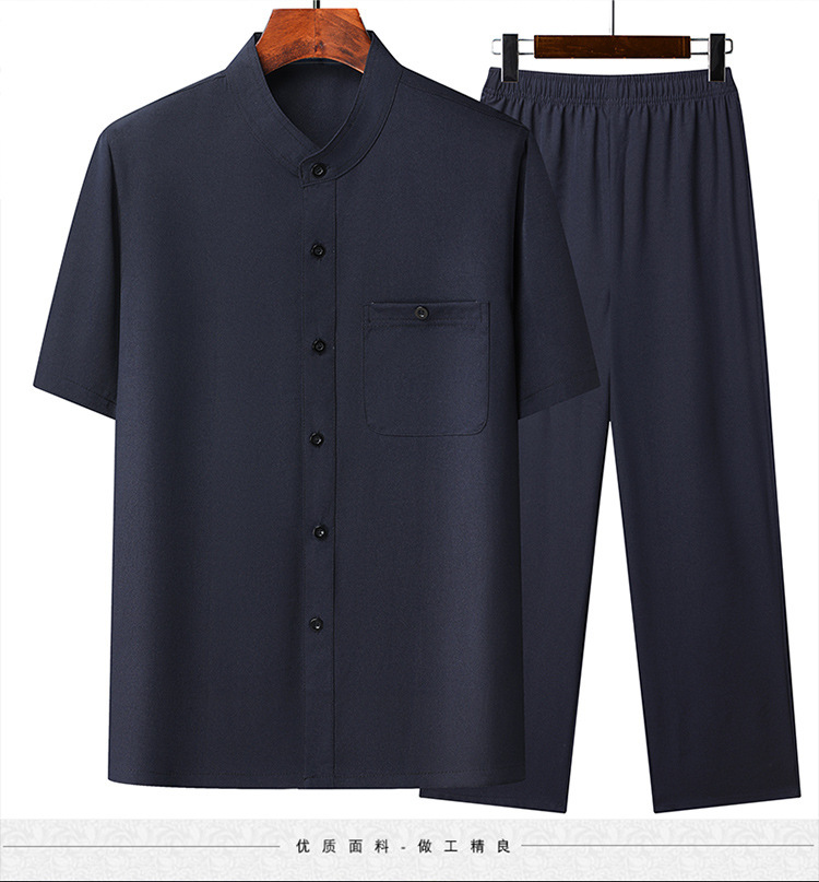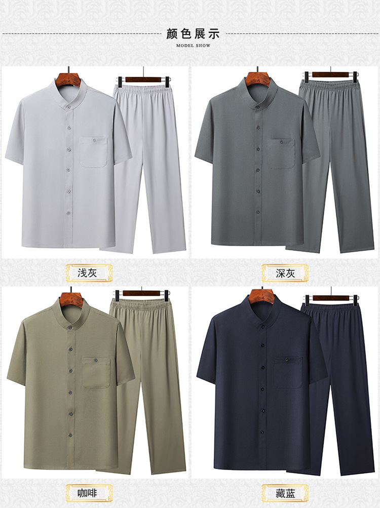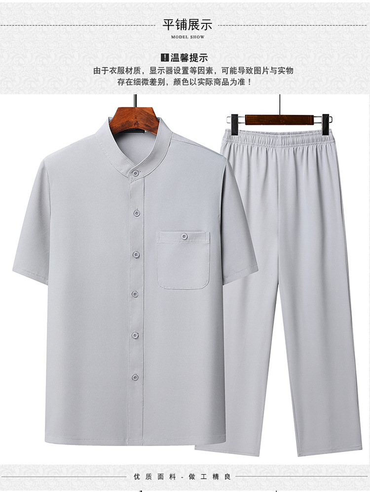 아빠의 여름 투피스 셔츠 반팔 남자 탕 세트 세트 중년 노인 할아버지 칼라 셔츠 60 여름 70스토어 가기