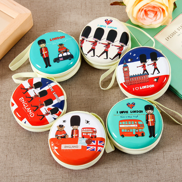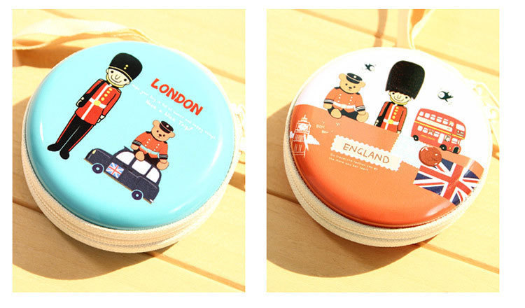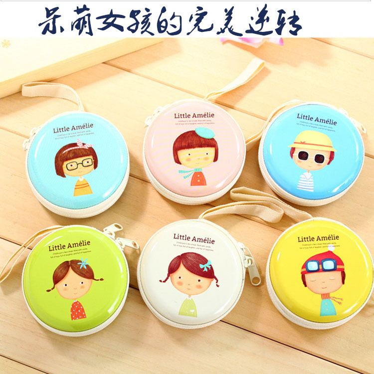 어린이 창조적 인 귀여운 틴플레이트 동전 지갑 만화 동전 지갑 이어폰 라인 둥근 지퍼 보관 가방 휴대용스토어 가기