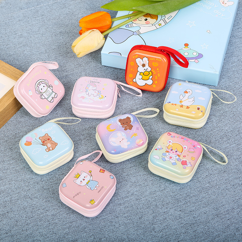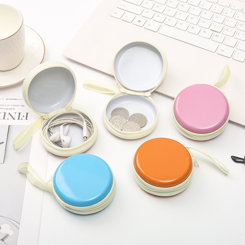 어린이 창조적 인 귀여운 틴플레이트 동전 지갑 만화 동전 지갑 이어폰 라인 둥근 지퍼 보관 가방 휴대용