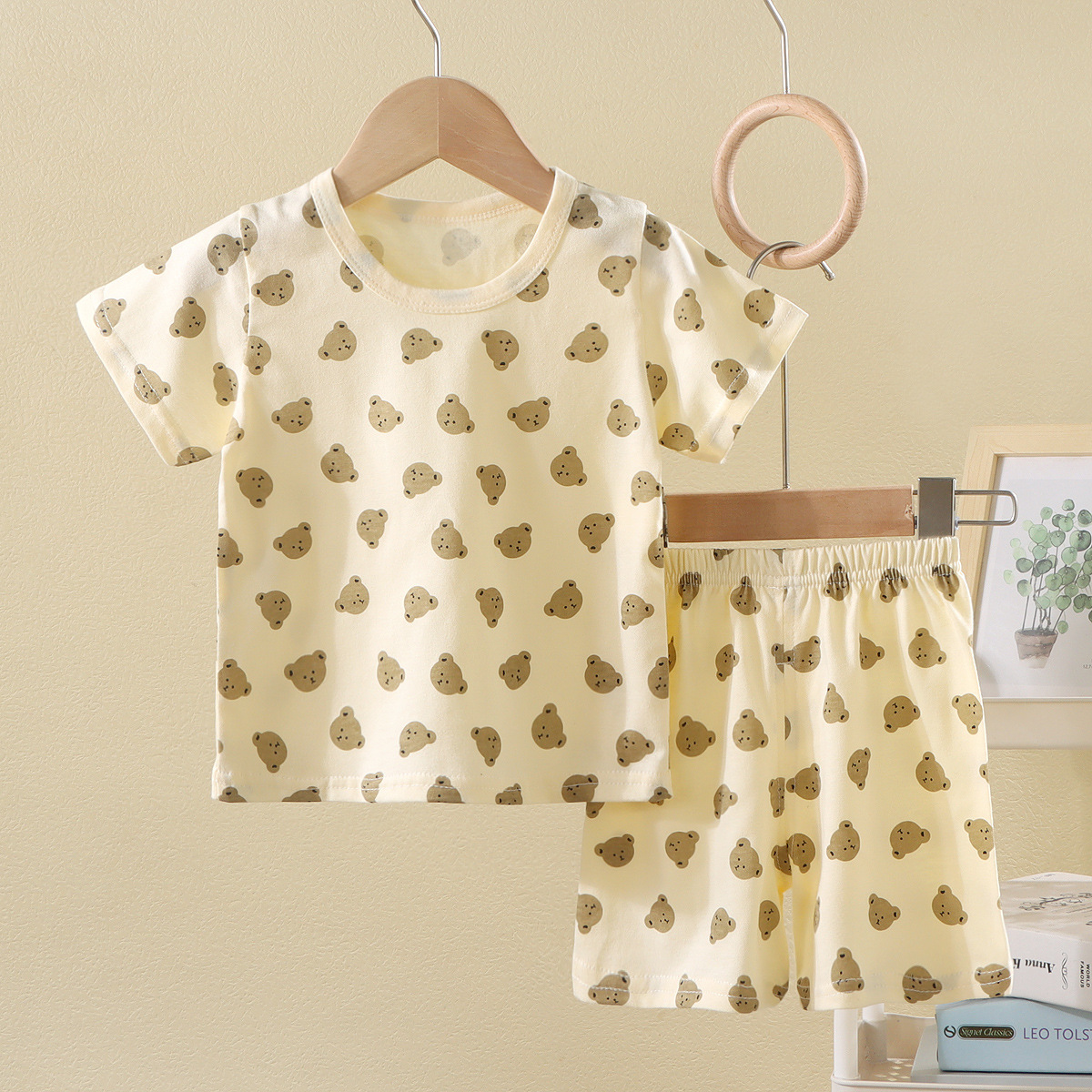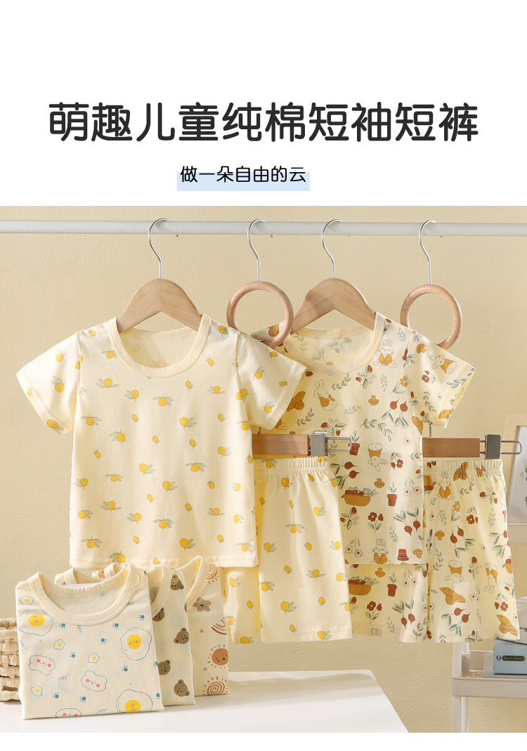 남학생과 여학생을위한 여름 새 어린이 면 파자마 반팔 반바지 홈 의류 아기 에어컨 의류 세트스토어 가기