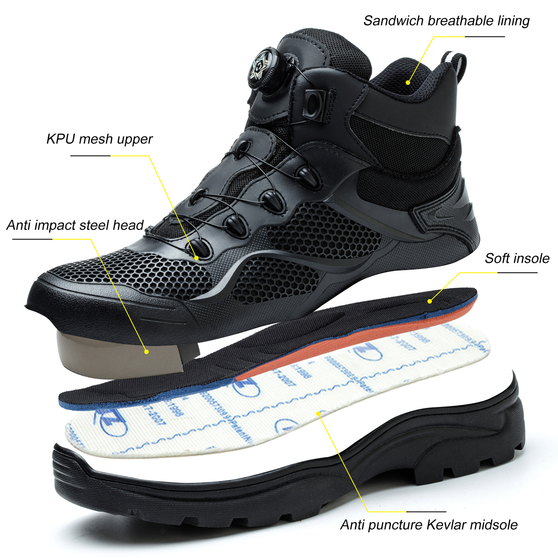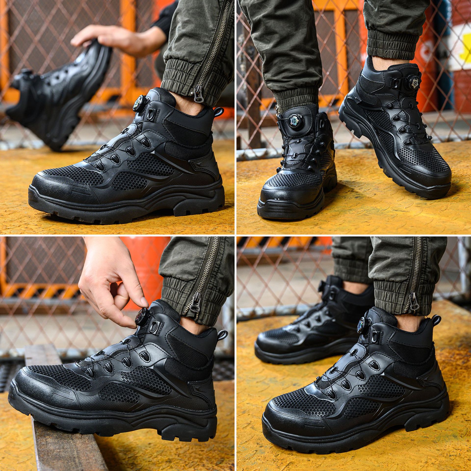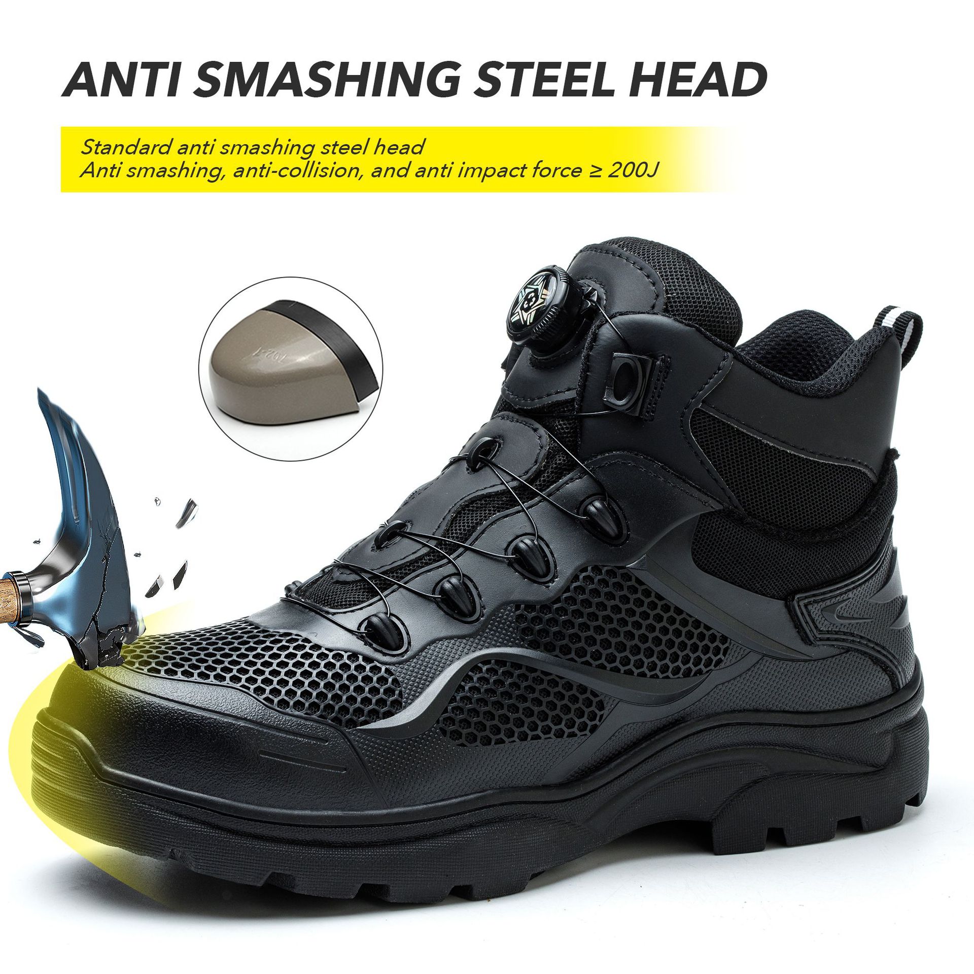 남성용 국경 간 인기 회전 버튼 노동 보호 신발, 봄 여름용 탈취제, 통기성, 충격 방지 및 펑크 방지 안전 작업 보호 신발스토어 가기