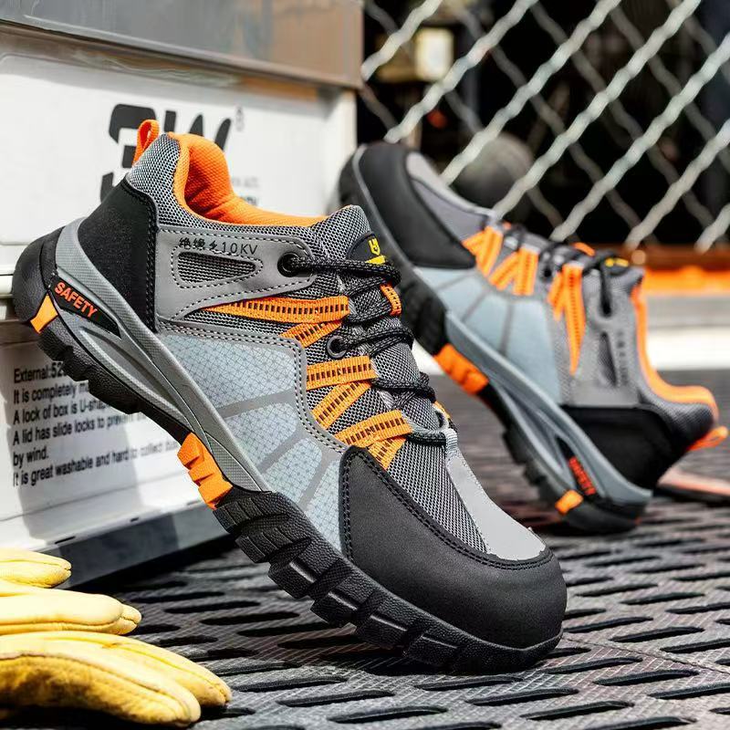 남성용 국경 간 인기 회전 버튼 노동 보호 신발, 봄 여름용 탈취제, 통기성, 충격 방지 및 펑크 방지 안전 작업 보호 신발