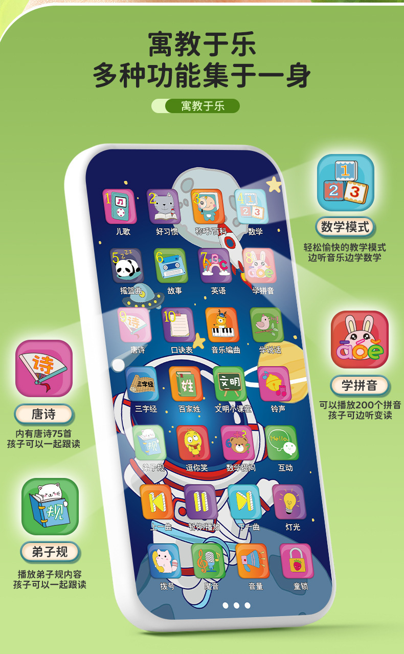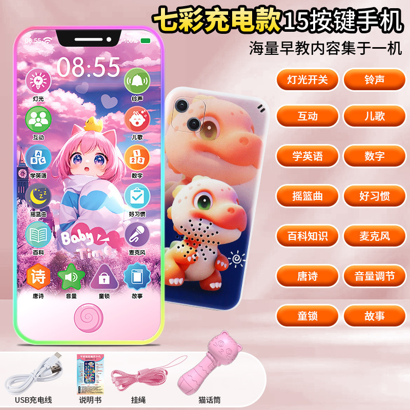 터치 스크린 충전식 어린이 장난감 휴대 전화 아기 스마트 조기 교육 기계 학습 포인트 읽기 기계 아기 전화 이야기 기계스토어 가기