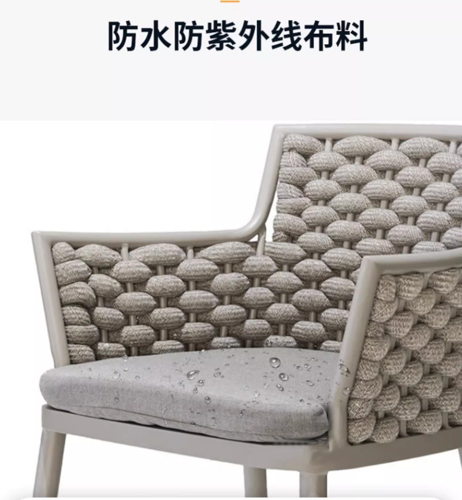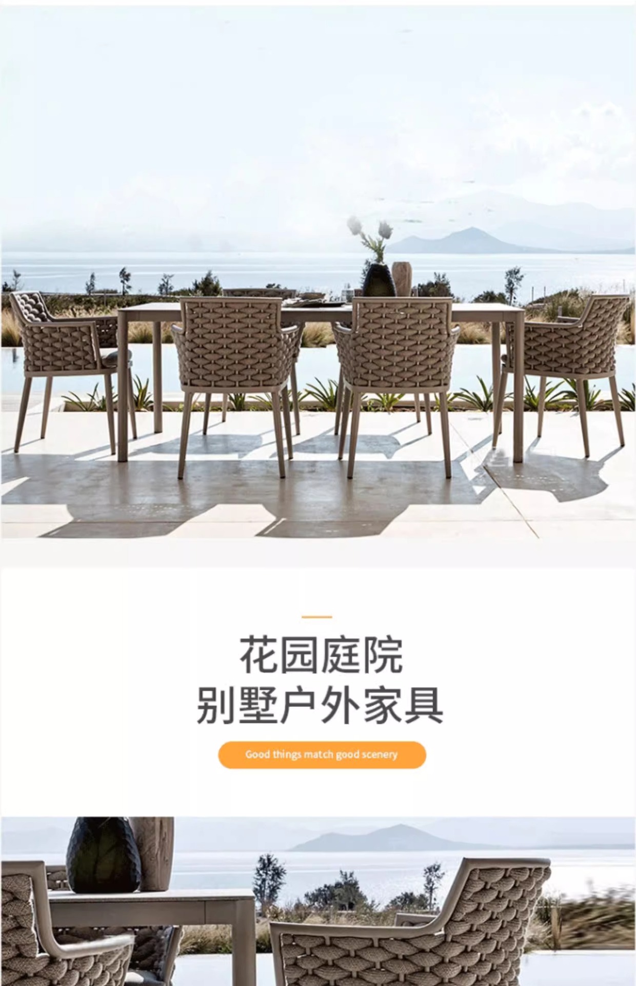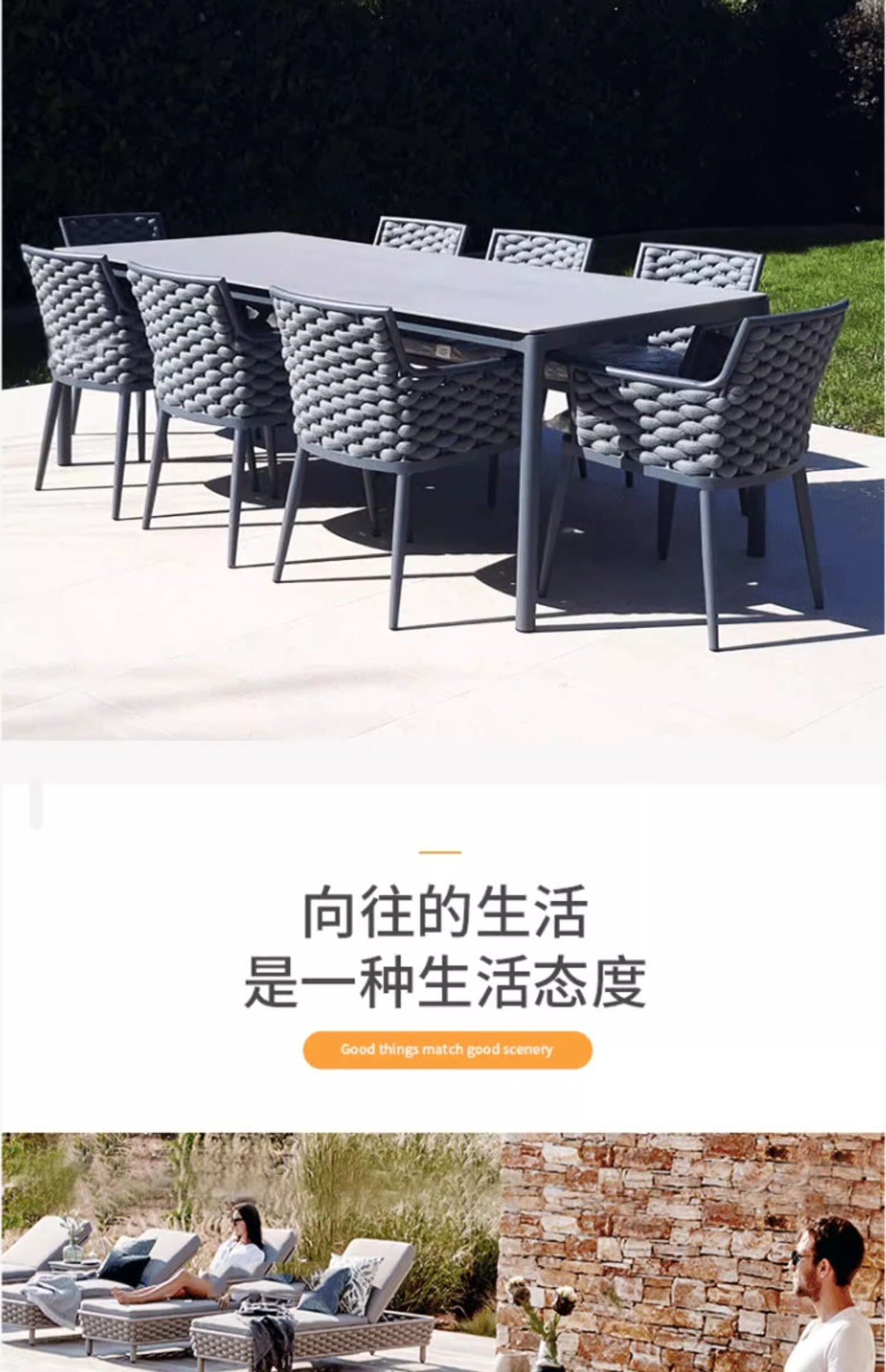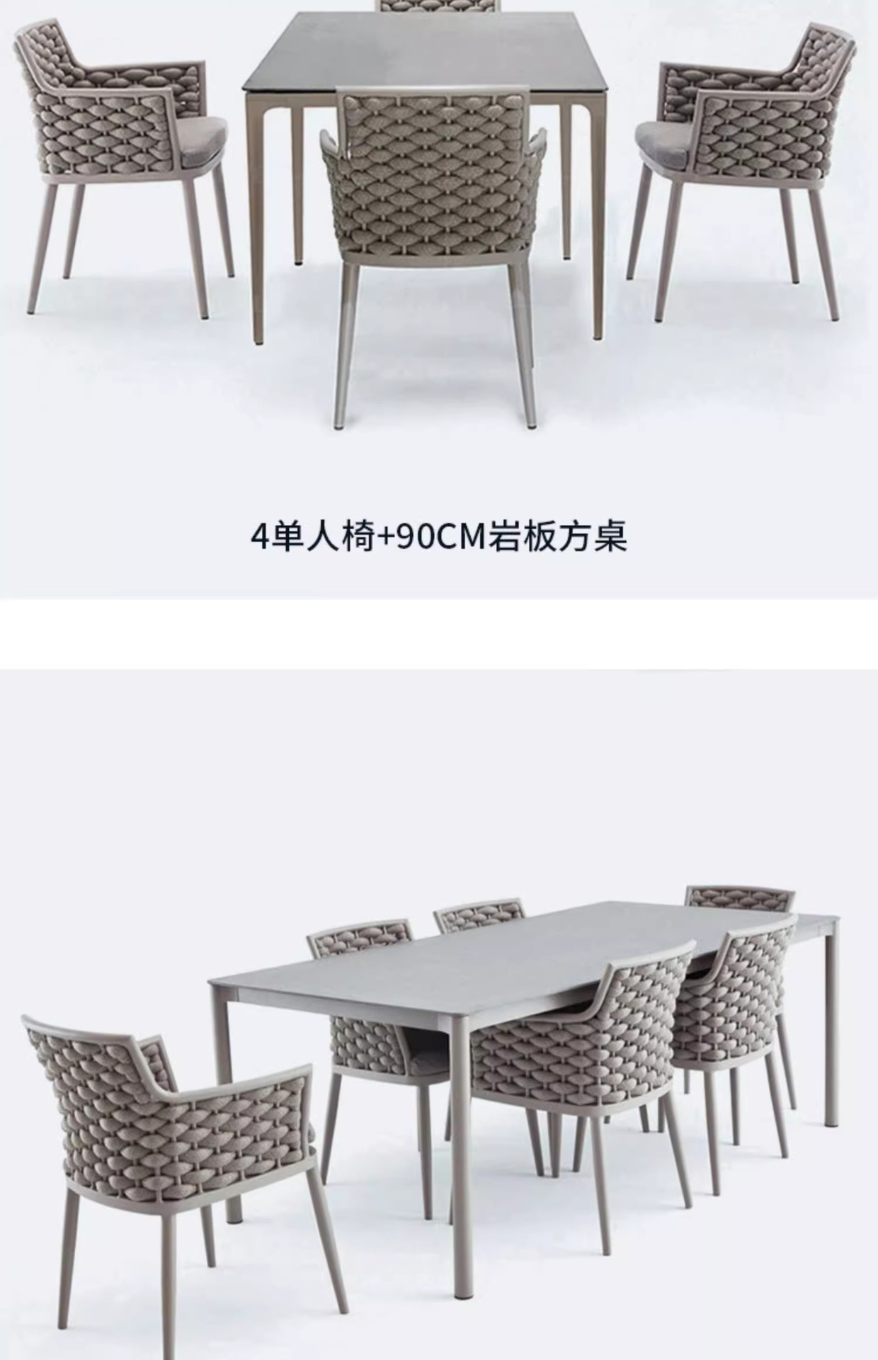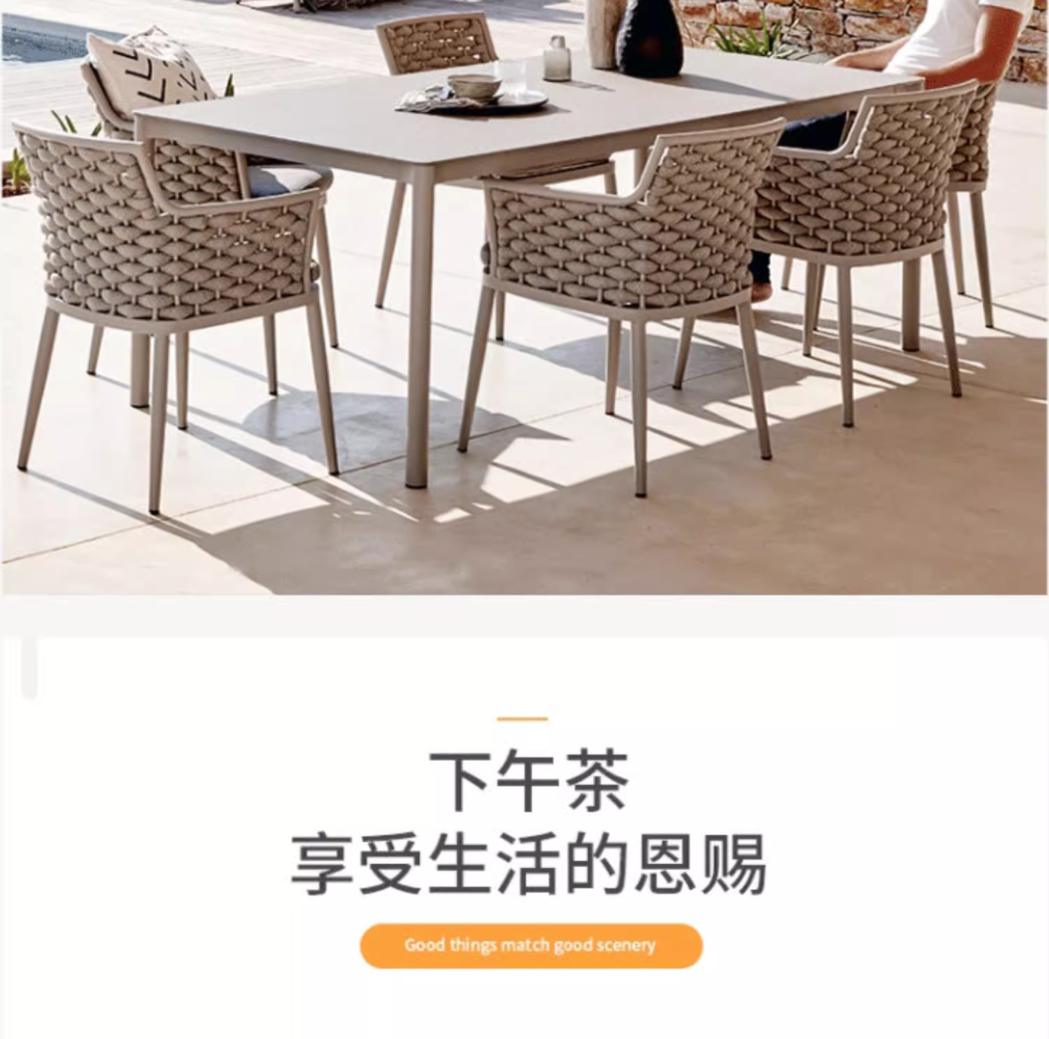 高端户外休闲桌椅庭院露天花园别墅编织椅防水防晒室外岩板餐桌椅