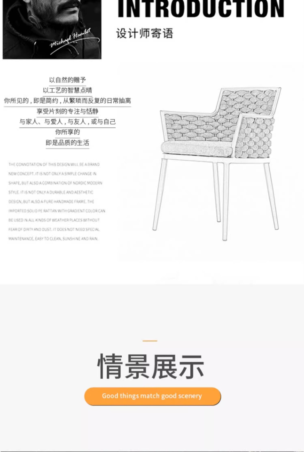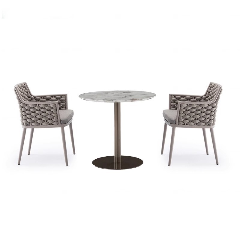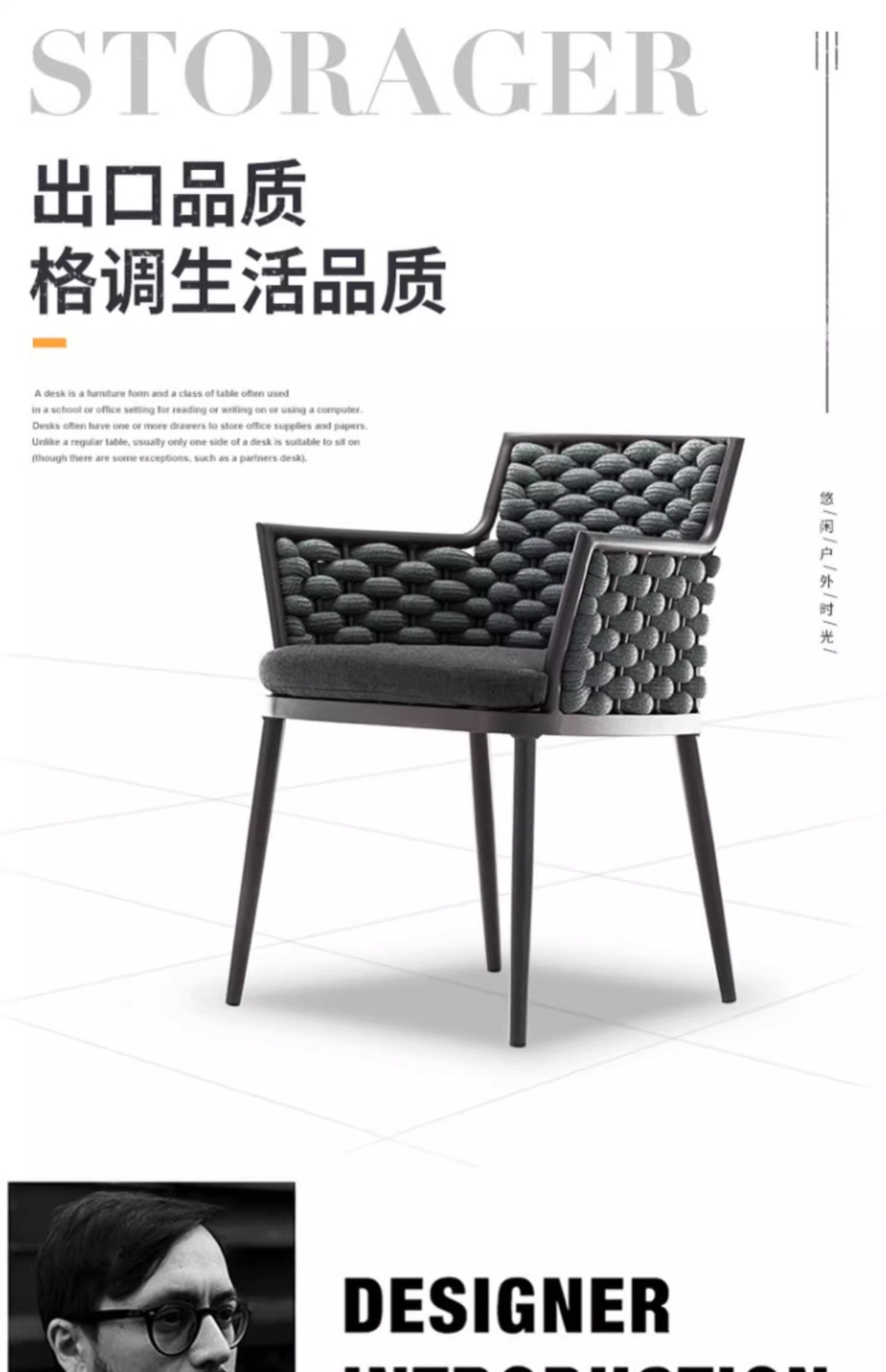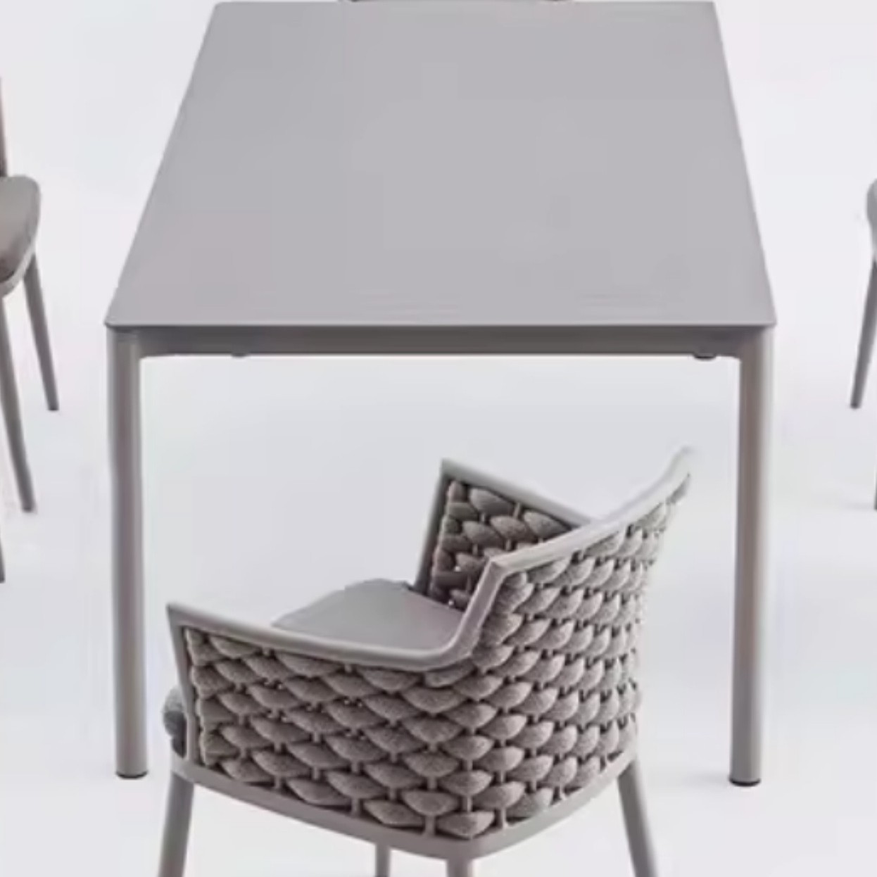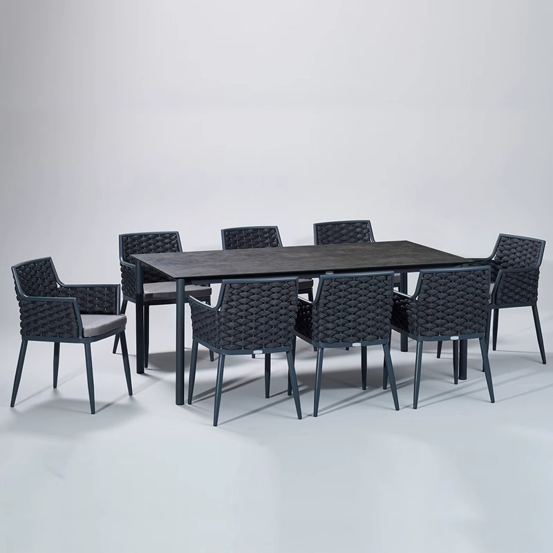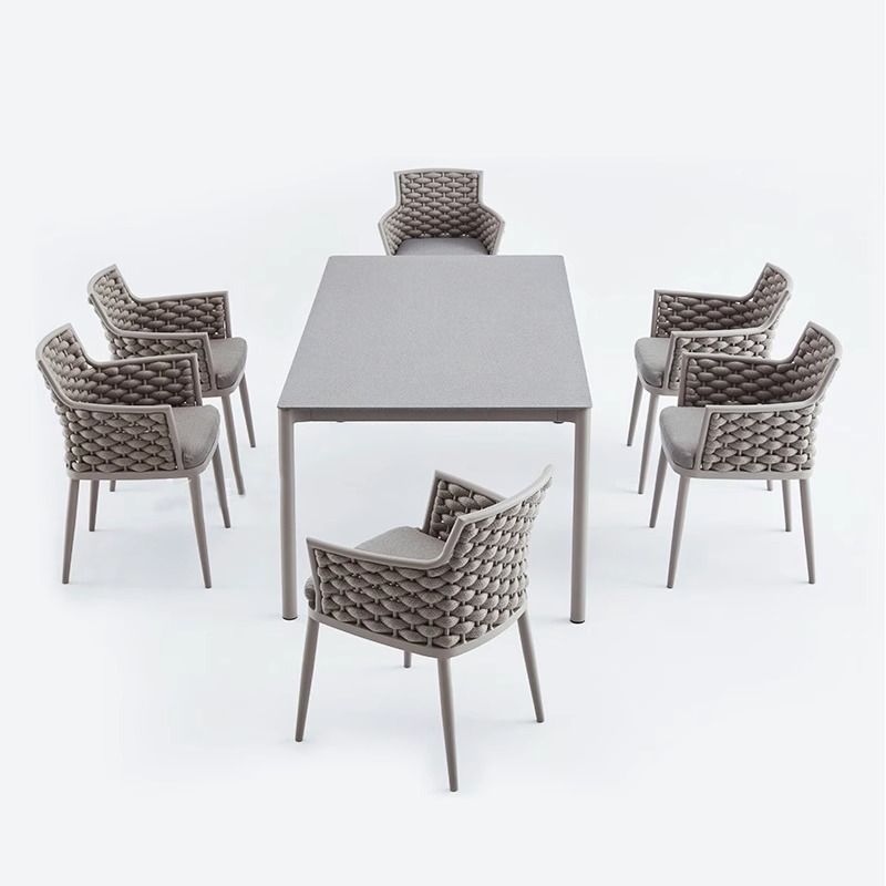 高端户外休闲桌椅庭院露天花园别墅编织椅防水防晒室外岩板餐桌椅