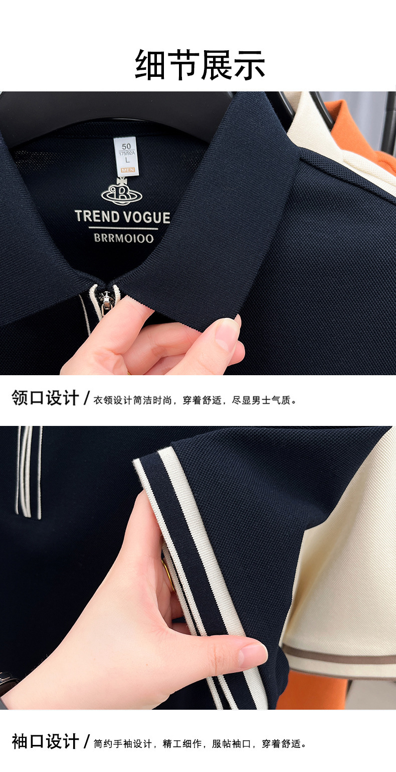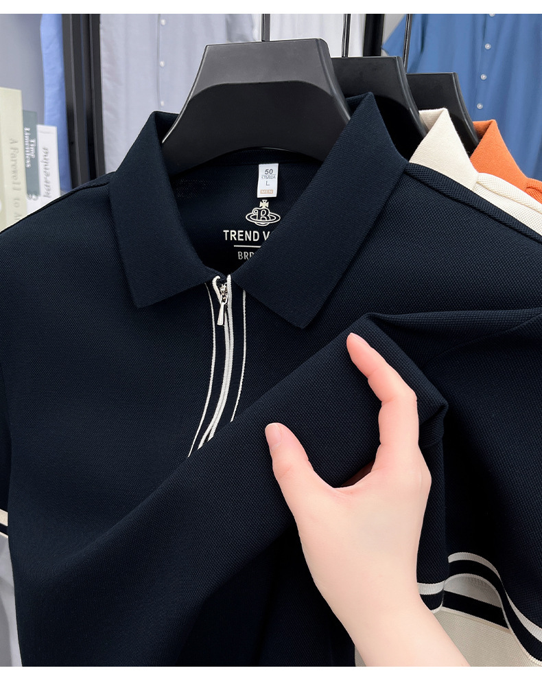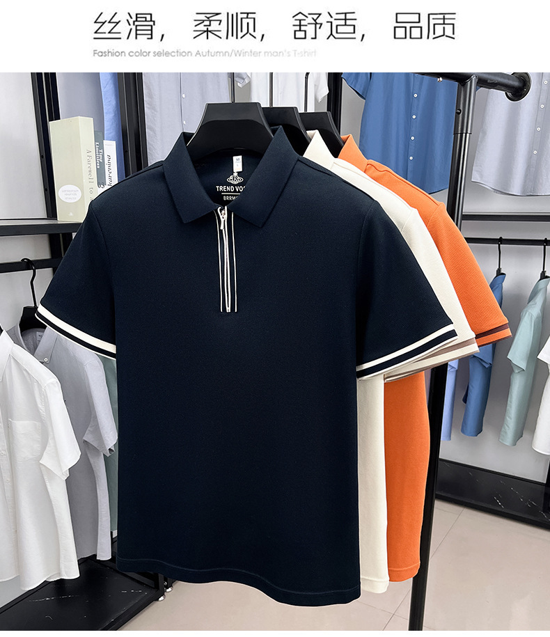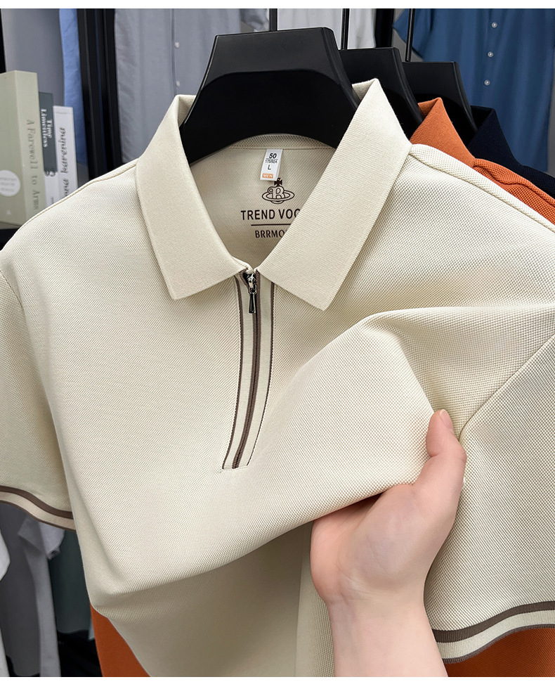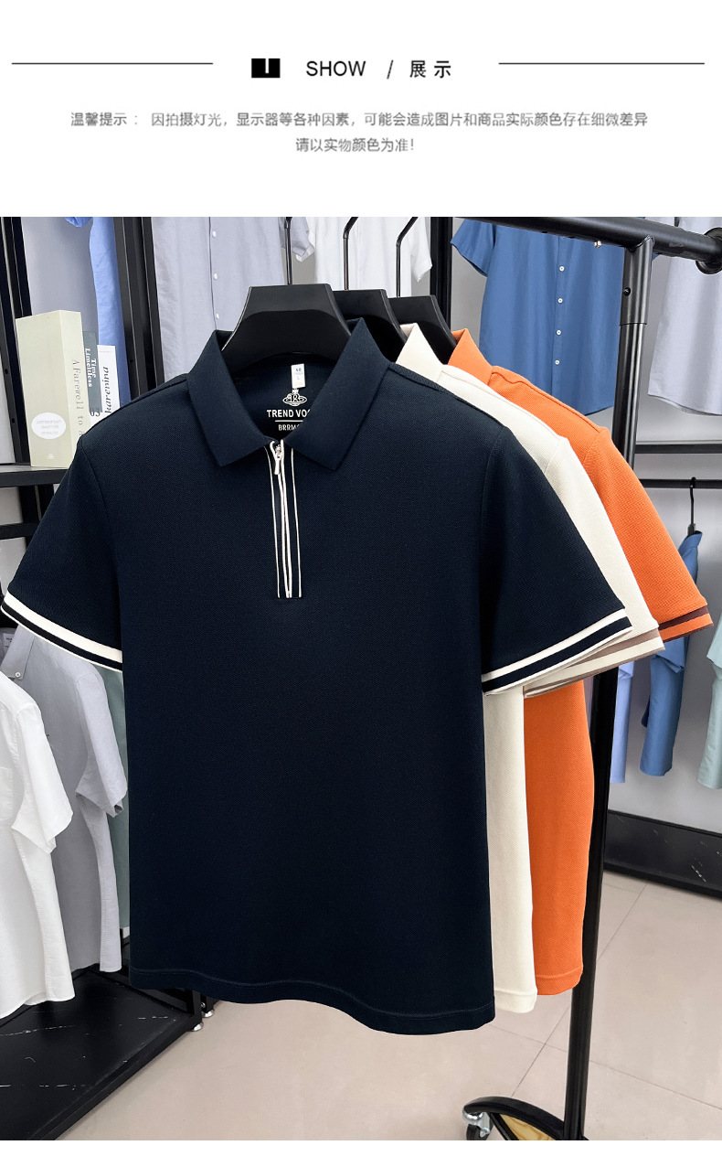 2025 년 여름 새로운 반팔 티셔츠 남성용 얇은 비즈니스 캐주얼 반소매 면 반쪽 지퍼 라프 폴로 셔츠