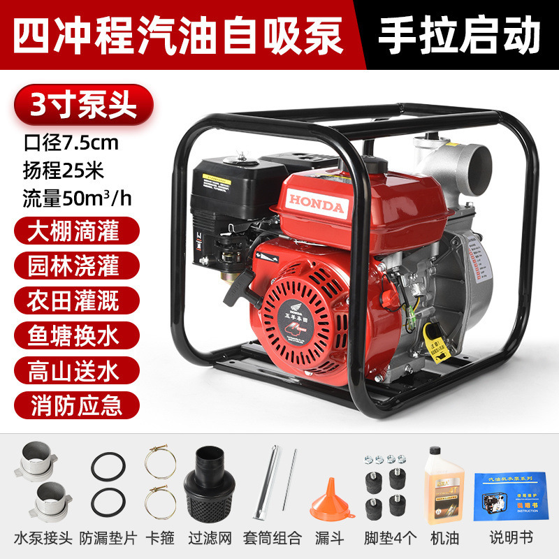 우양 혼다 가솔린 엔진 워터 펌프 농업 4 행정 하이 리프트 대형 유수 펌프 자체 프라이밍 워터 펌프 관개